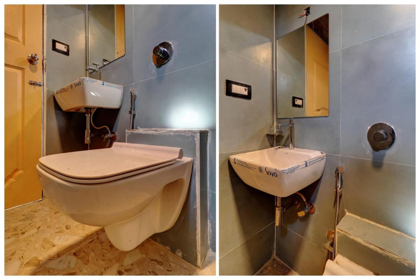 Shabby Electrical and water supply fittings. No chair & table inside room.