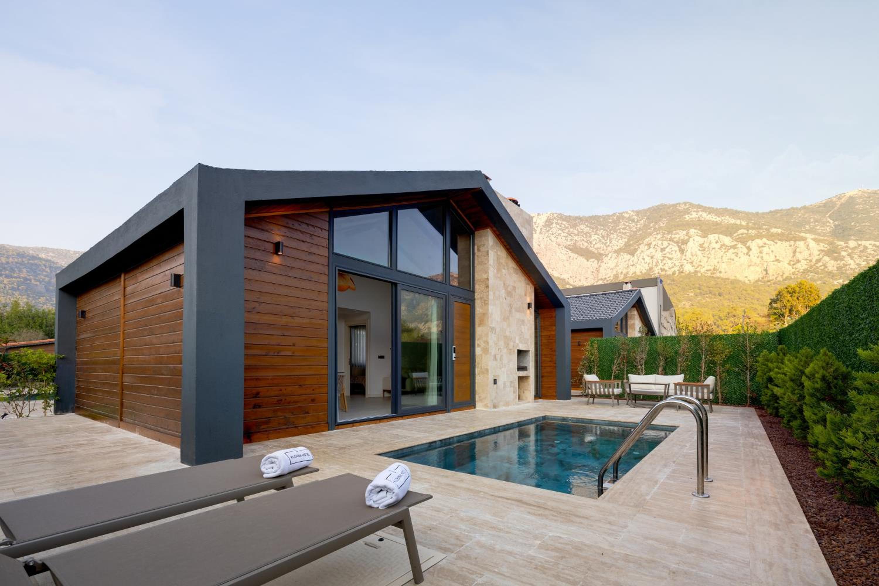 Виллы как на фото, виды на горы вокруг, на общей территории длинный, красивый бассейн, и небольшая зеленая зона отдыха, где можно посидеть, хороший ресторан, завтрак был небольшим, но вкусным, очень приветливый персонал, особенно девушка на ресепшене, разрешили чуть раньше заехать, на вилле есть камин, наверное им можно пользоваться зимой, зона у собственного бассейна на 80% приватная, сквозь забор видны только силуэты соседей , если приглядываться, до моря 5 минут пешком, до пляжа, где большинство купается - минут 10, рядом есть магазин