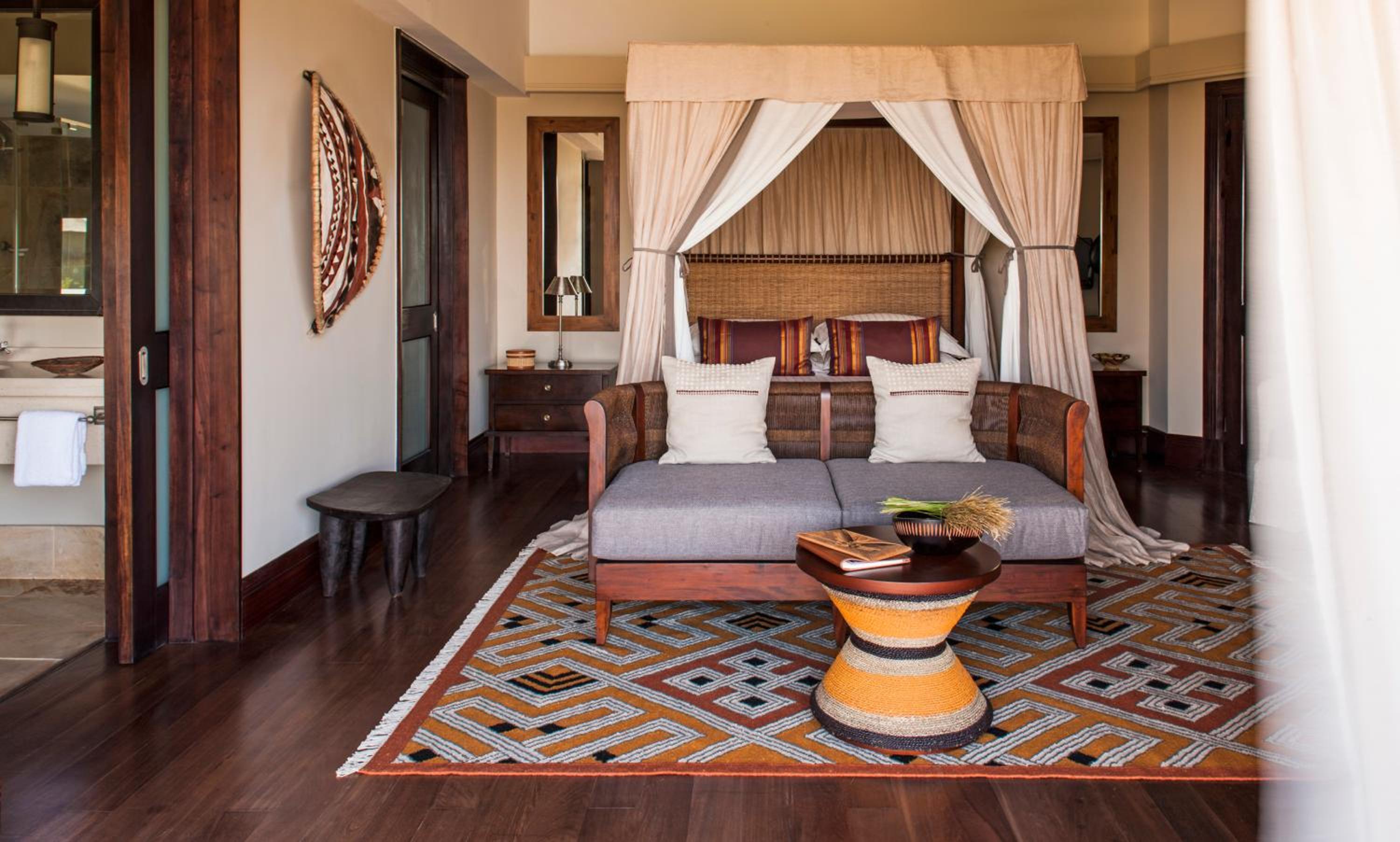 Luxurious Accommodations: Immerse yourself in elegant rooms with African decor, featuring modern amenities for a comfortable stay.