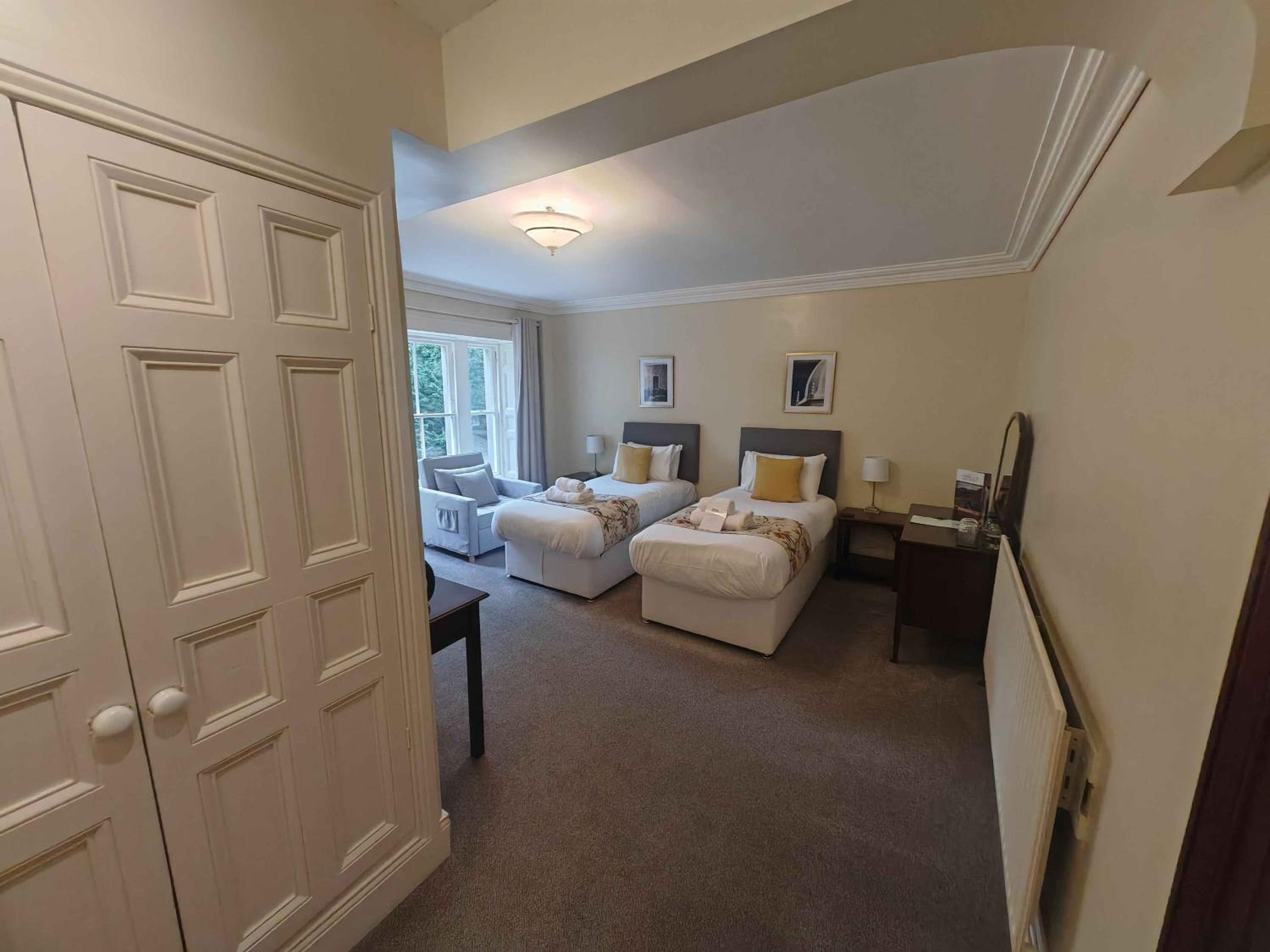 Nice Country House Hotel, understandably out of town, in pretty location by a river. All the staff were incredibly nice and helpful. Nice food in restaurant and for breakfast. Safe motorcycle parking.