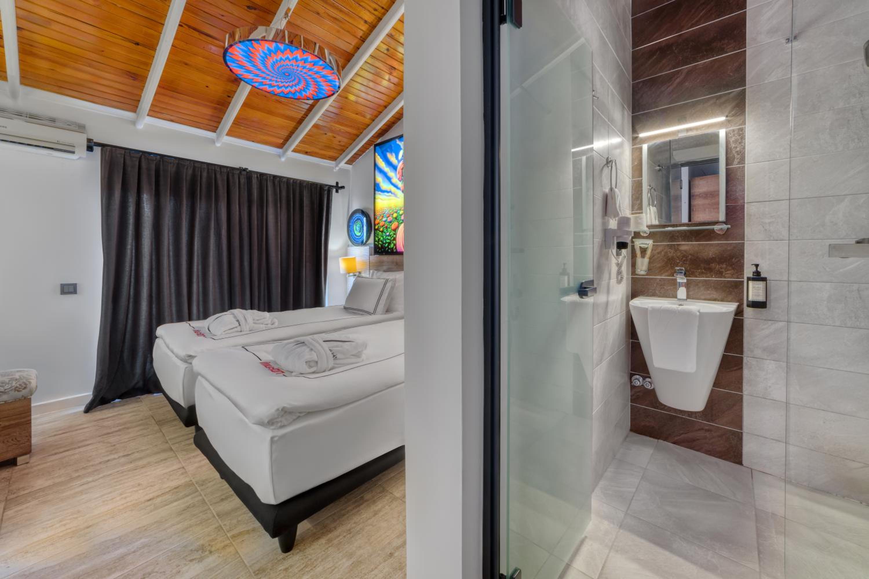 Everything was amazing – the staff were incredibly polite and helpful, the room was spotlessly clean and well-equipped (with towels, bathrobes, slippers, hygiene products, and a hairdryer). We had a room with a sea view – it was breathtaking. The bed was extremely comfortable, and the whole hotel is designed with great attention to detail. We also enjoyed the beautiful beach club and the fun night club experience.