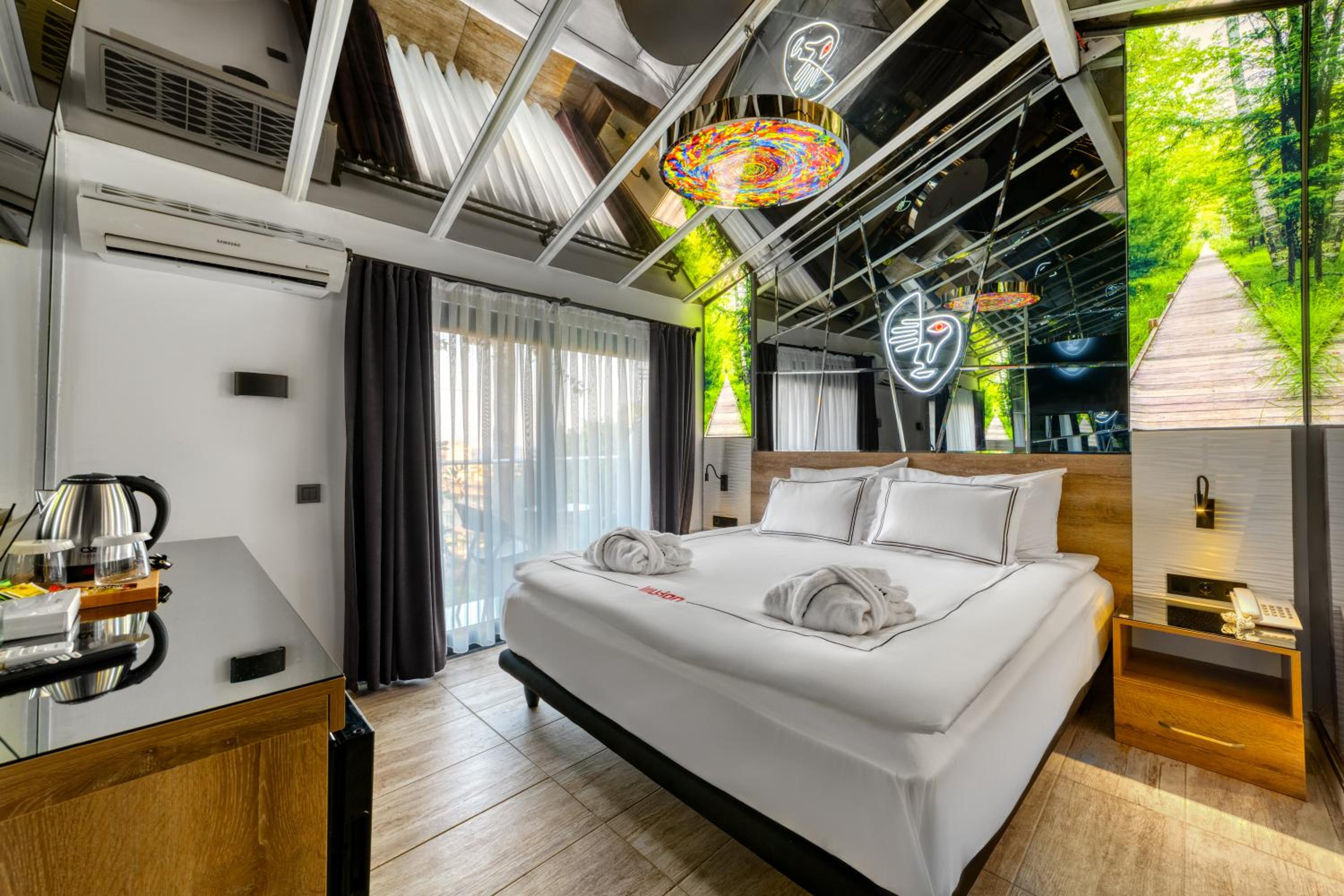 Temiz kaliteli çok güzel dizayn edilmiş oda ve çevre düzenlemesi