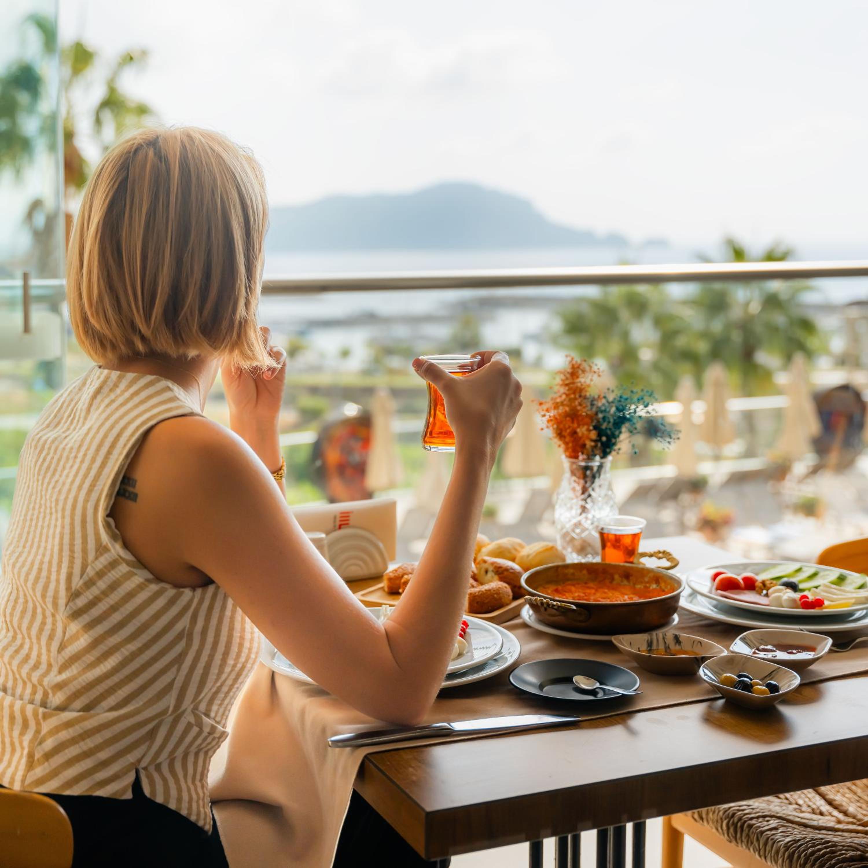 I really enjoyed the atmosphere of hotel. Its really calm and cozy place. We joined all the parties at their own beach club and night club(they offer free VIP transfer for the guests) and they were amazing!. Prices are very good, we also got an extra discount at the beach and night club as a hotel guests. The quality of food is good, rooms are fully renewed. Stuff is friendly and helpful, room service and cleaning is good. Cosmetic and hygienic products are so good quality! Hotels’ view is just amazing 😻 i like all the details of hotel - its so nice that you want to make a picture of every meter of it.