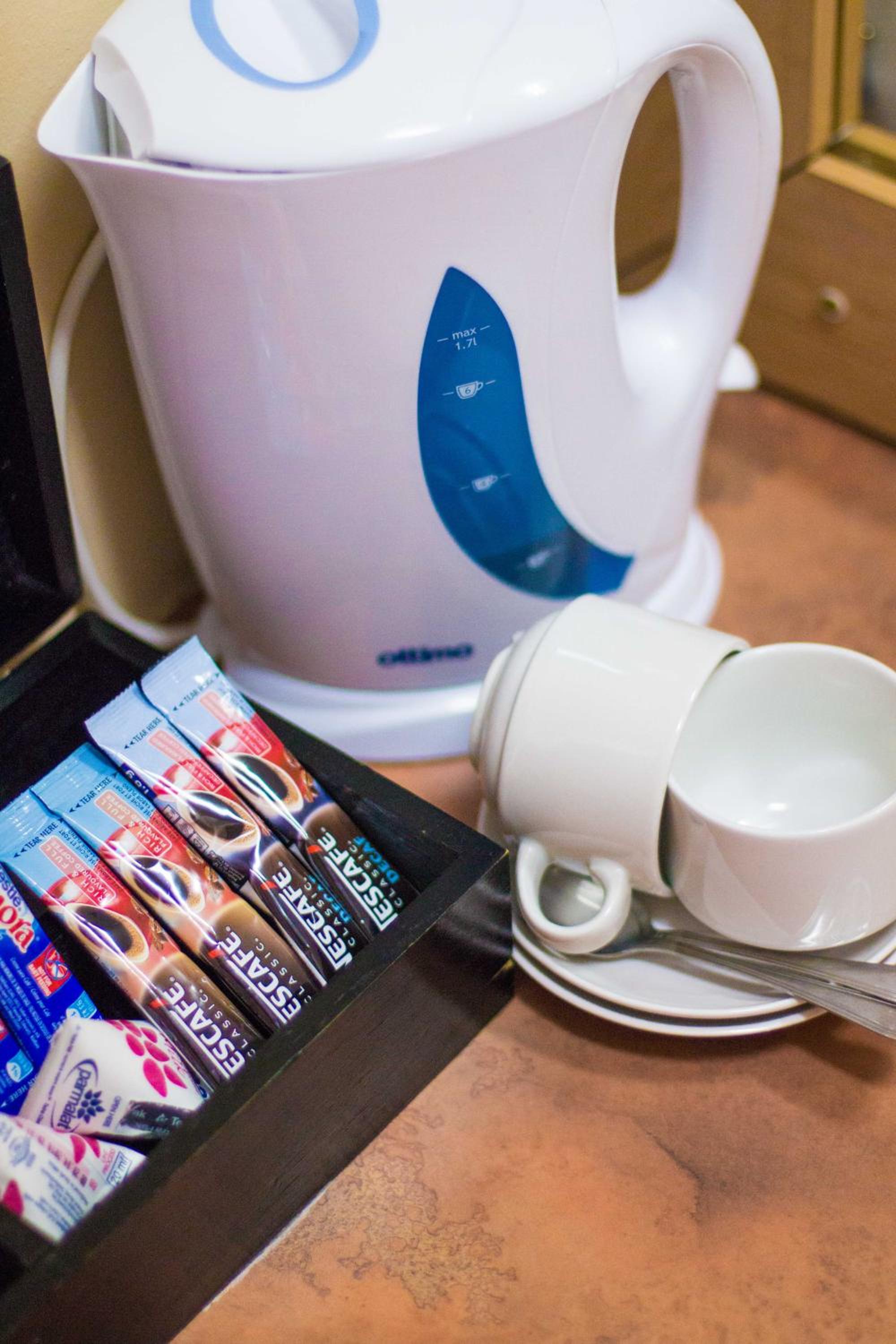 Room wasnt up to standard, no coffee, tea, sugar or milk. Dustbin had rubbish in. TV don't have a remote. Not value for money!