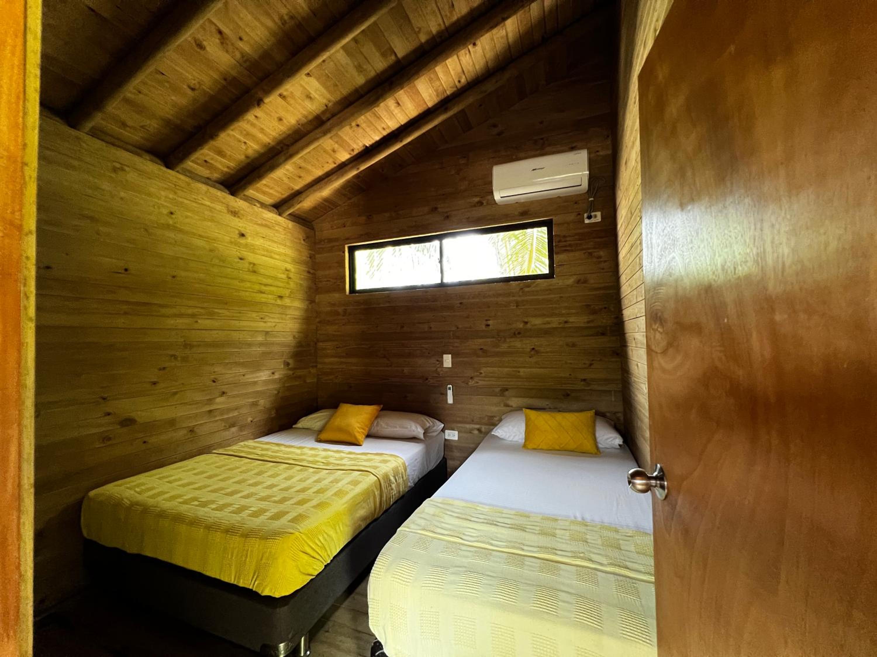 Las cabañas son muy cómodas, tienen todo lo que uno necesita, el lugar es muy bonito lleno de vegetación y tranquilo, quedo al frente de la estación de policía, entonces se siente uno seguro todo ele tiempo, el D1 a media cuadra igual que el ara
