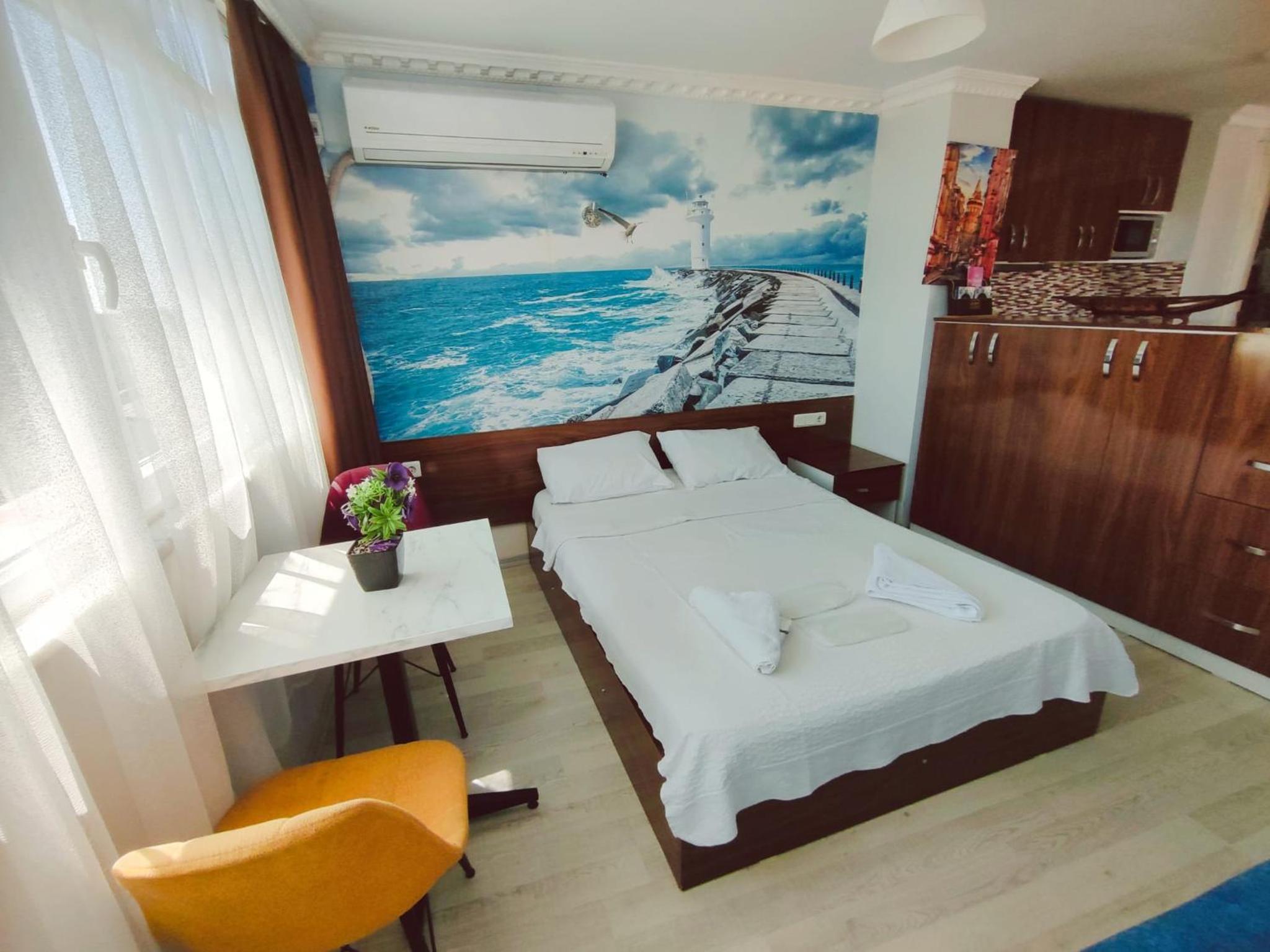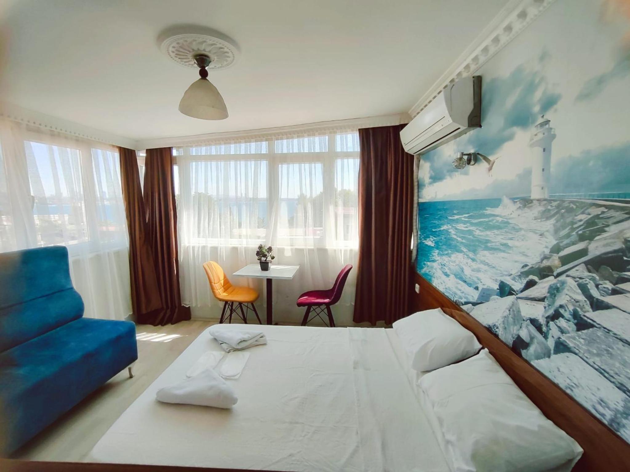 Habitación muy limpia y cómoda, con una hermosa vista al mar. Cerca de los lugares turísticos y a pocos pasos del tranvía. Excelente opción para una estancia agradable en Estambul.