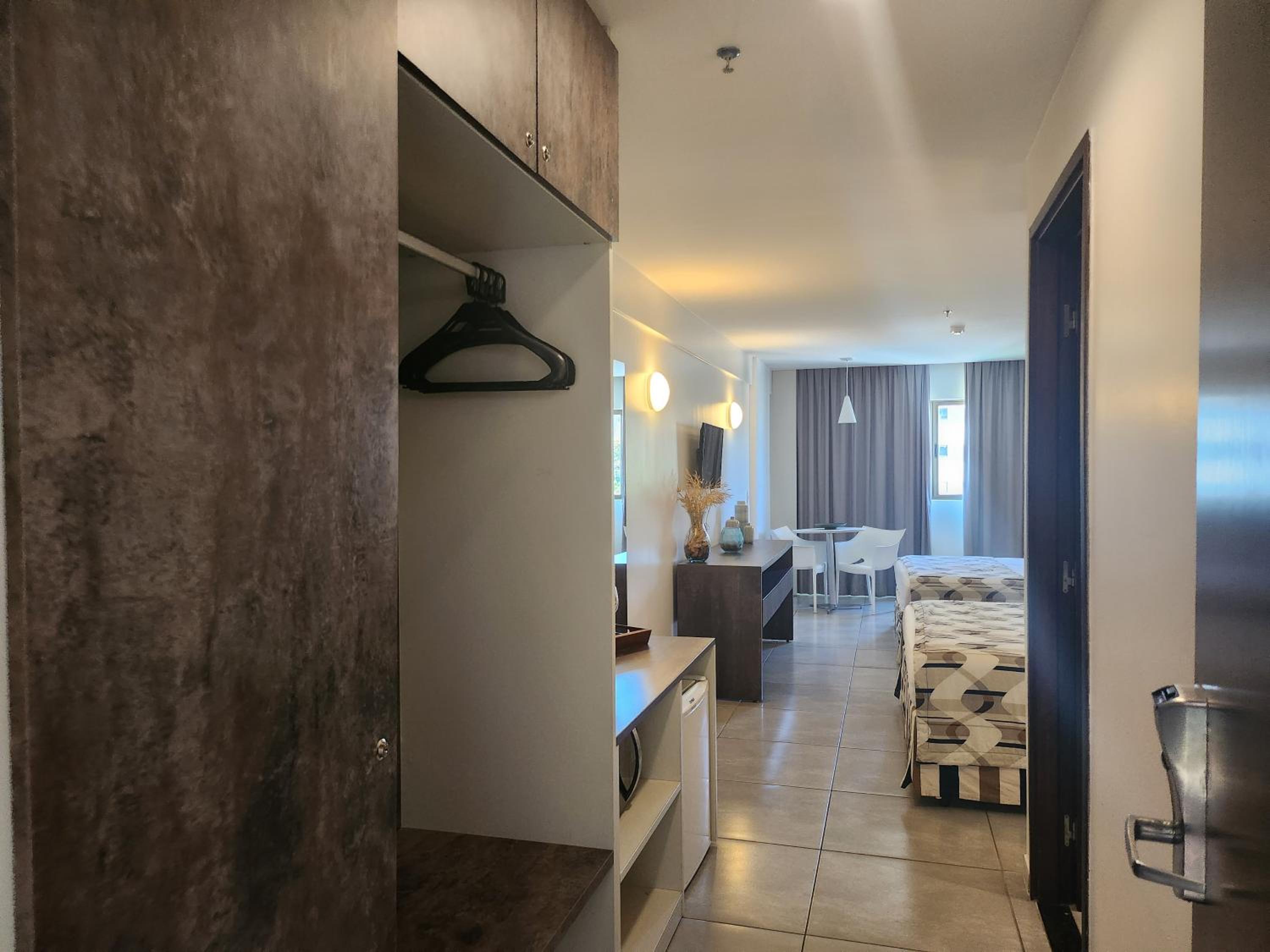 Muito limpo, novo e organizado. Já dispõe de microondas e frigobar. Anfitriã muito atenta e flat organizado. Café da manhã e refeições no flat são caras.
