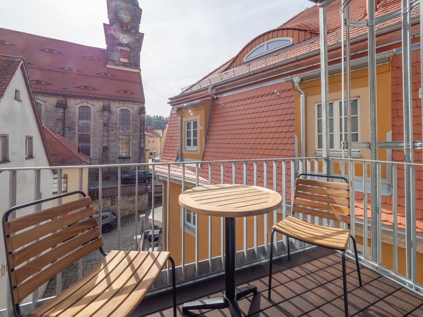 Wir hatten ein Zimmer mit Balkon und direkten Blick auf die Kirche in Königstein.