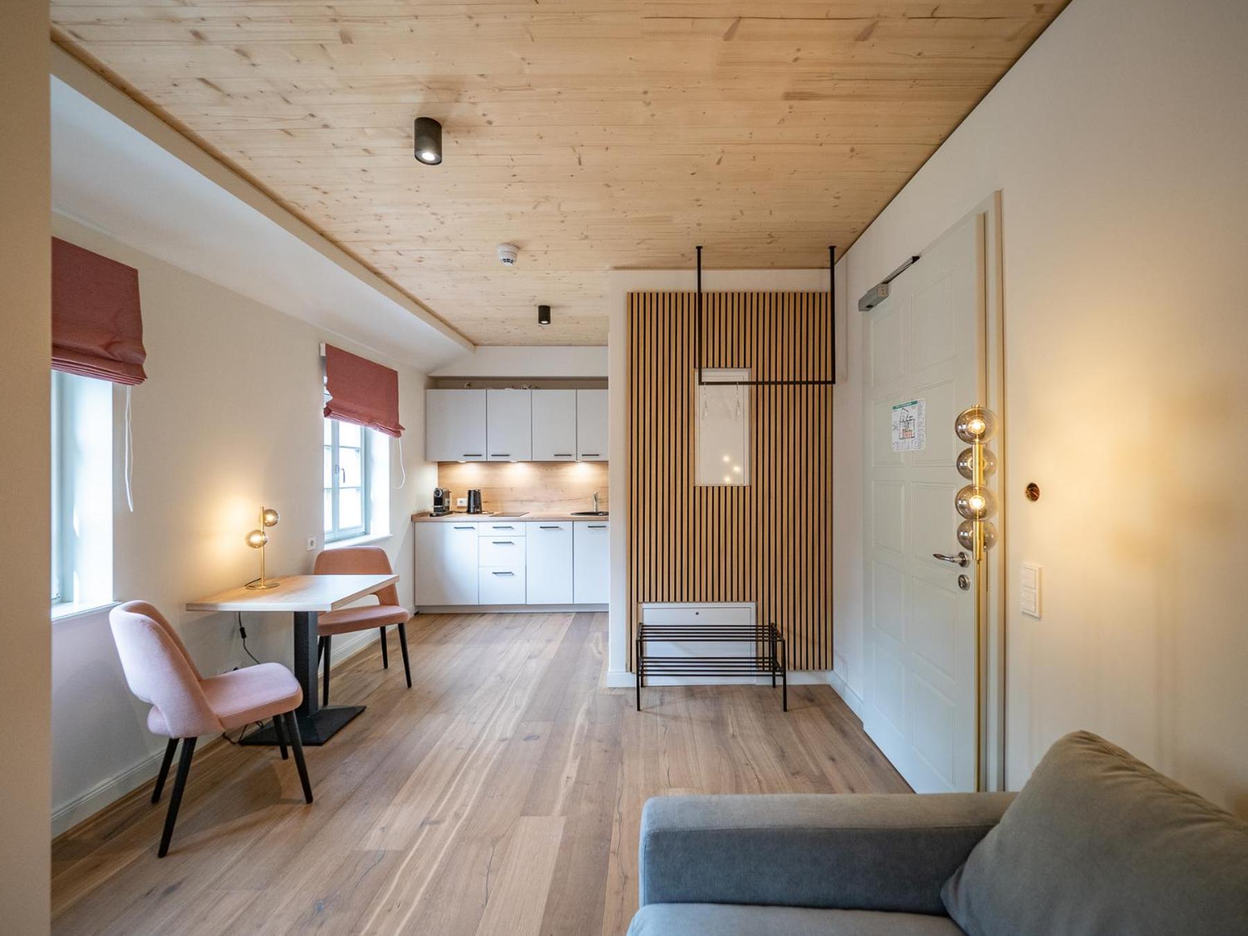 Die Wohnung war sehr geschmackvoll eingerichtet. Das Personal sehr aufmerksam und freundlich.