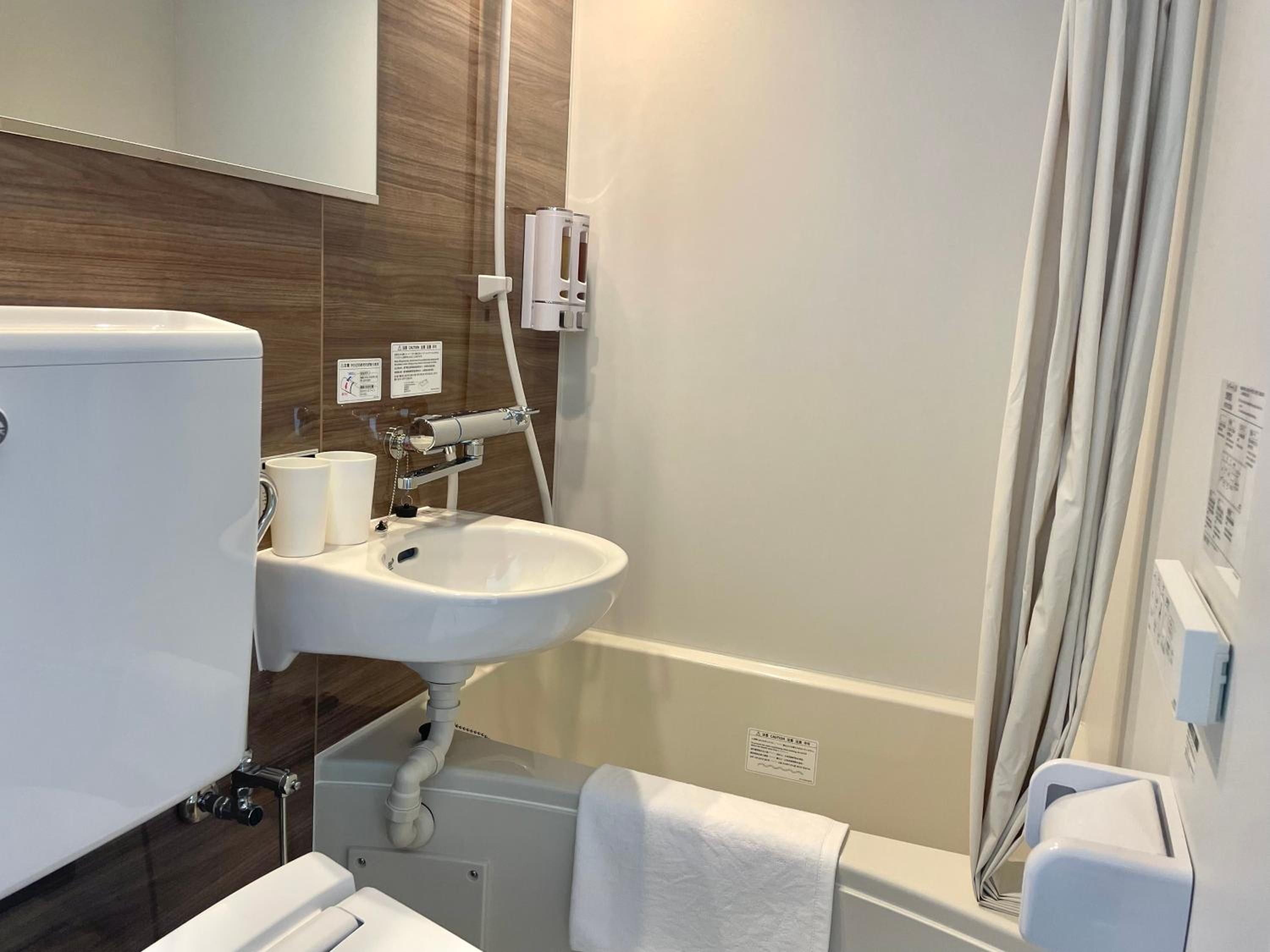 Das Hotelzimmer ist zwar klein, aber sehr gemütlich eingerichtet und bietet alles, was man für einen angenehmen Aufenthalt braucht. Das Badezimmer ist ebenfalls recht klein, jedoch voll funktionsfähig und erinnert an die effiziente, platzsparende Gestaltung japanischer Hotels. Besonders positiv hervorzuheben ist das freundliche und hilfsbereite Personal. Die Lage des Hotels ist ausgezeichnet – vom Flughafen Narita aus sehr gut erreichbar. Ich kann dieses Hotel auf jeden Fall weiterempfehlen, insbesondere für Reisende, die eine praktische und angenehme Unterkunft suchen.