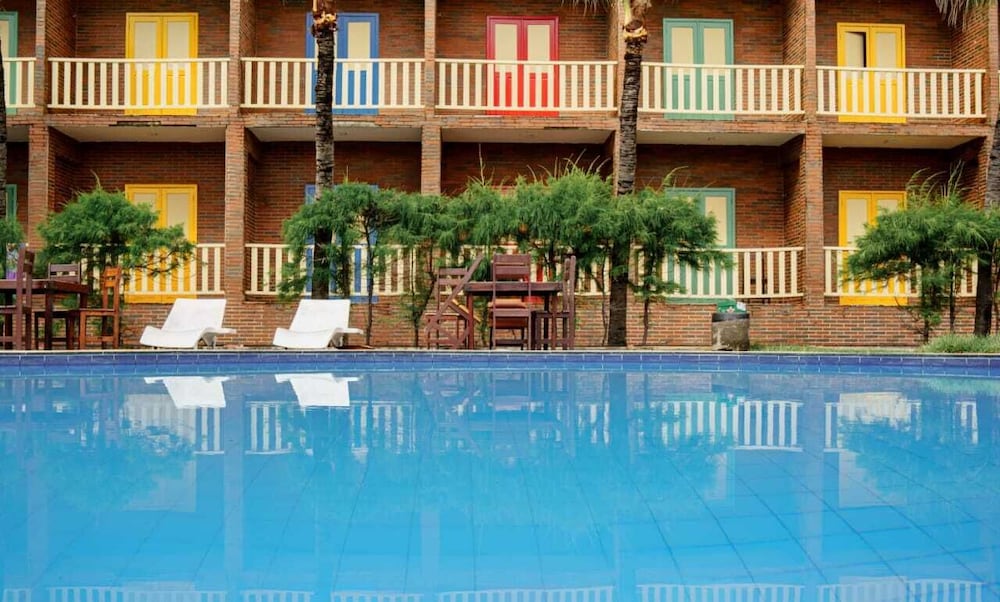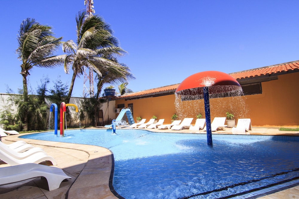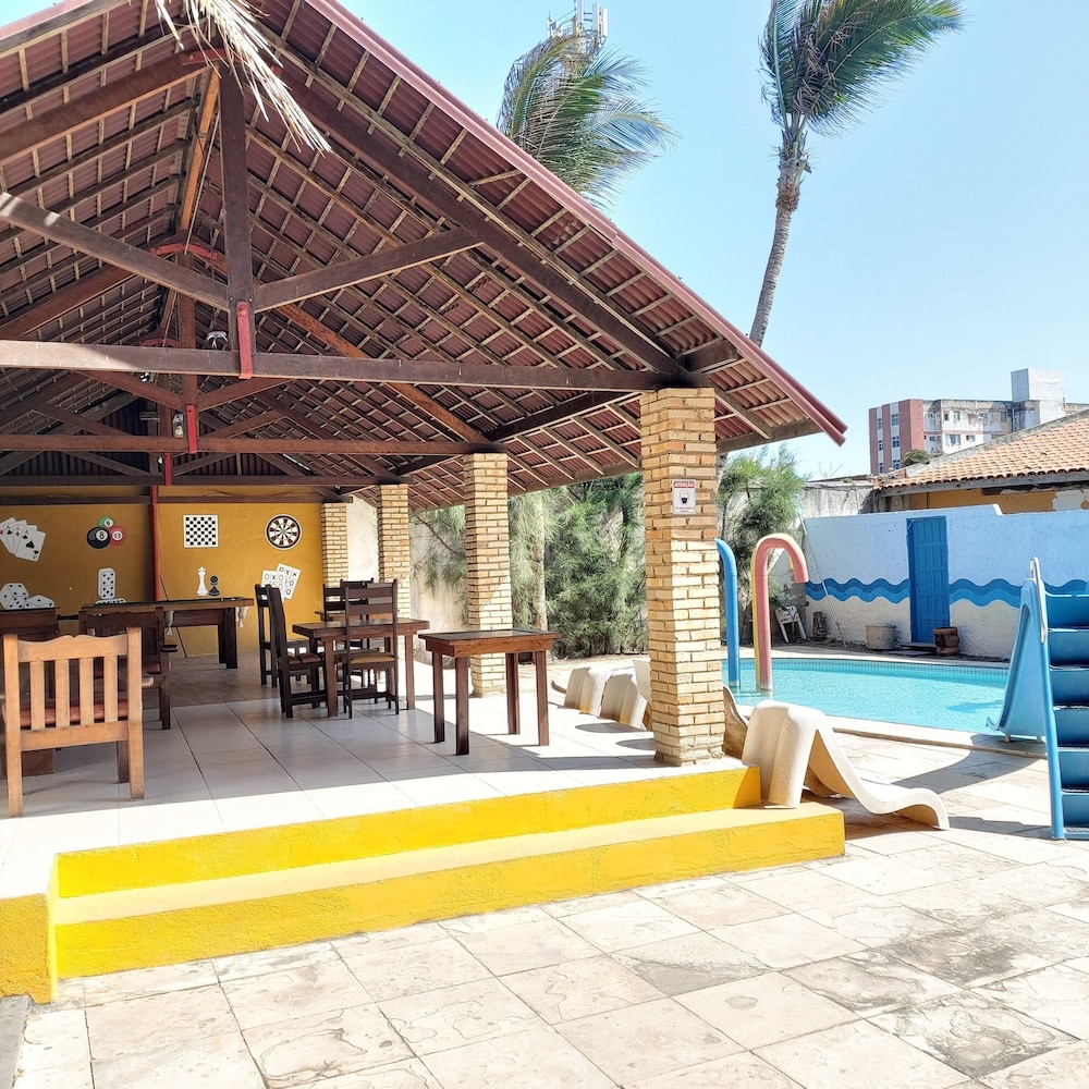 A frente do hotel é bonita e área de piscina. Os quartos são horríveis. Tudo velho e com cheiro de mofo. Não tem conforto algum. A central do nosso quarto pifou a noite e passamos calor até arrumarem outro quarto.chegando no novo quarto, tava com um cheiro horrível de mofo. Não indico. O preço não condiz com a realidade. Instrututa velha. Deviam fazer uma reforma nos quartos e deixar mais confortável, começando pelas camas. A TV não ligava nem a pau. Não volto.