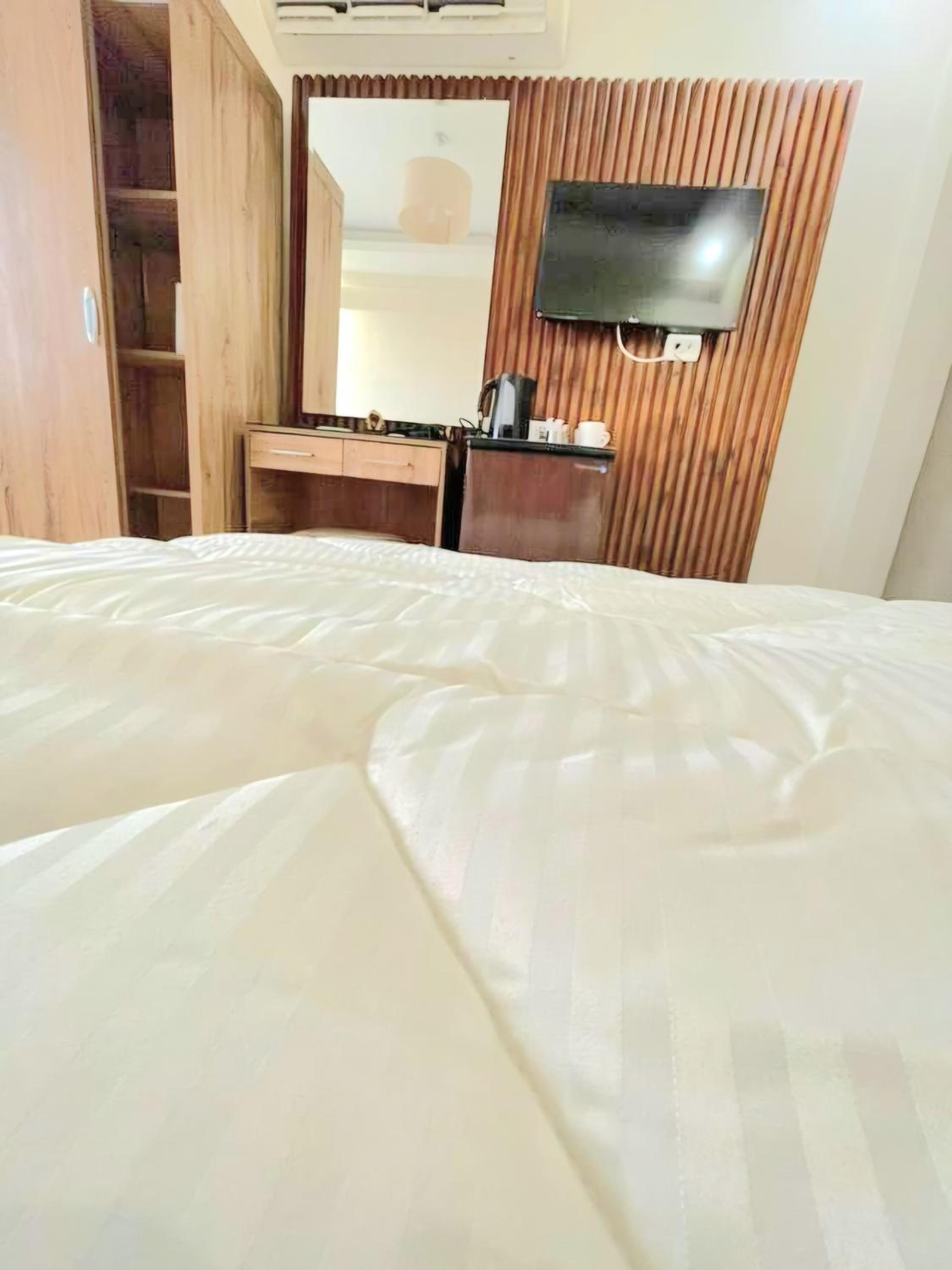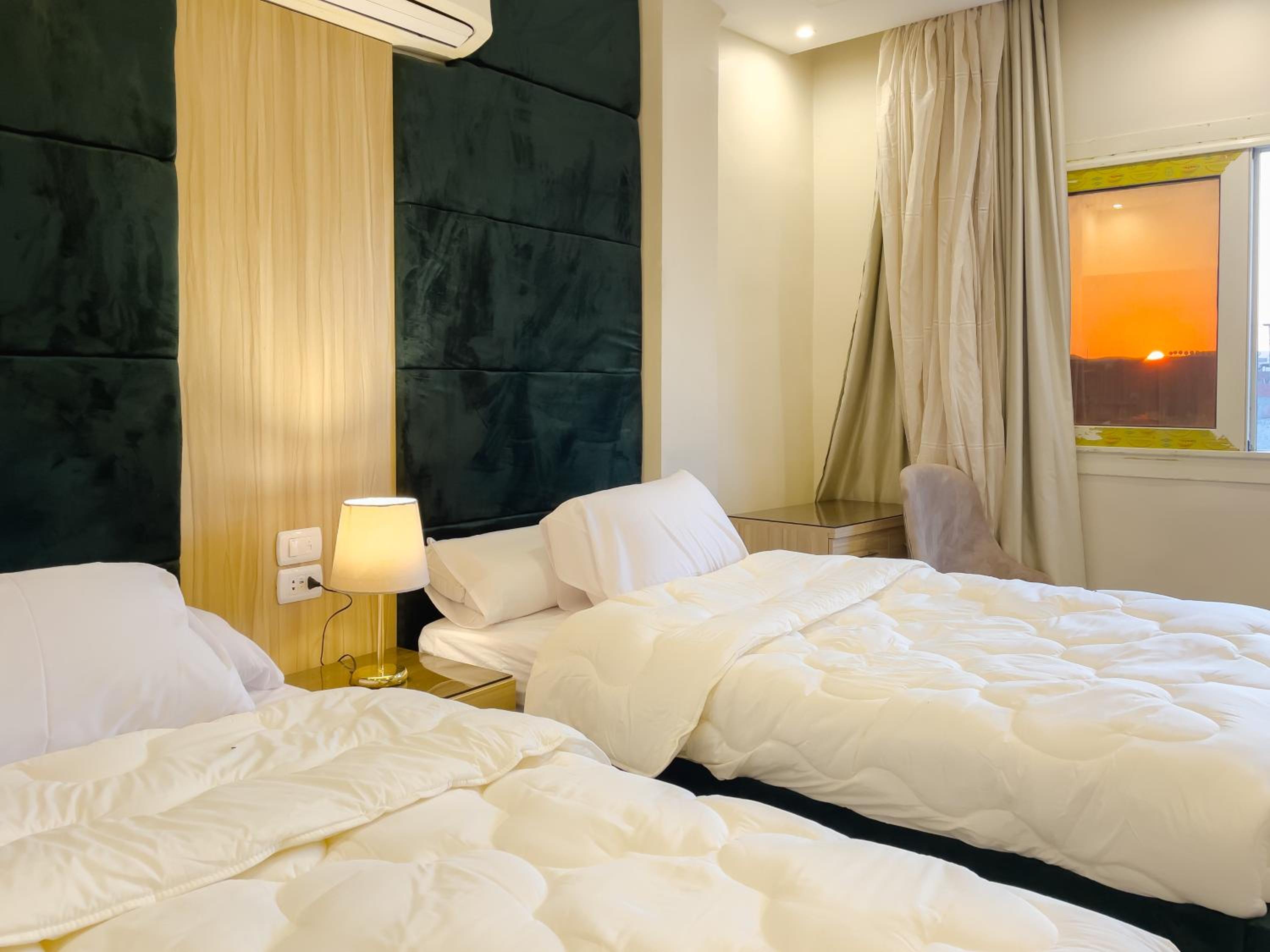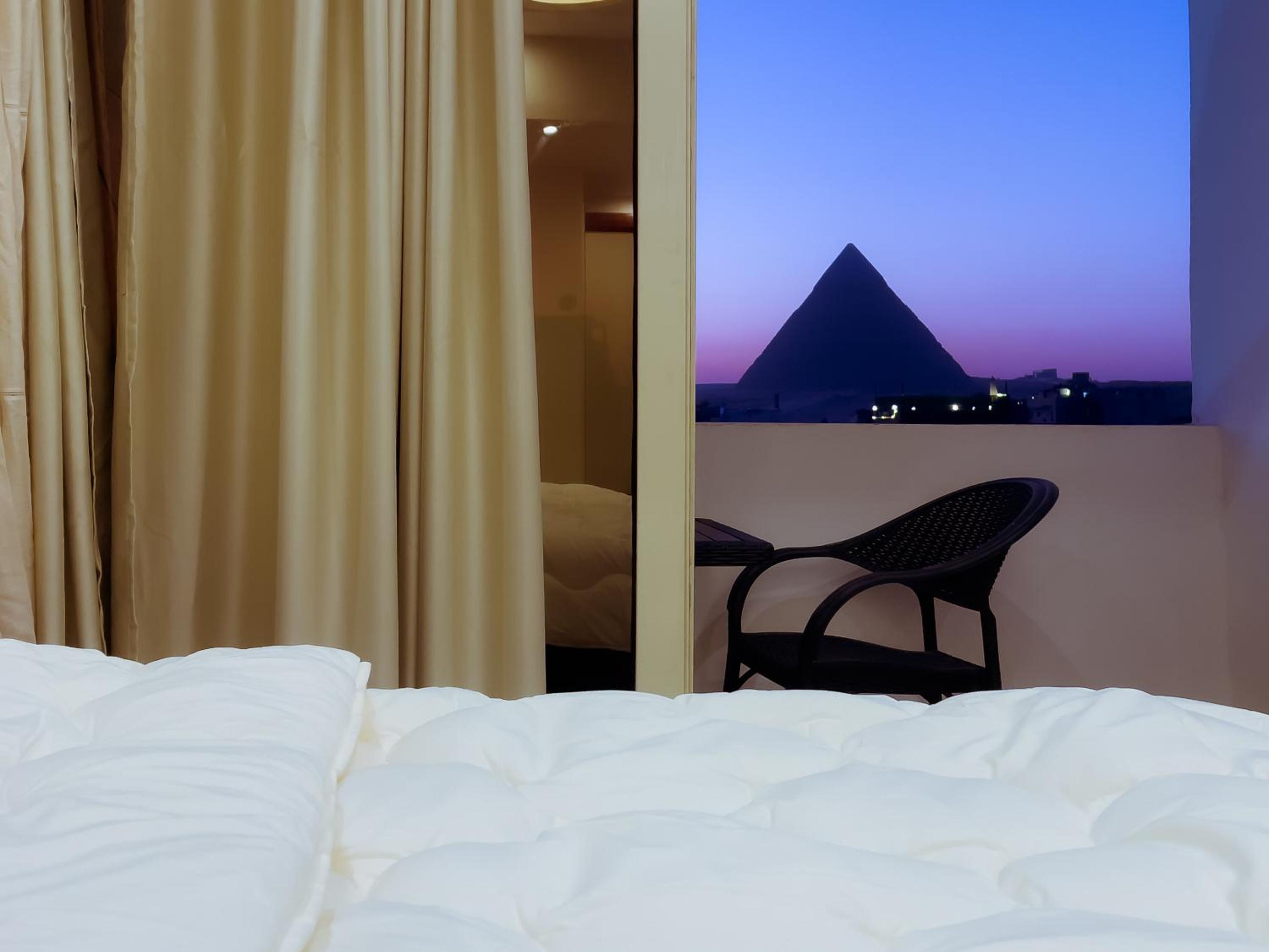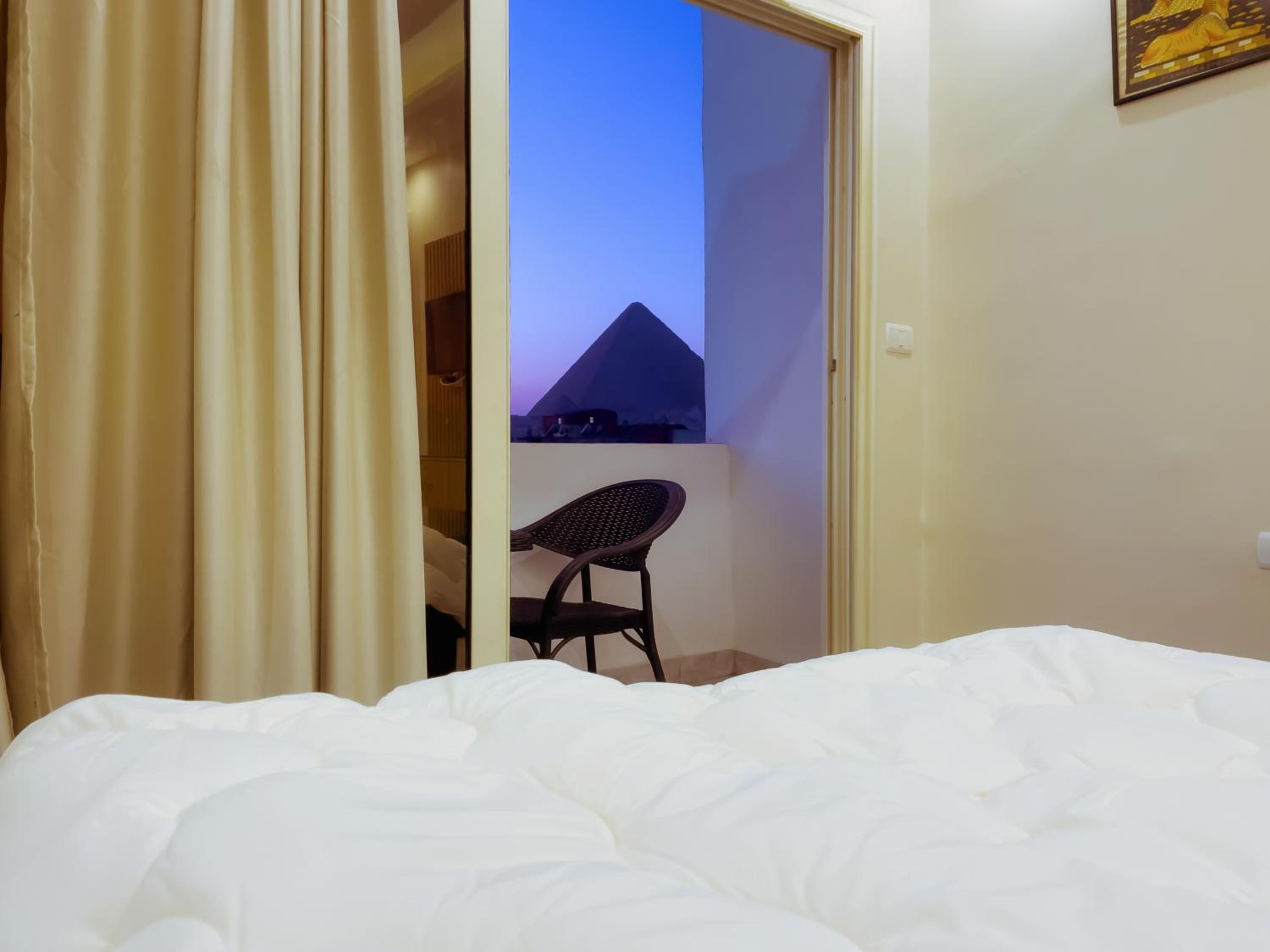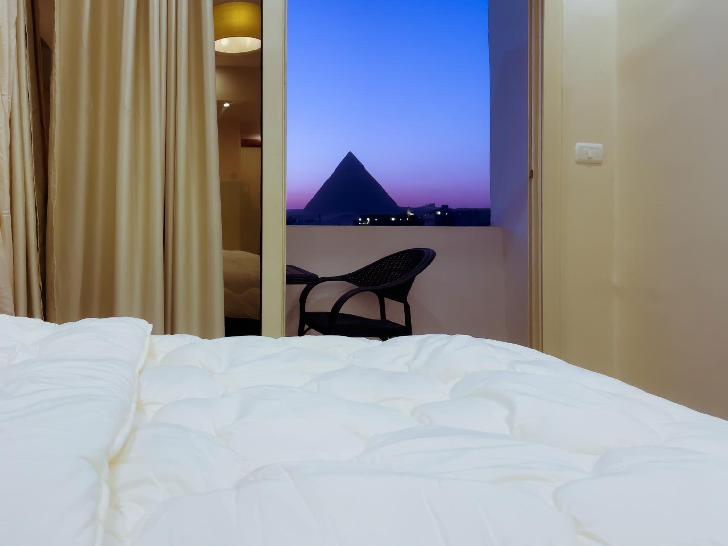 Modern clean room. Great beds with a balcony / bed view of pyramids!