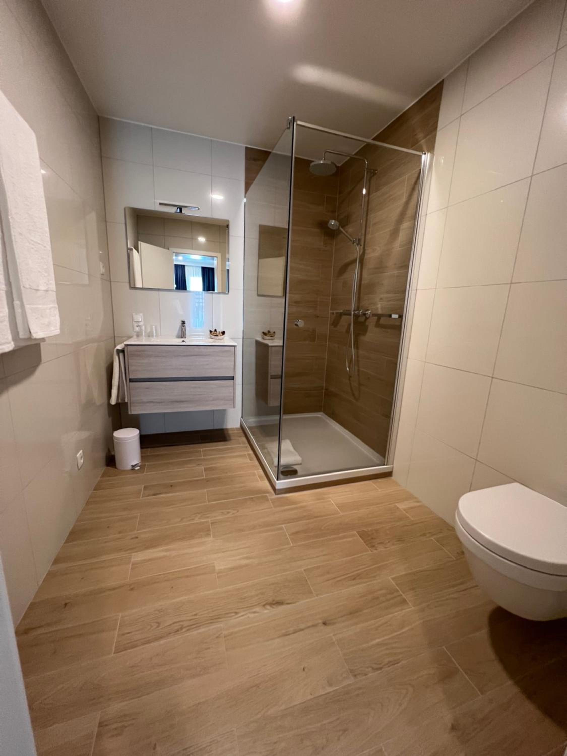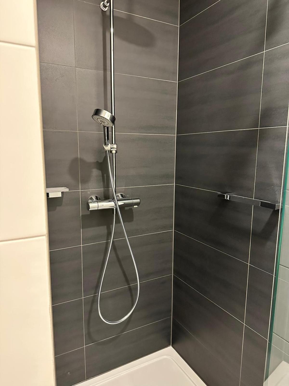 Badkamer - functioneel - douchegel, shampoo, ... voldoende handdoeken voorzien, zowel gewone als regendouche, ...