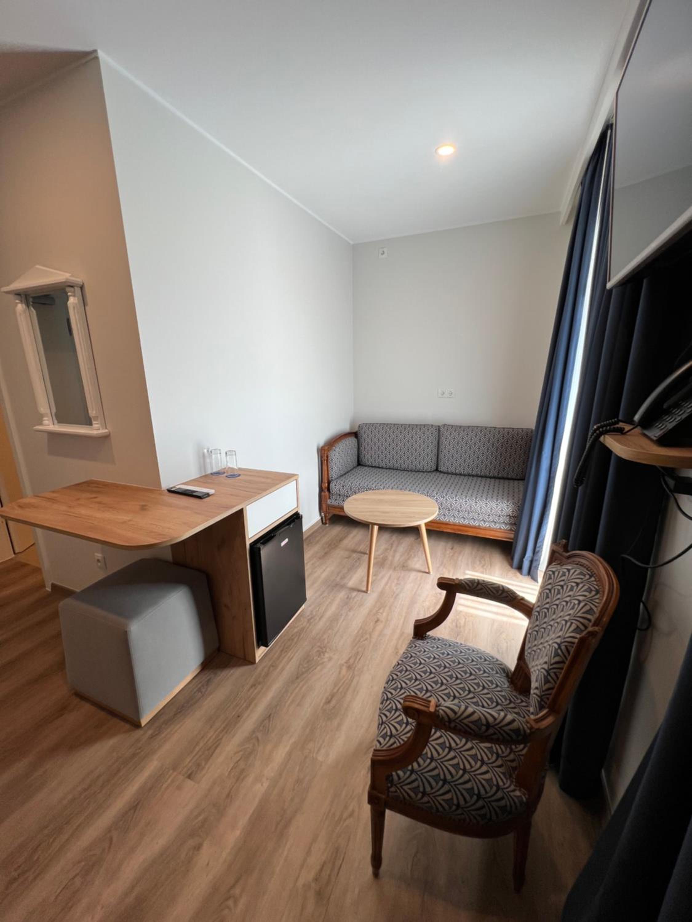 Experience tranquility in our soundproofed rooms equipped with cable TV, en suite bathrooms, and cozy seating areas.