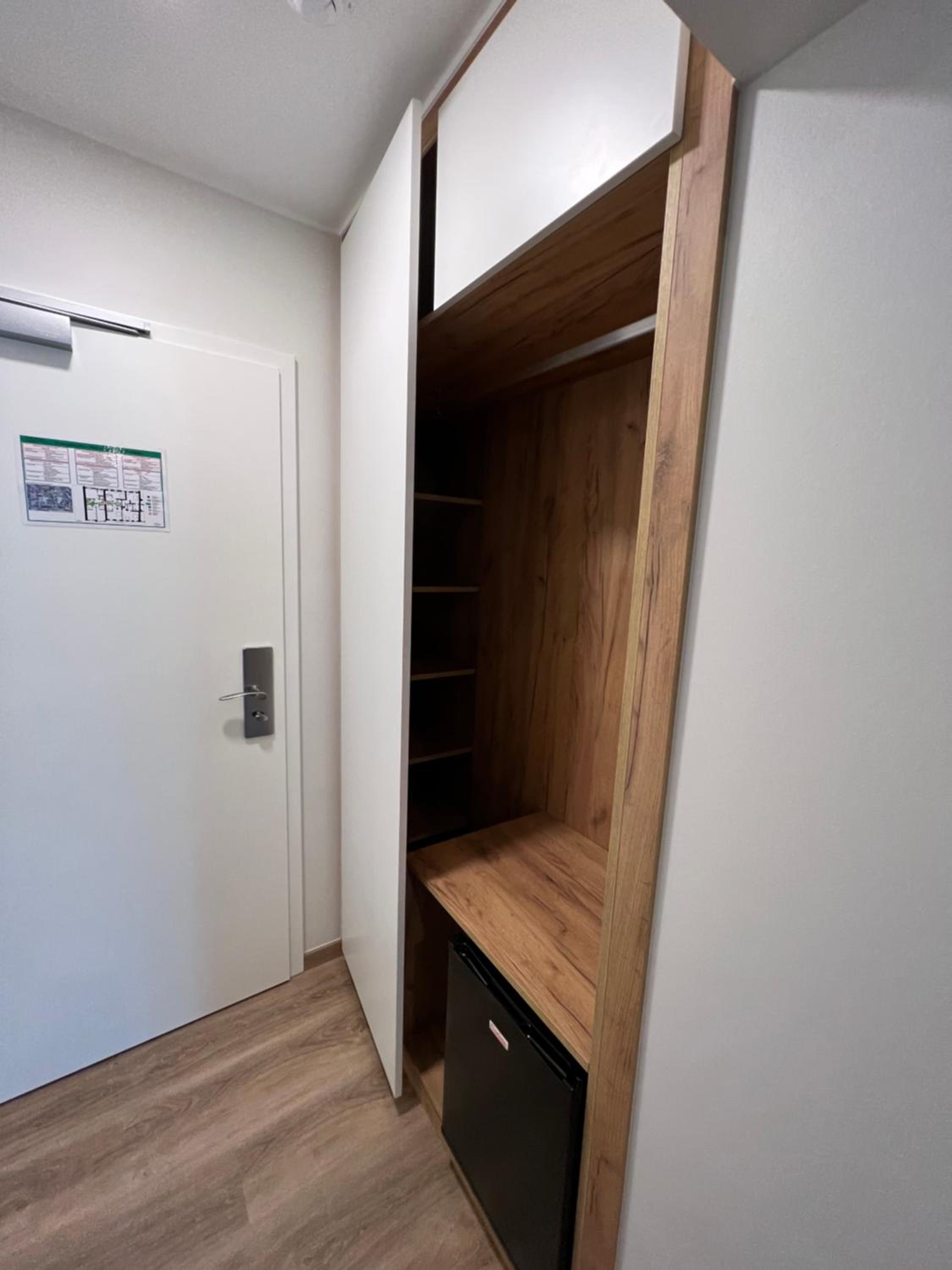 Die Zimmertür war sehr schwer, nur mit viel Kraft offen zu halten, und deswegen waren auch alle Nachbarzimmertüren recht laut beim Zufallen.