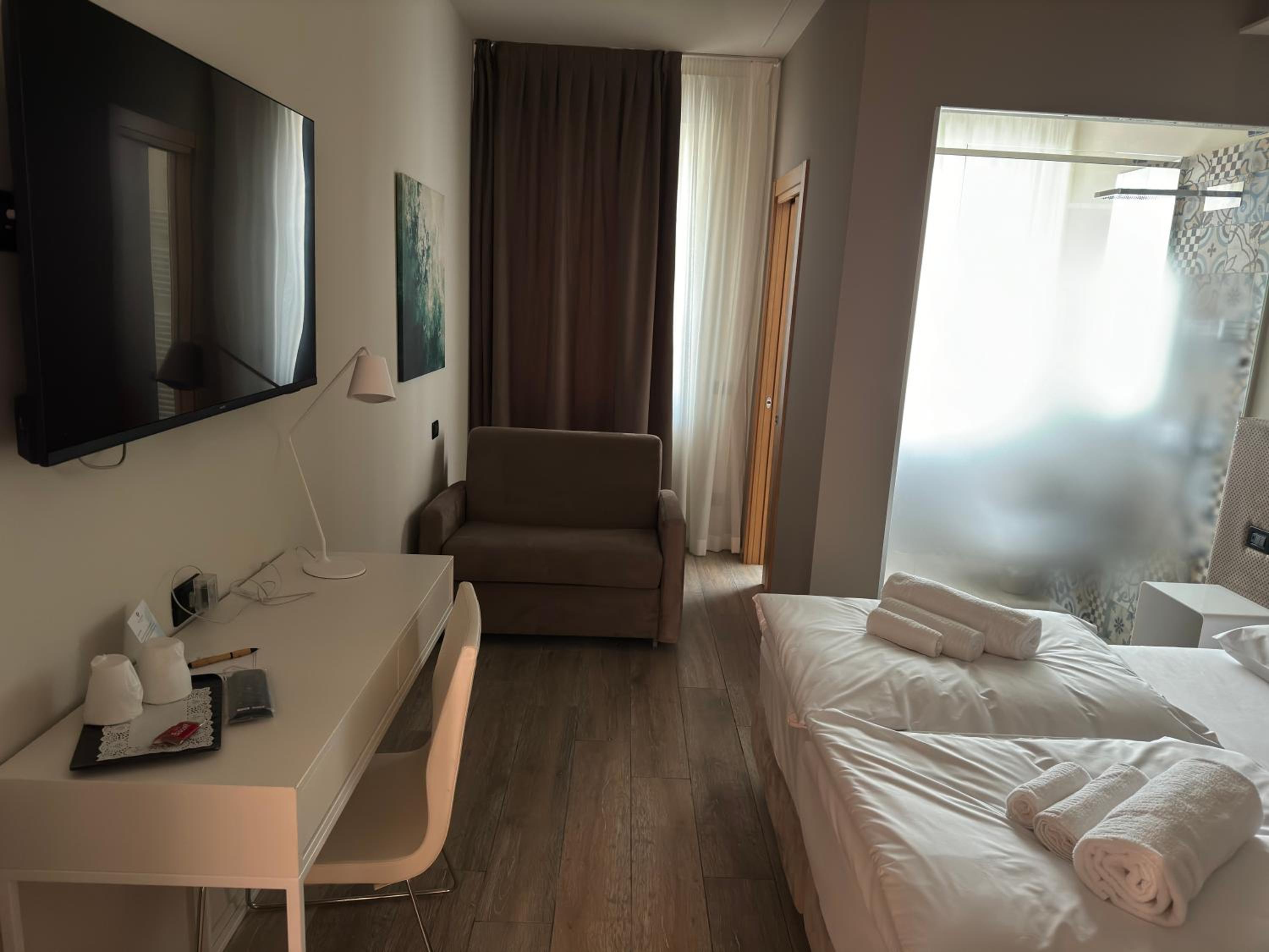 Camera spaziosa e accogliente. Hotel nuovo e moderno con staff e proprietari molto gentili e disponibili. Assolutamente consigliabile. Volentieri ancora una volta.