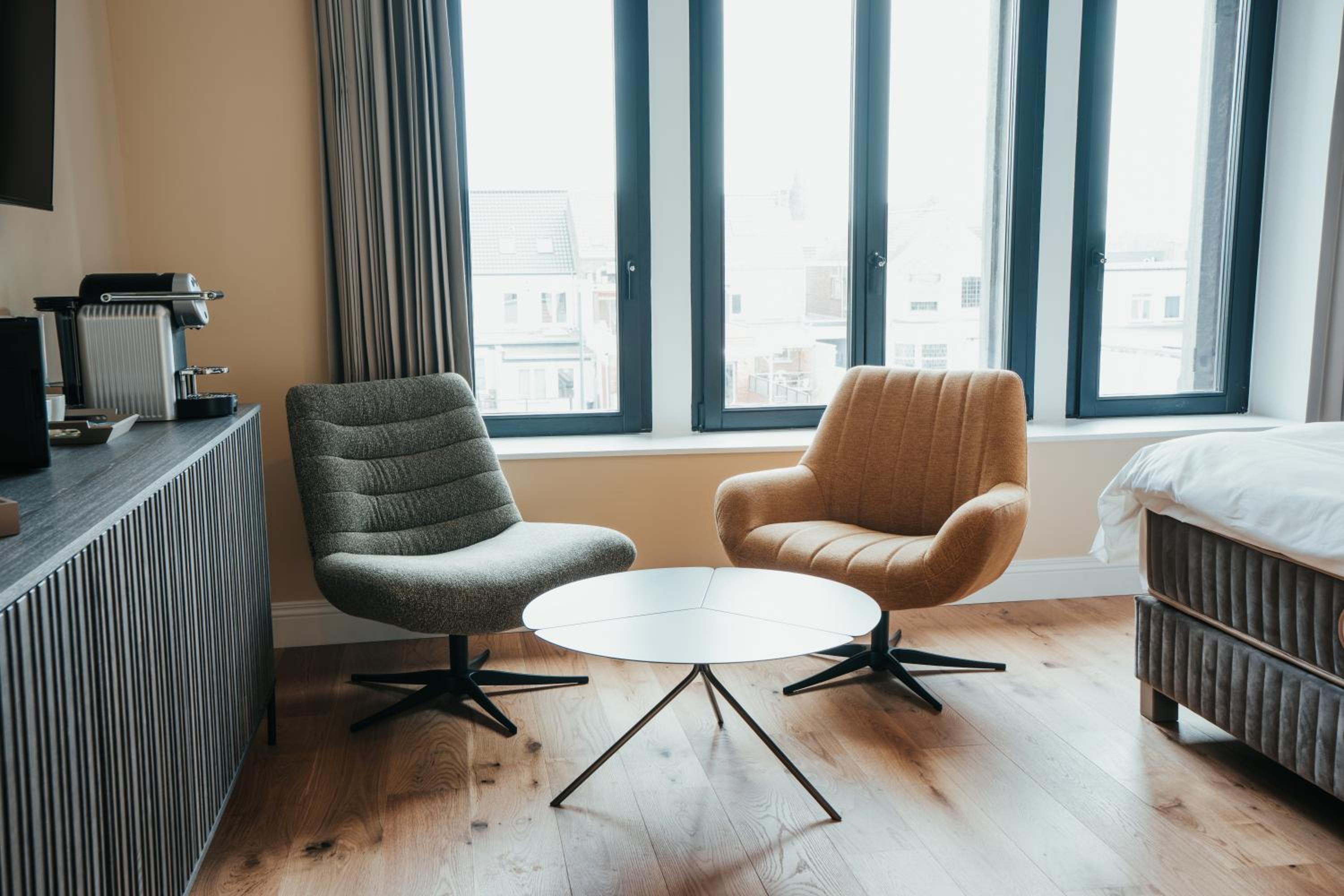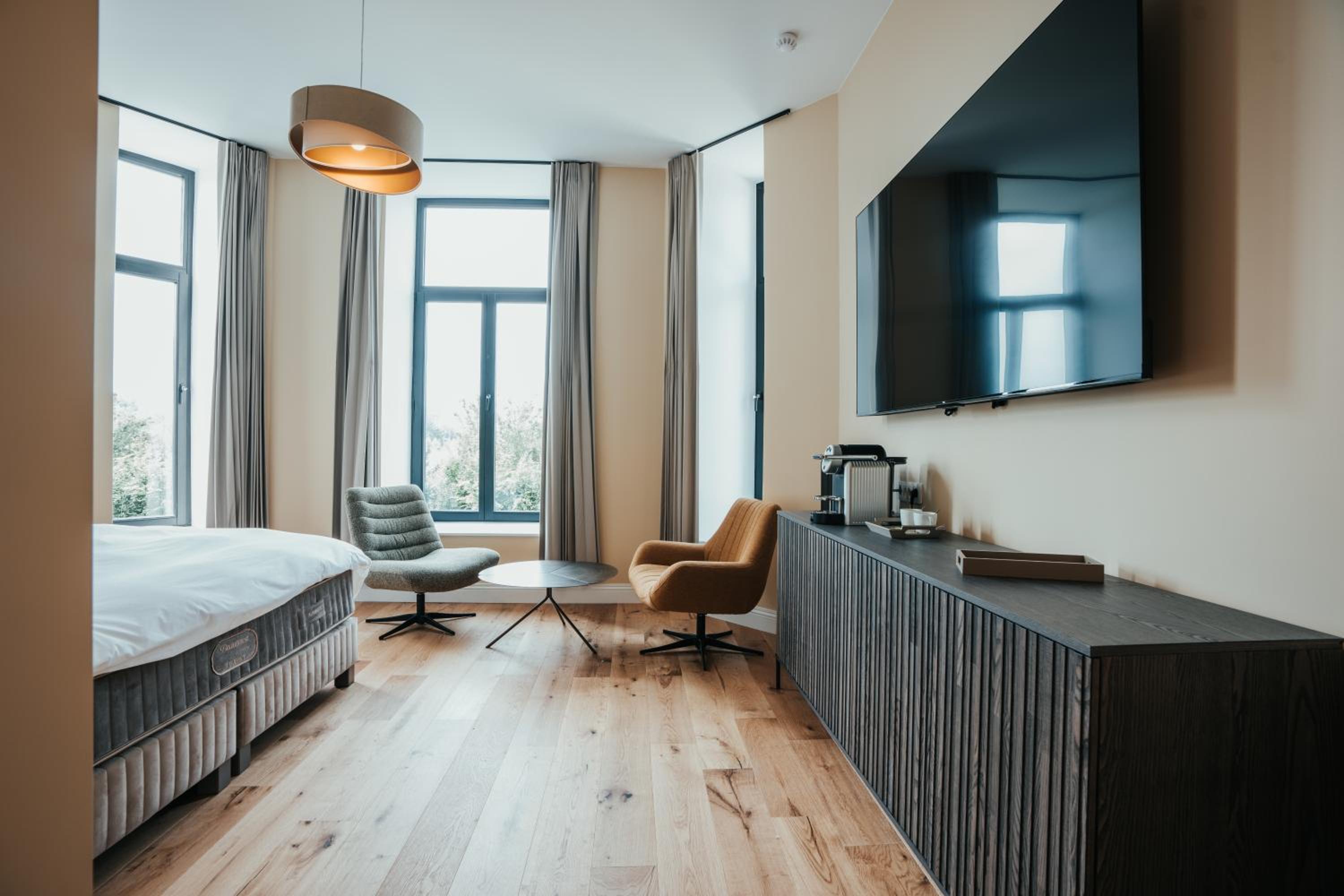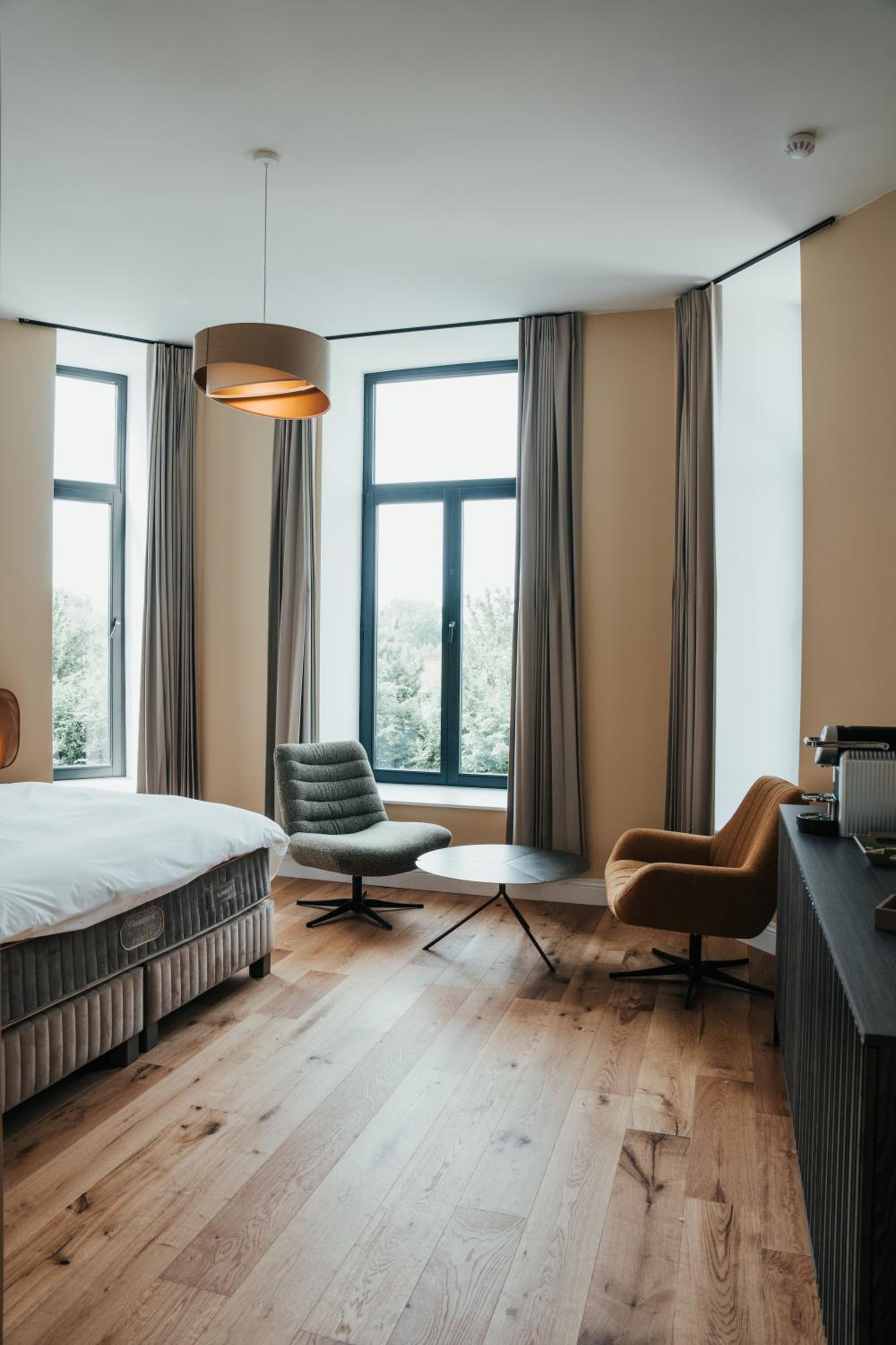 The hotel was all brand new, top condition. We went there to go to Dour festival which is a 10 min drive away. The hotel had ordered a taxi for us but it was delayed so the manager offered to take us there herself in her own car. Really really good service. The day after the staff served a late breakfast at our room. This place is absolutely amazing and can highly recommend.