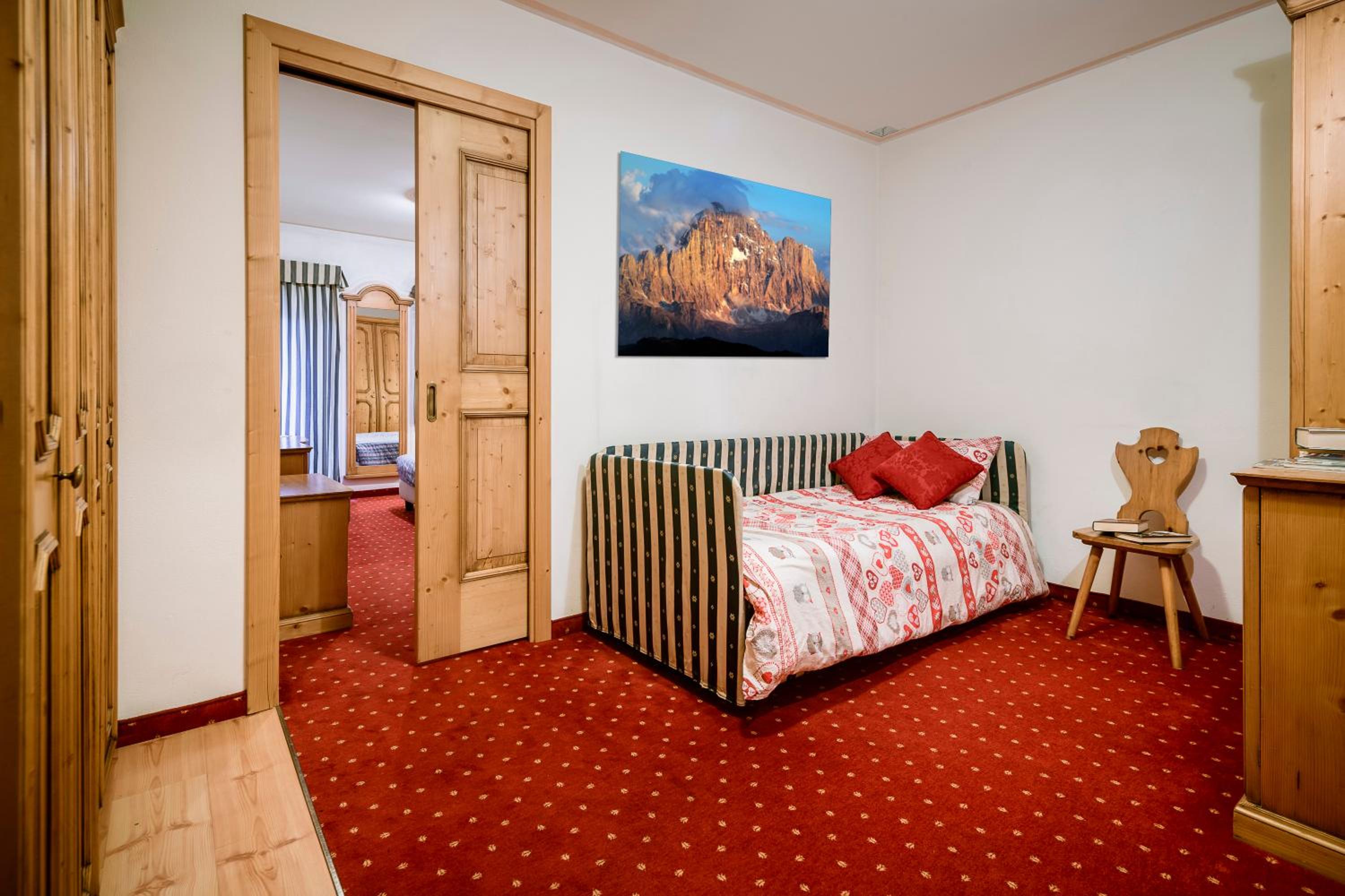 Wake up to breathtaking mountain views from your room's balcony at Albergo La Montanina, providing a picturesque backdrop for your stay in the Dolomites.