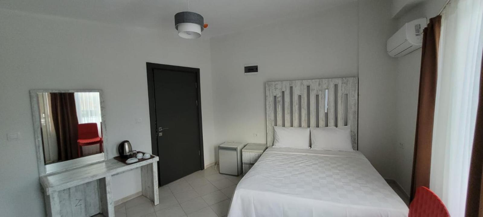 В номере было чисто, белье постельное чистое. Есть стиральная машинка. Кондиционер регулируется. Холодильник для хранения продуктов.