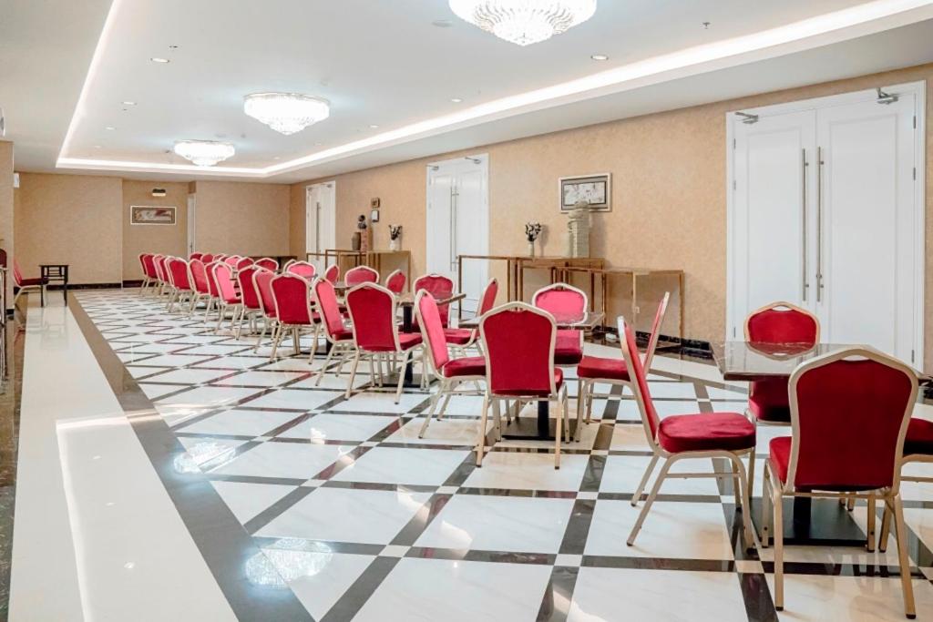 Dining Options and Room Service: With a restaurant on-site offering delicious meals and room service available, guests can indulge in culinary delights without leaving the comfort of the hotel.