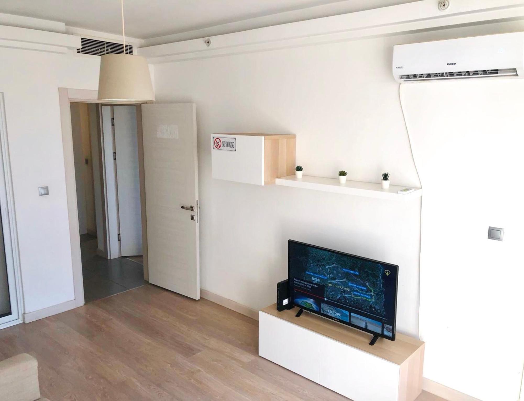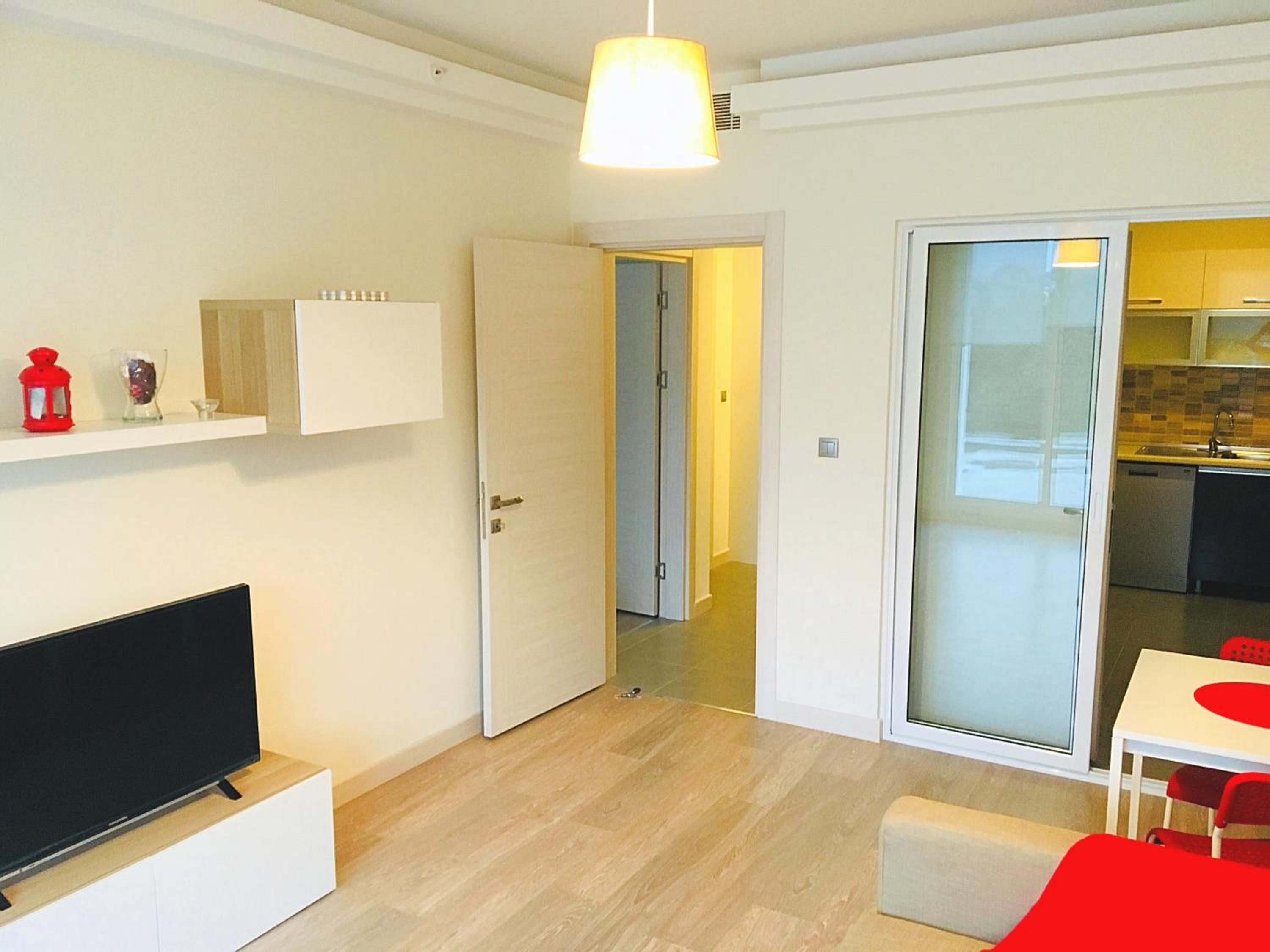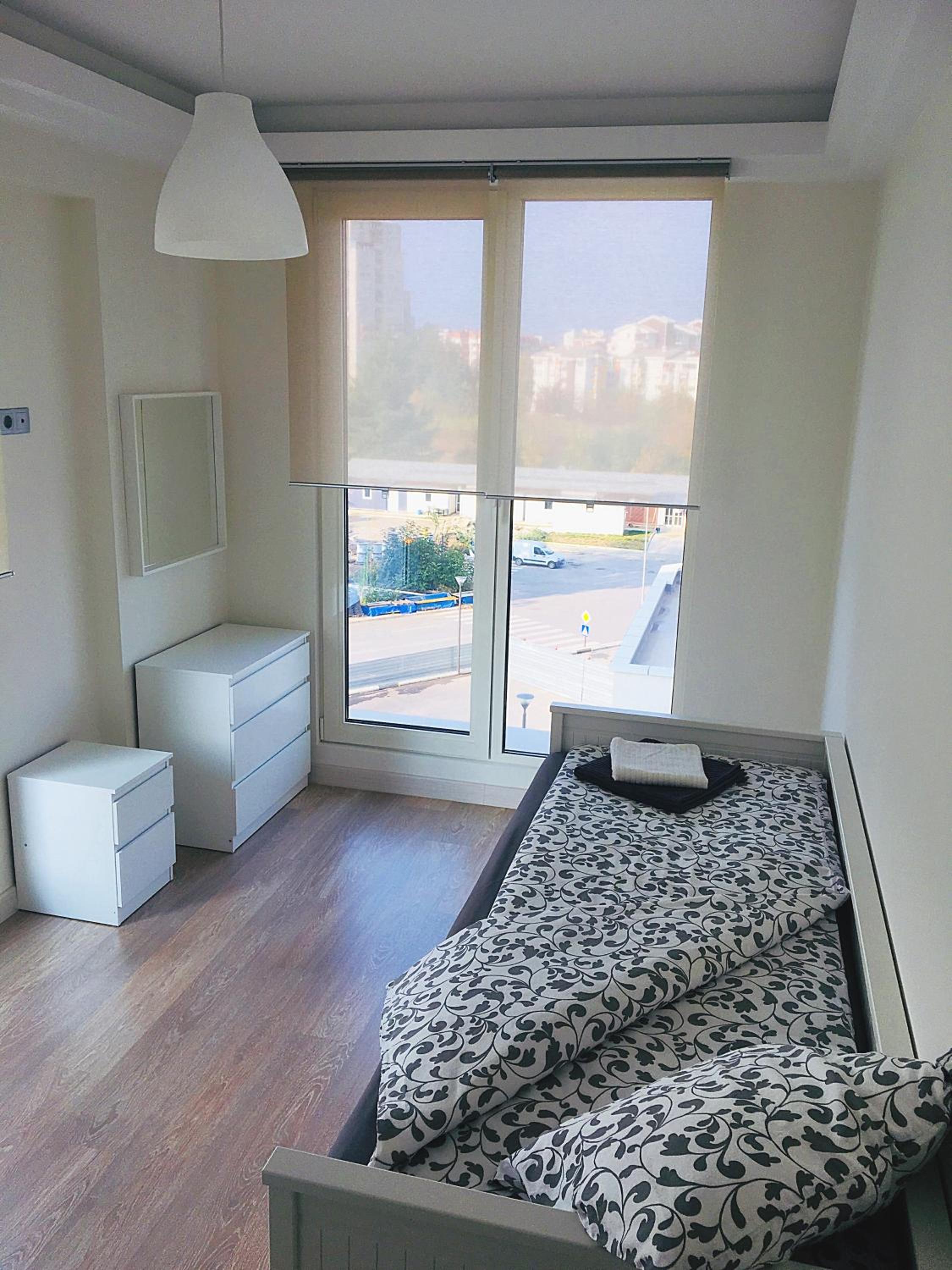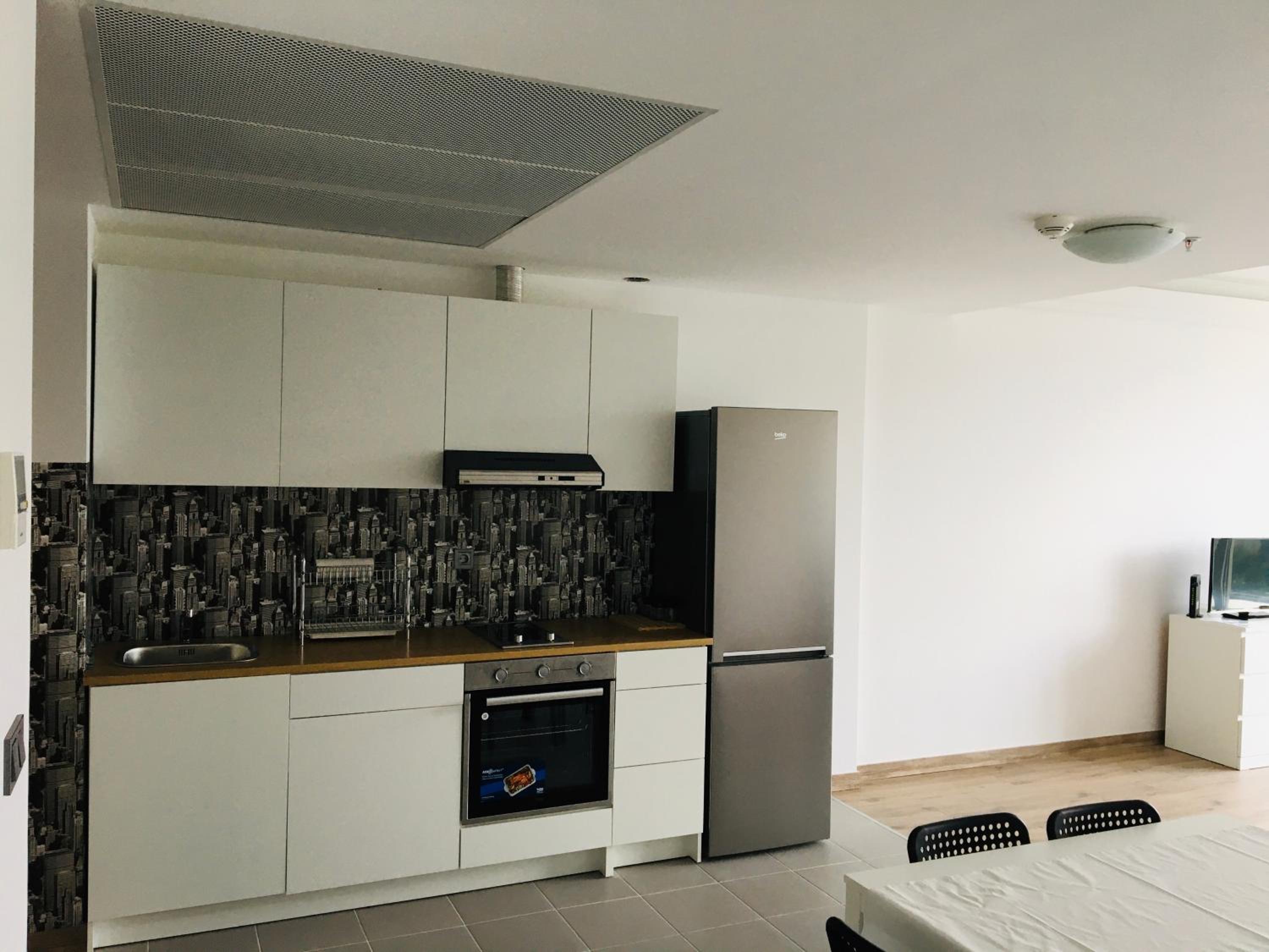 The apartment was very clean and all of the furniture was clearly new. The apartment is spacious and really good-looking. The bed was spacious and comfortable. The building is also new and luxurious.