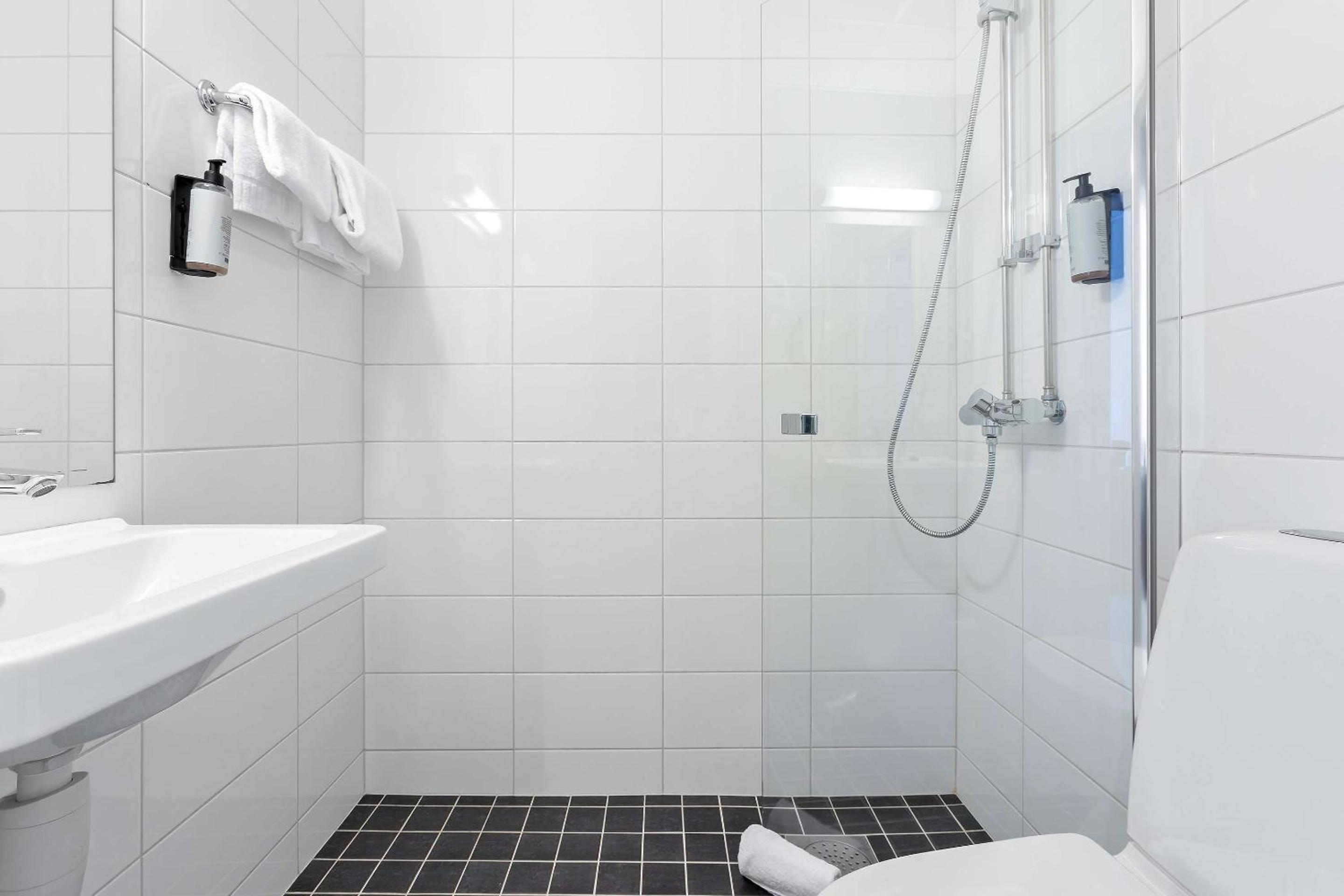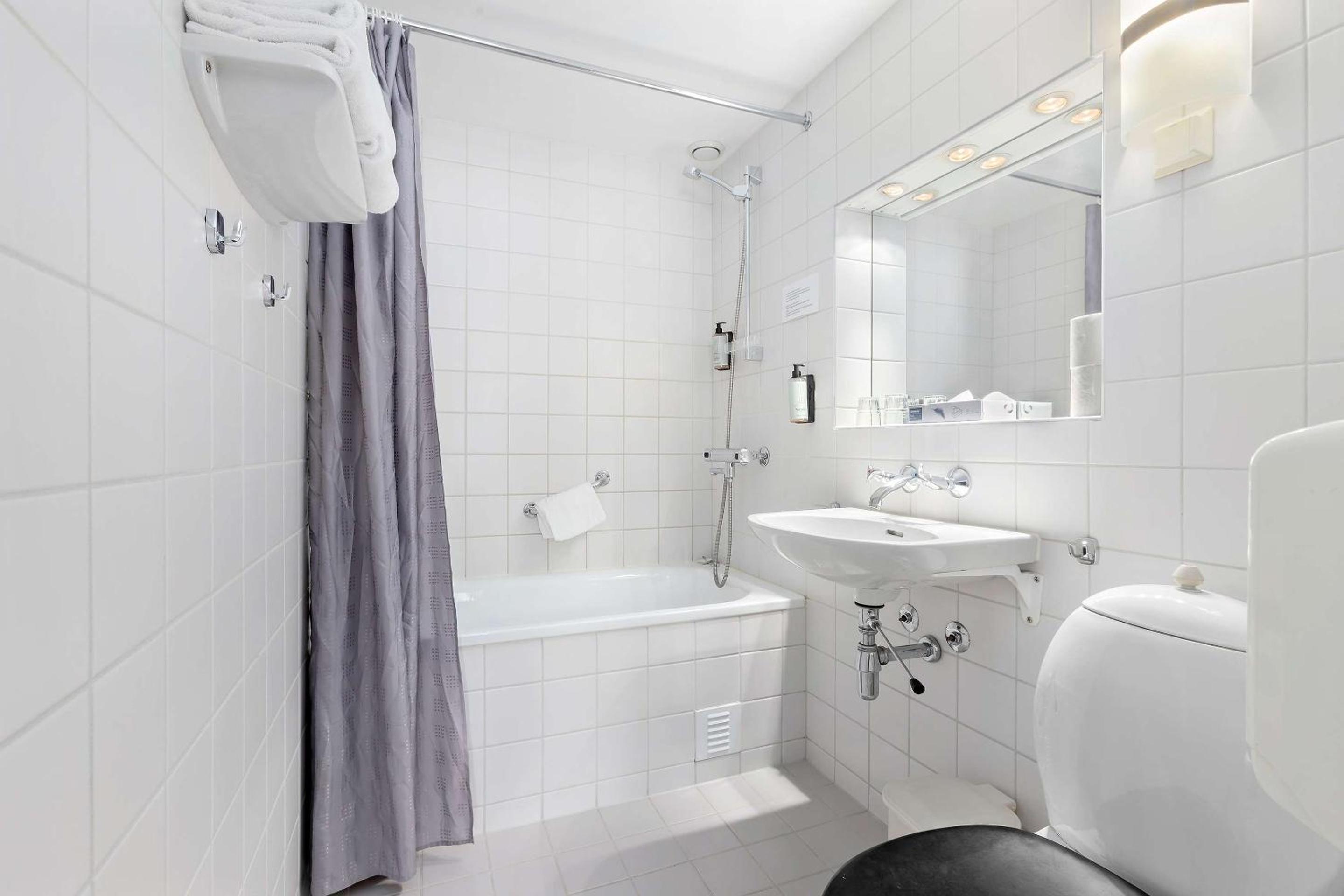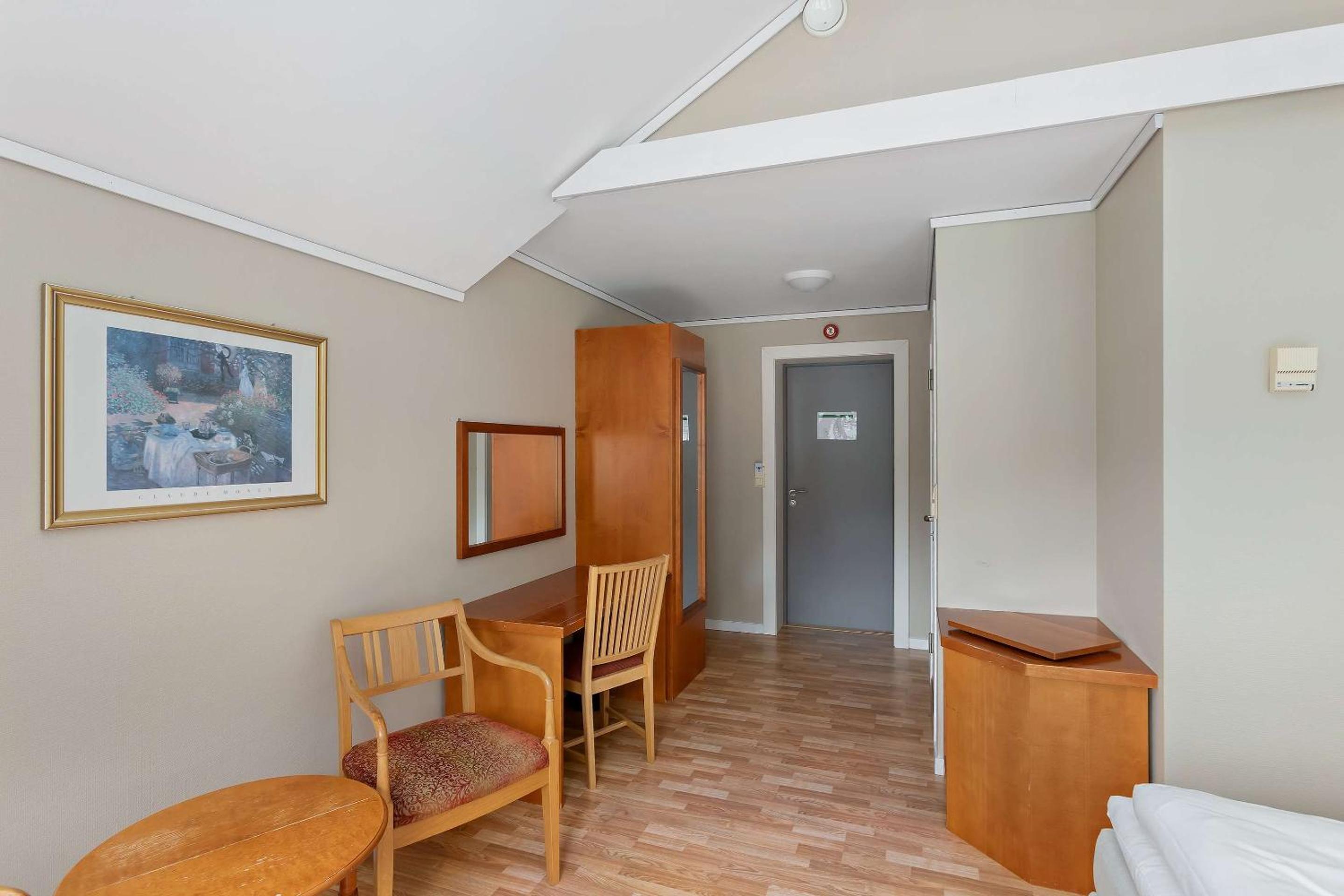 Dårlig bad, gammelt. Dusje i badekar for eldre personer ikke aktuelt. En stk. vanlig stol til to personer. For dårlig. Ingen kjølemulighet på rommet. Generelt for dårlig i forhold til pris.