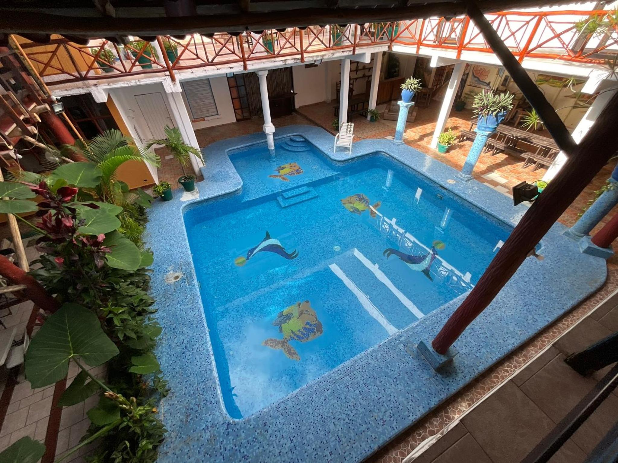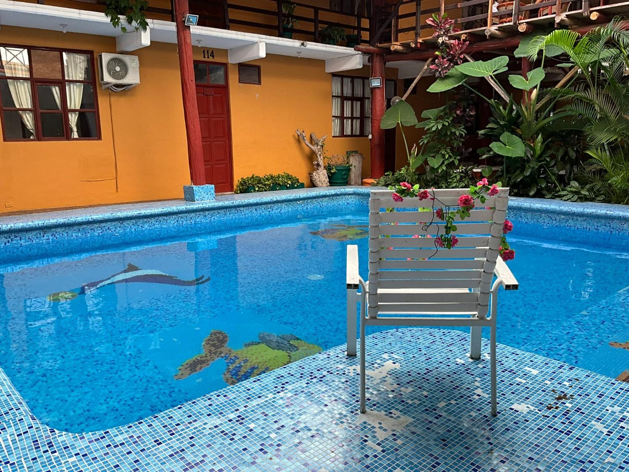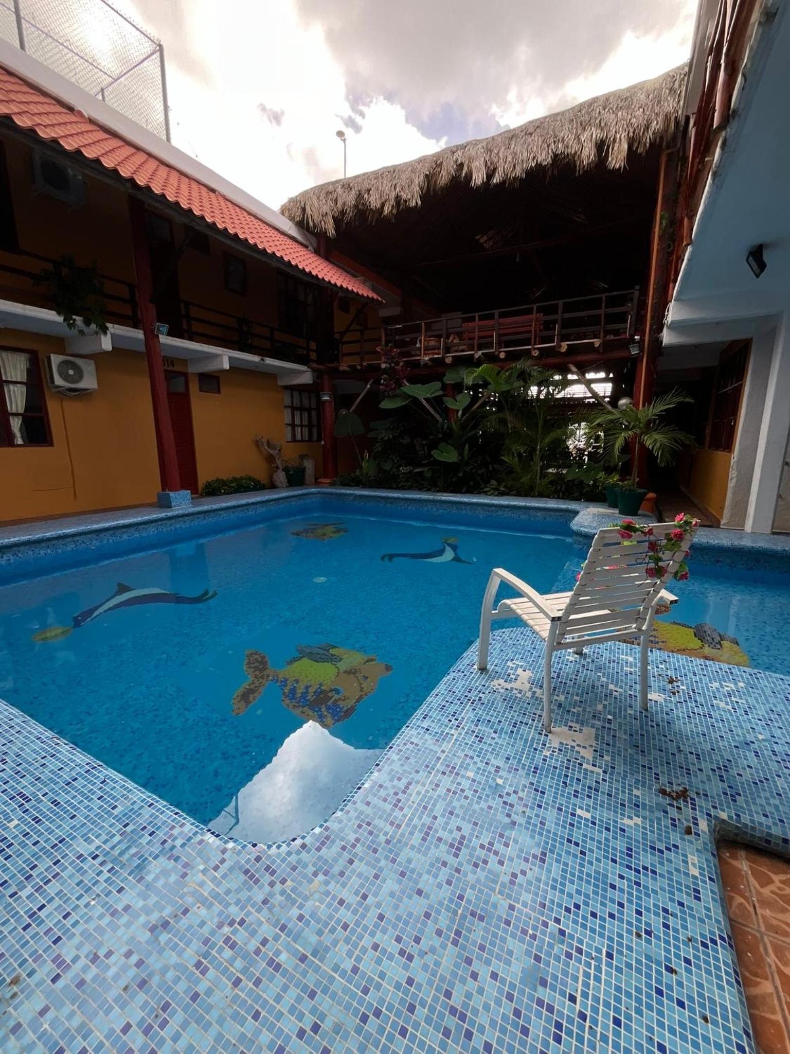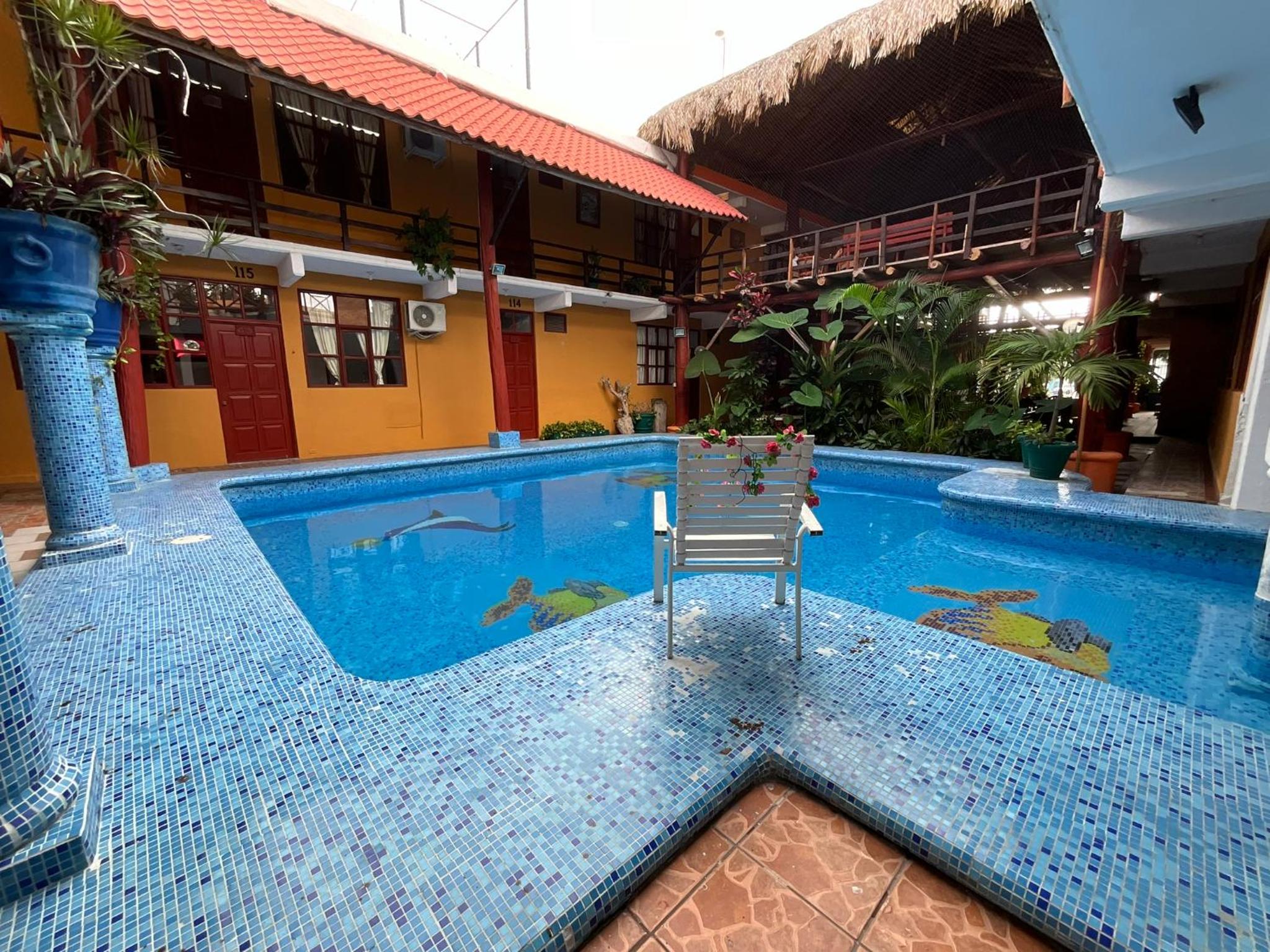 There's a pool like shown on the photos. Sunday buffet was reasonably priced at 195 pesos including drinks and all. Hot water and AC worked. Close to OXXO or Soriana