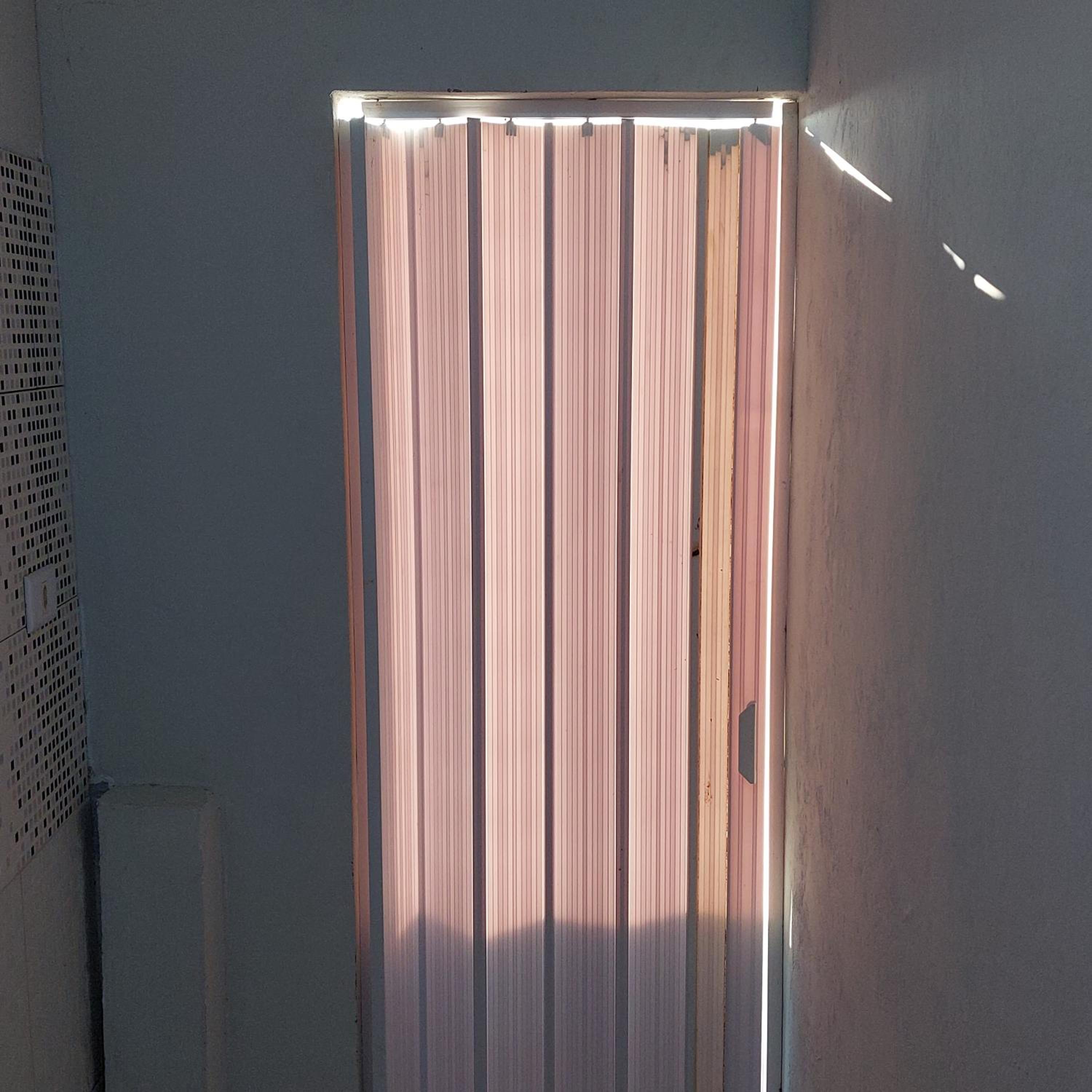 Quarto com acesso direto para rua. Porta com festa na parte de baixo de 10 cm, que poderia vir um rato da rua. Paredes úmidas e mofadas.