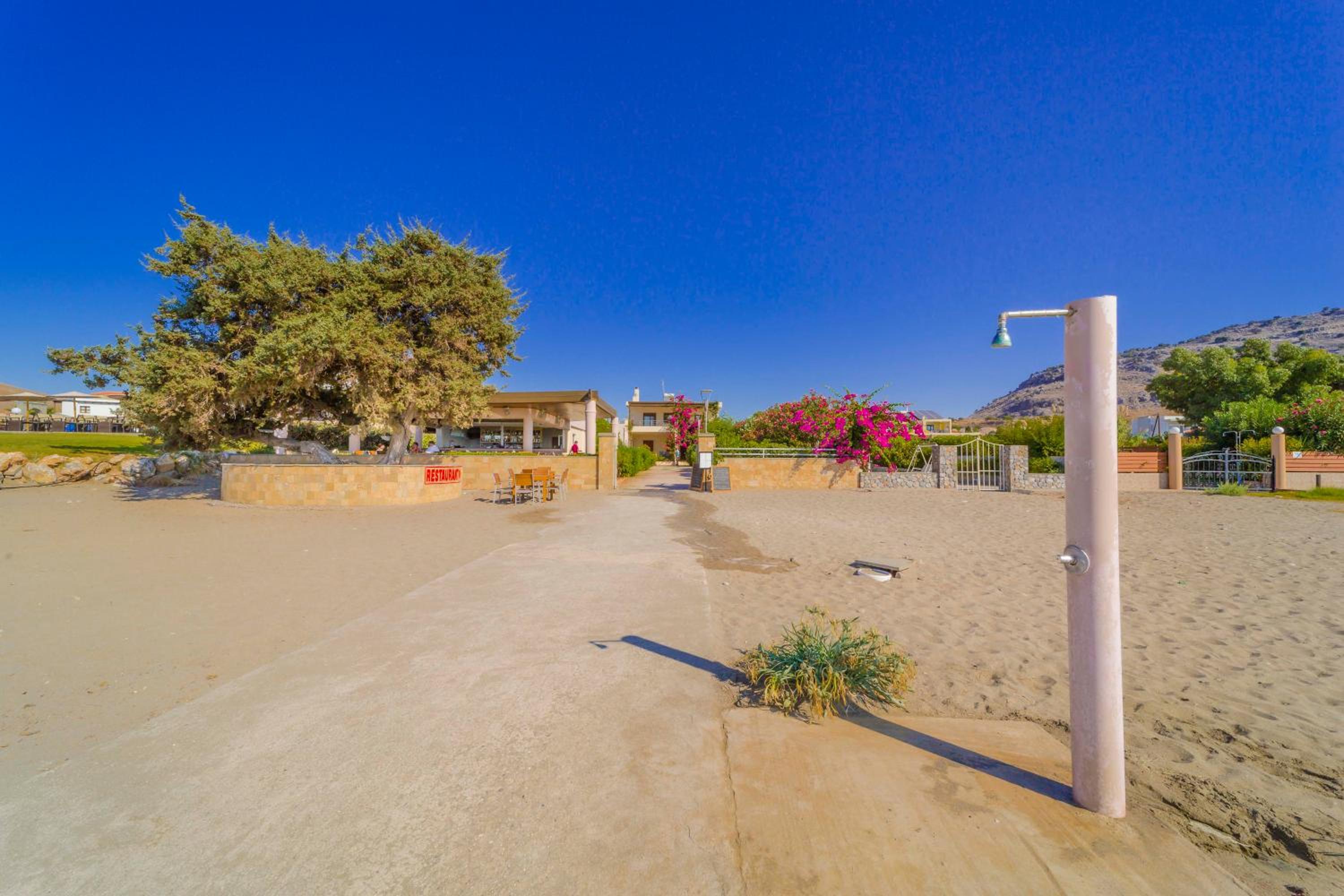 Access to sea is easy, water clean and warm, ideal for swimming and there are many water sport and daily transport options to Lindos.