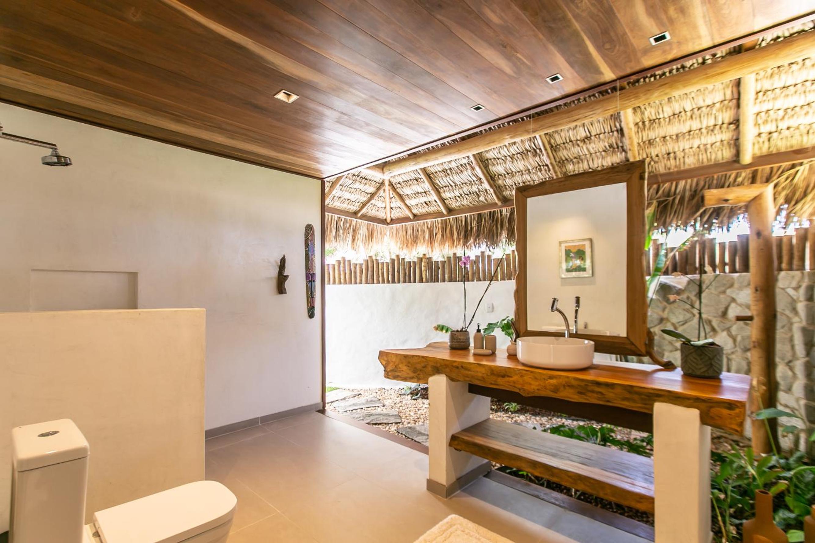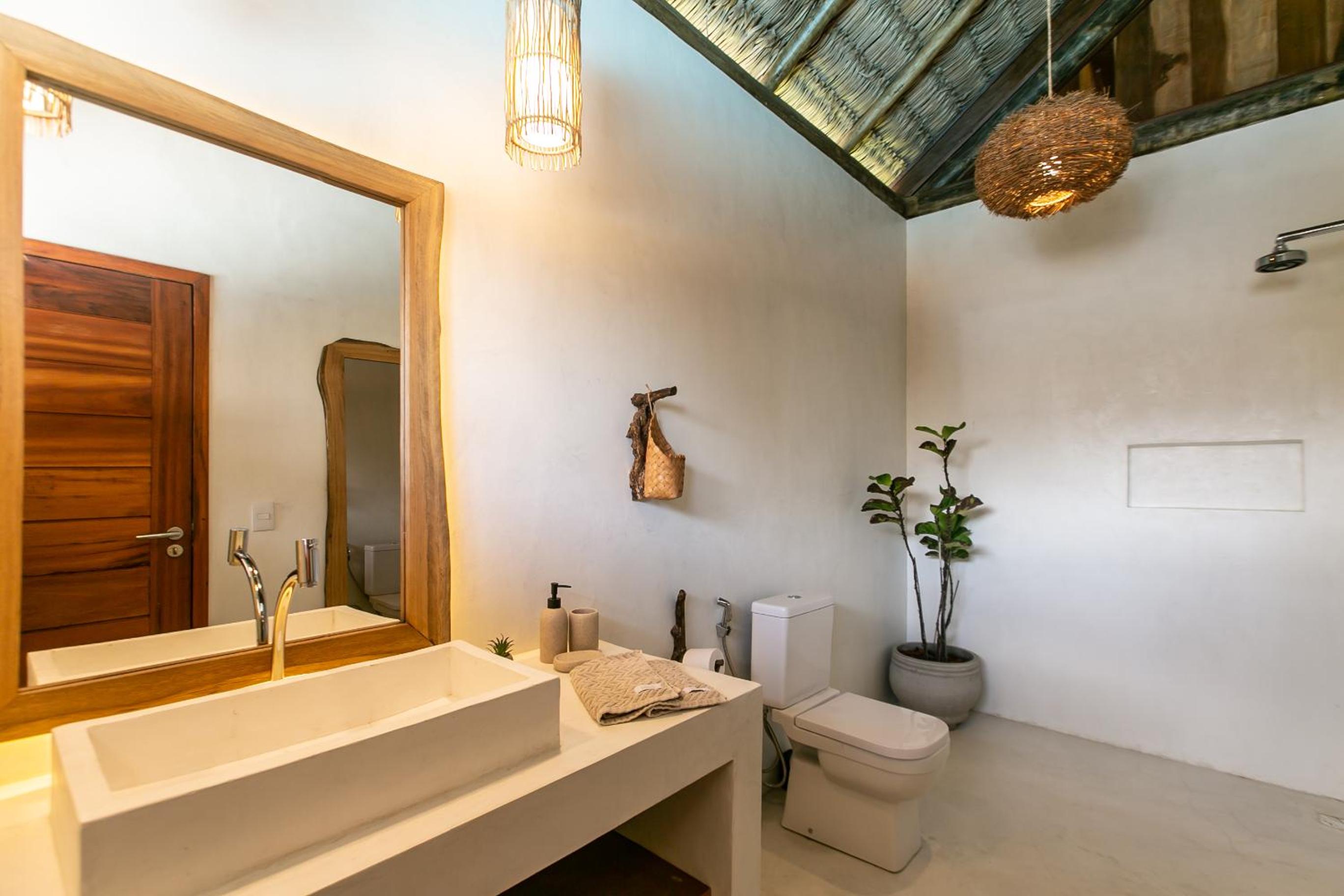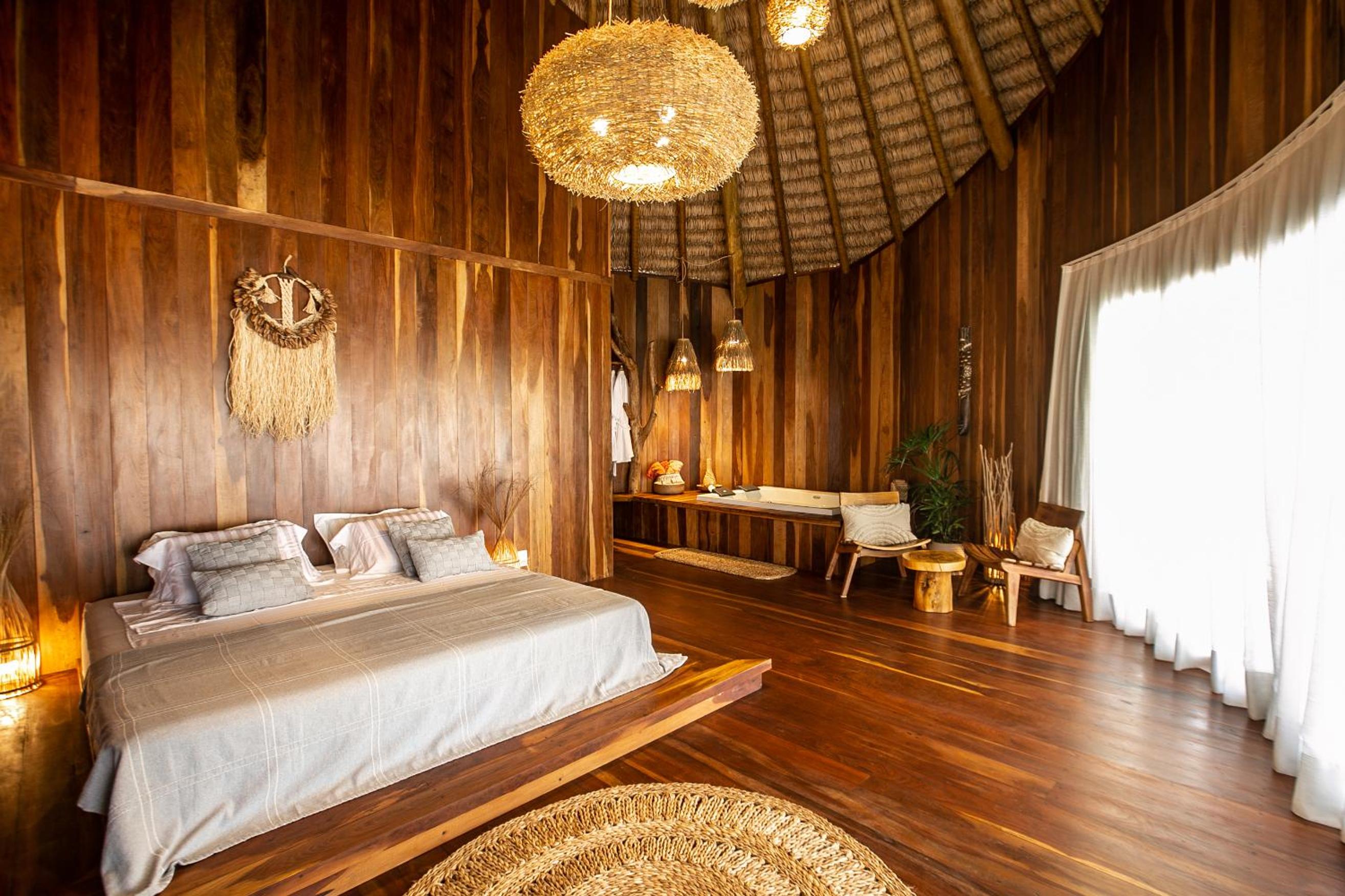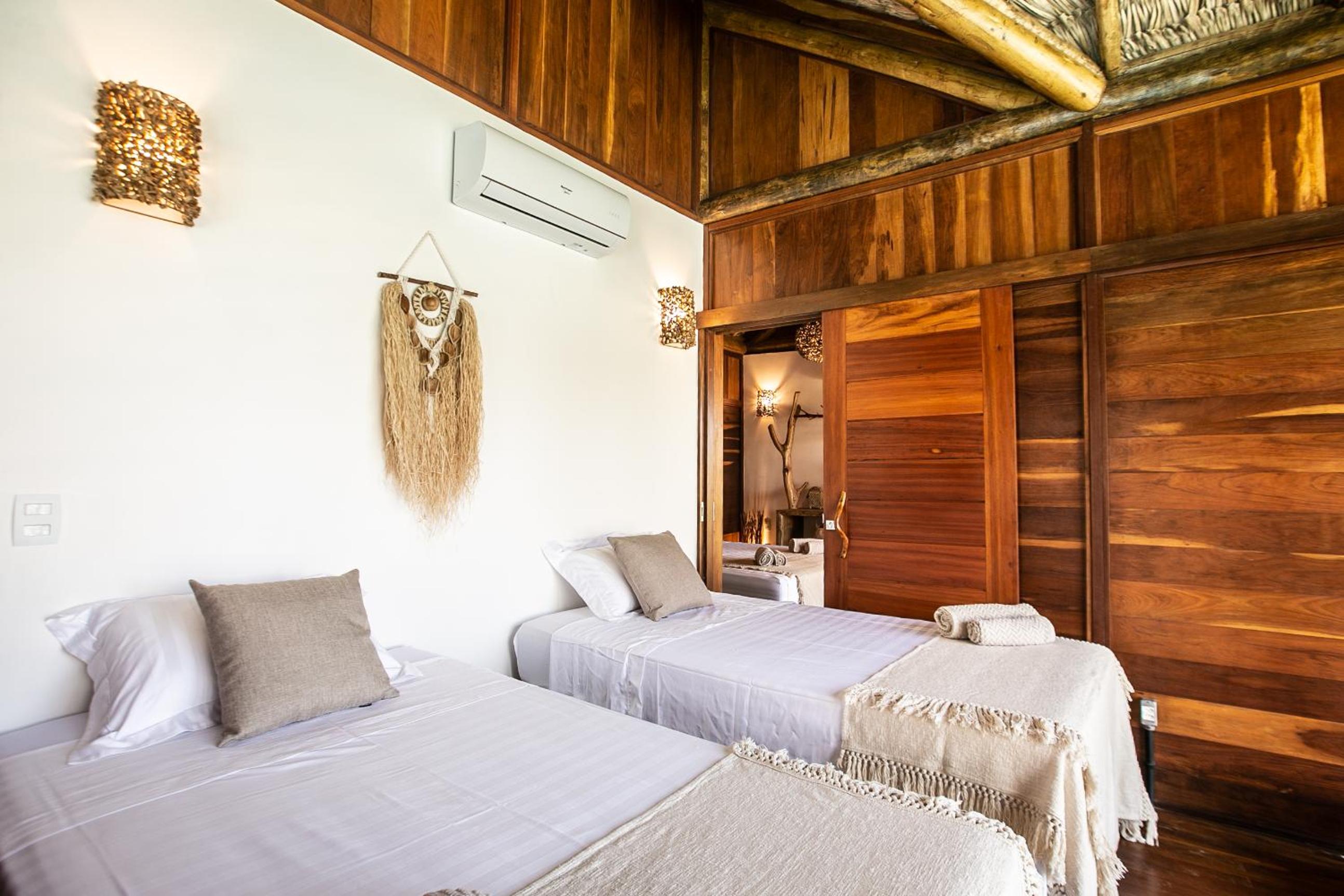 O quarto é lindo, mas faltou um apoio para malas. Como é um quarto mais compacto, nossas malas ficaram pelo chão. Como a natureza é pulsante na pousada, sugiro a inclusão de um cesto de lixo reciclável no quarto e cestos de lixo em um ou outro ponto do jardim. O evaporador do ar condicionado fica do lado de fora do quarto, bem sob a janela. Como as paredes são de madeira, não isolam tão bem o barulho, que pode incomodar algumas pessoas (nada excessivo, mas pode incomodar quem tem sono leve). Não gostei também dos pernilongos a noite, tive que passar repelente para dormir (mas não sei se a pousada pode fazer algo sobre isso ou se é uma característica da região)