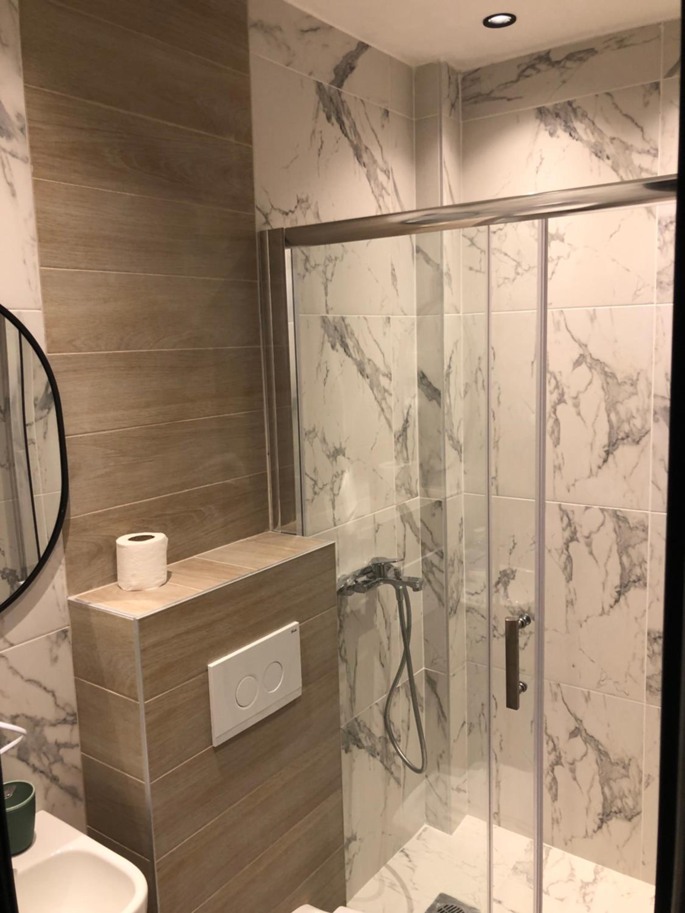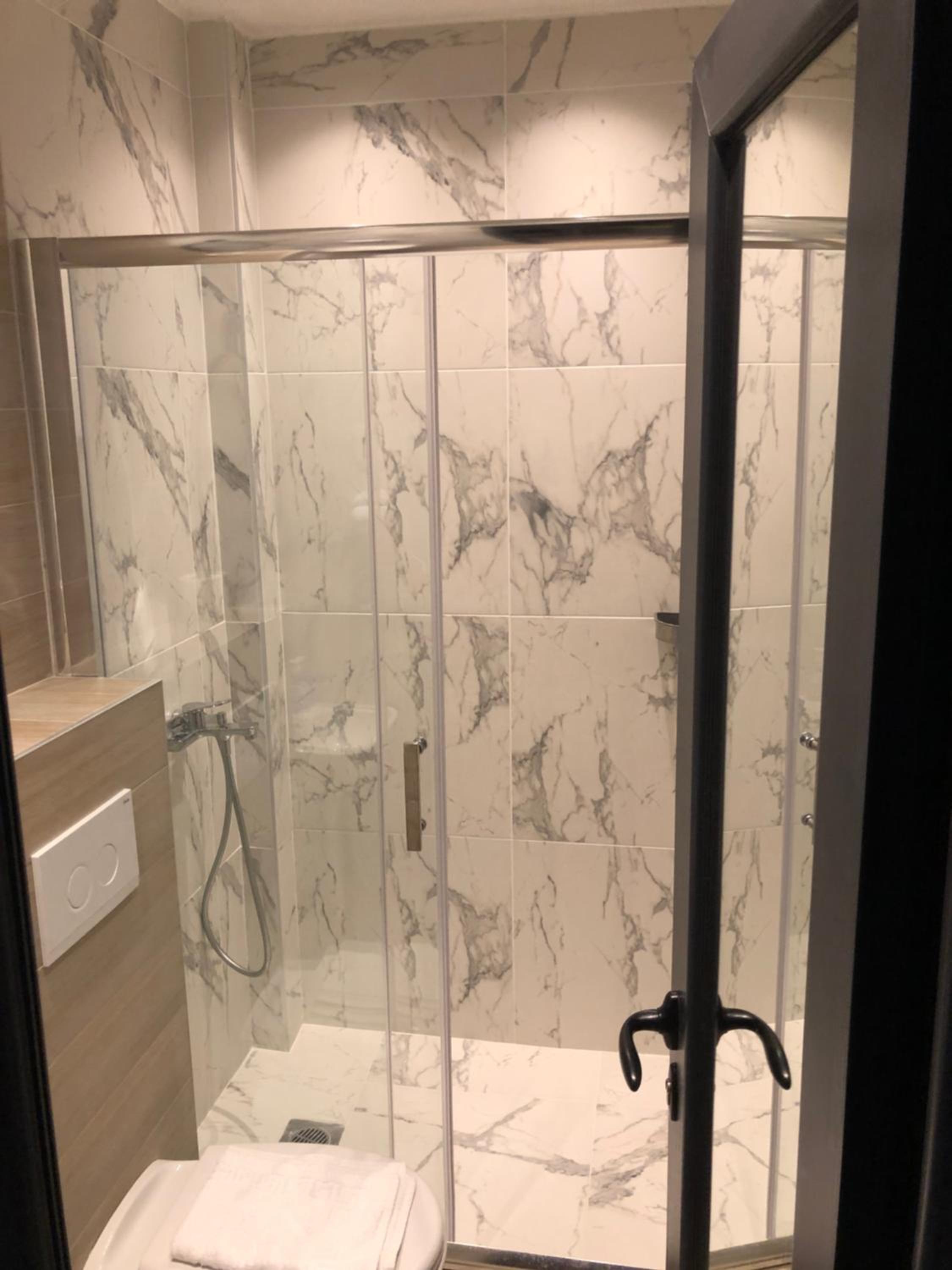 No curtain in the shower
