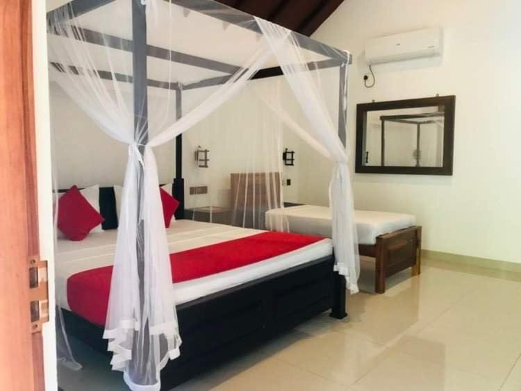 L'emplacement tout près de l'entrée du Parc National d'Udawalawe, l'accueil et la gentillesse du personnel malgré notre arrivée tardive, le safari mémorable avec le chauffeur recommandé par l'hôtel, le bon rapport qualité prix.