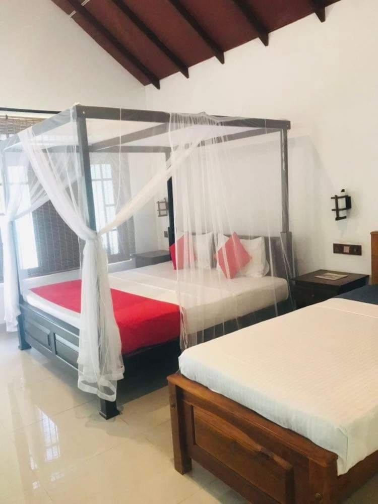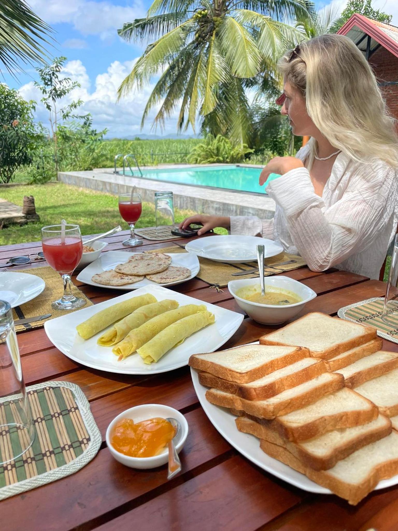 une arrivée sous la chaleur des tropiques, une piscine pour le plus grand bonheur des enfants et évidemment des éléphants qui passent la tête de l'autre côté de la route; le ton est donné. Un accueil chaleureux de la part de Chamil, et de nouvelles chambres en perspectives pour venir plus nombreux. La résidence est à proximité de l'entrée du Parc National et c'est bien pratique.
