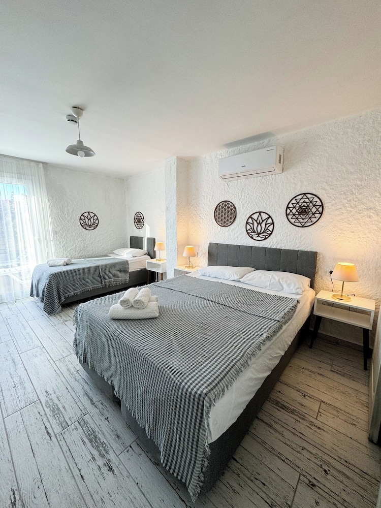 Şirin güzel bir oteldi odalar temiz mini bar vardi fiyatlar makul havuz muhtesemdi gelelim eksilere tv calismiyordu odada banyo disinda askilik yoktu benim otele girisim 22;30 du daha gec saatlerde baska otel misafirleri geldi gec saat olmasina ragmen havuzda cok saygisiz ve gurultulu eglendiler otel sahibinin uyarması gerekirdi ve sabah kahvaltisi yeterliydi fakat instagram fotolarinda kahvaltida patetes kizartma vardi ama bize gelende yoktu küçük ayrintilar ama belirtmek istedim