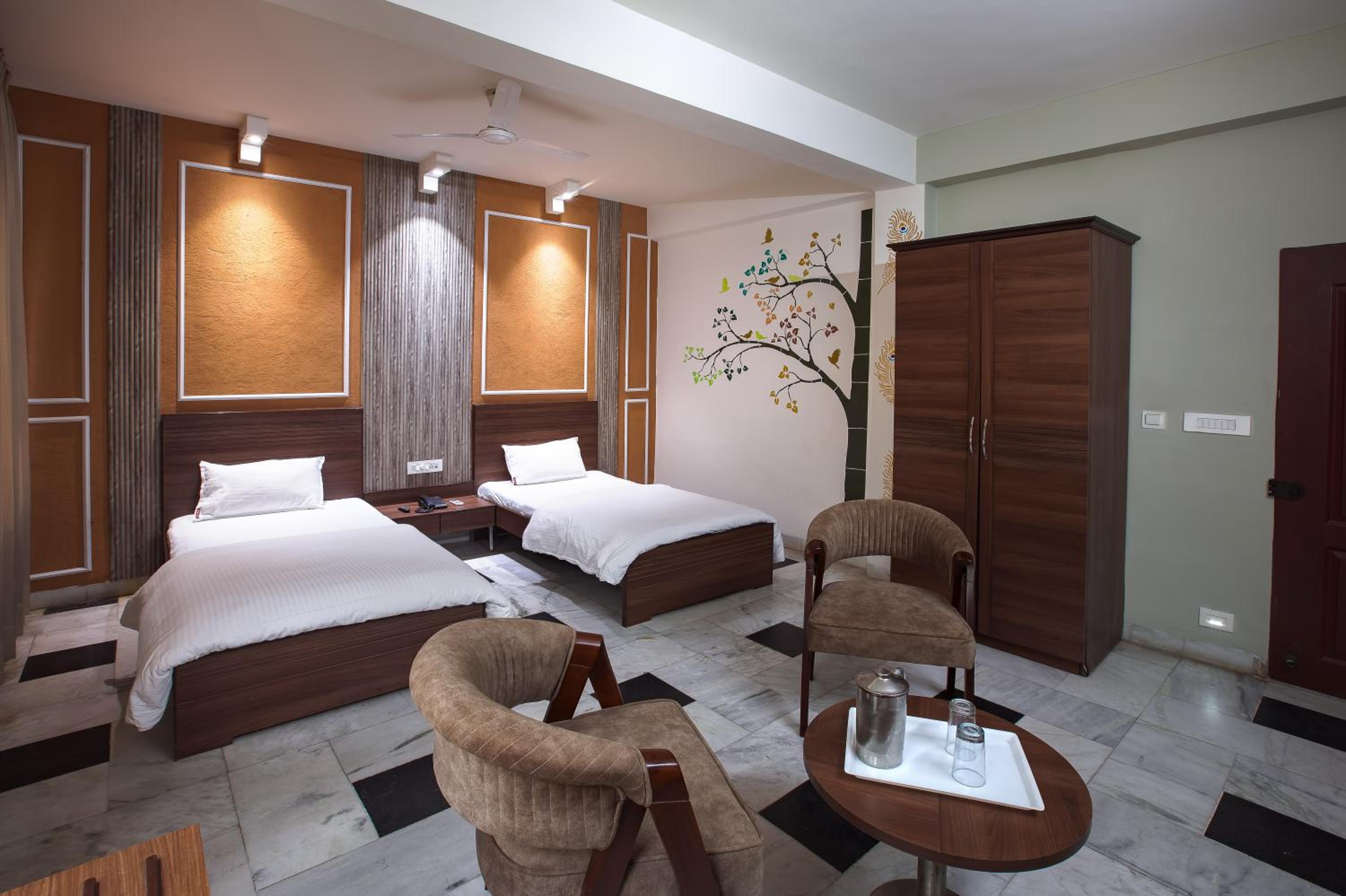 Отель находится очень близко от Храма Кришна Баларам Мандир. Это большой плюс. Номера в новом здании светлые, большие, для проживания все есть. В один из дней не было горячей воды, но сотрудники к вечеру все починили. Единственно негде сушить одежду, после стирки. В старом здании есть балконы и открываются окна, здесь в номере, к сожалению, окна не открываются. Мы часто останавливаемся в этом отеле. В будущем также планируем останавливаться здесь. Спасибо всем сотрудникам. Для Вриндавана это один из лучших отелей.