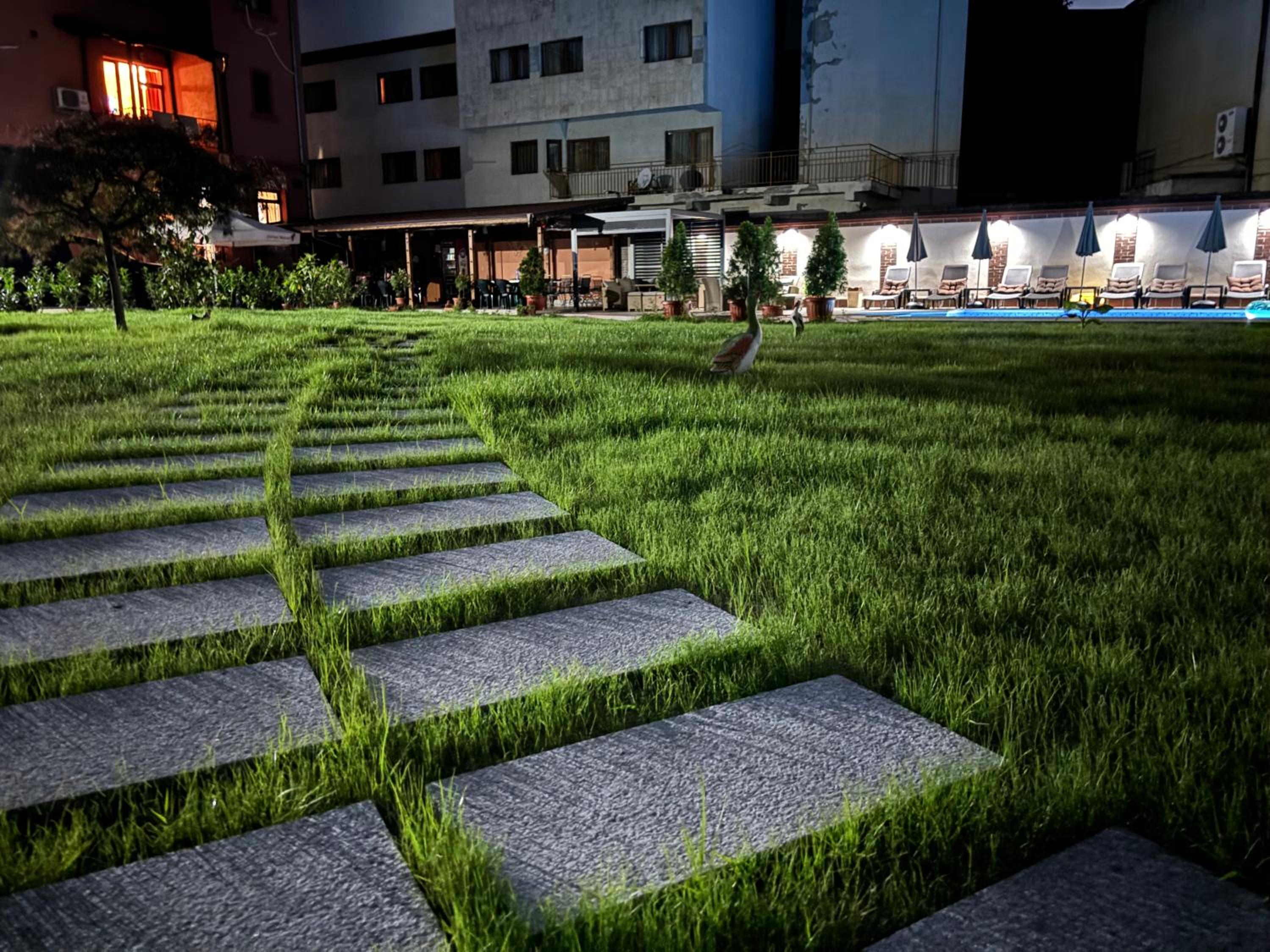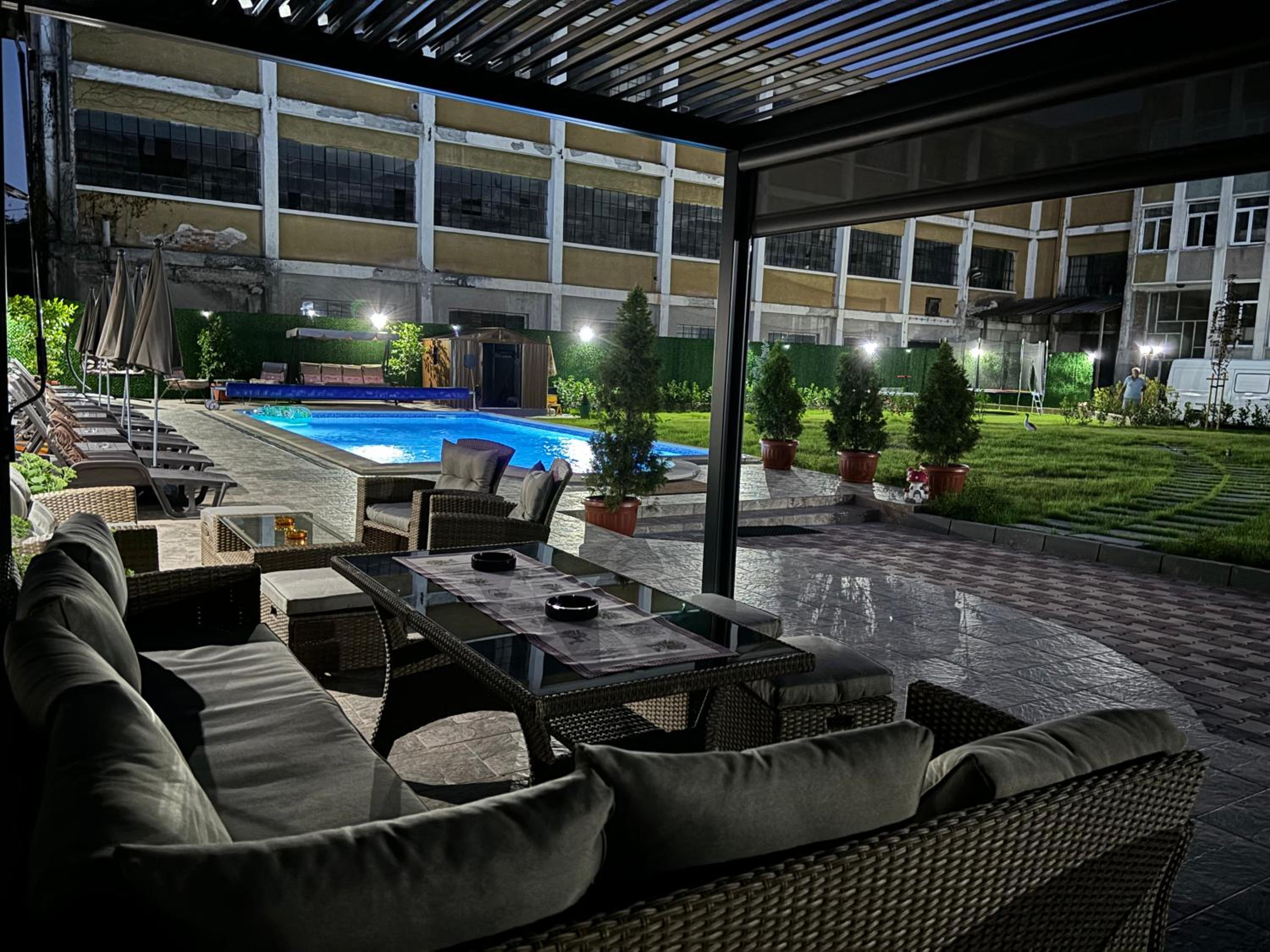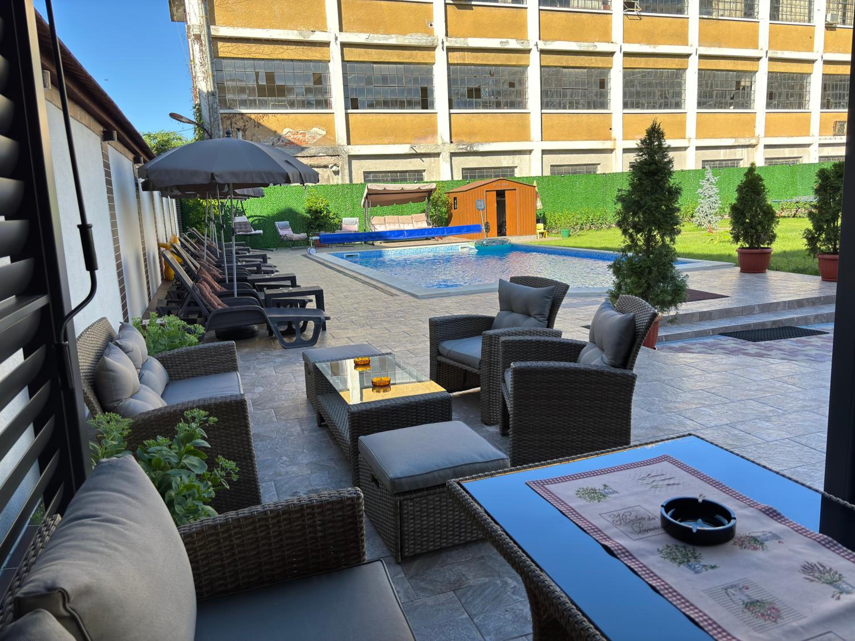 , охраняем безплатен паркинг. Много чист басейн, голям батут.