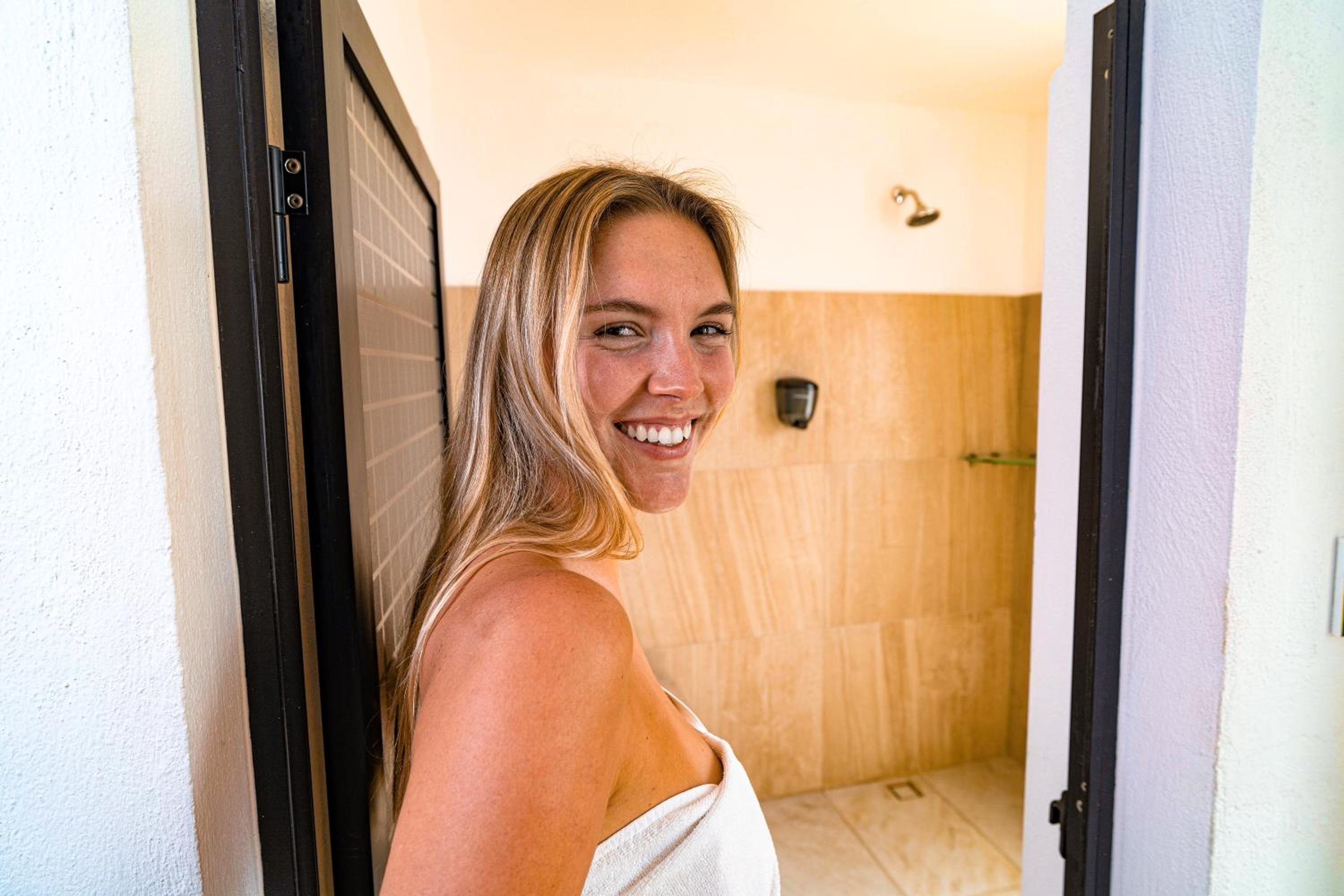 Baños poco espaciosos, y limpieza no muy regular. La cortina era muy corta y hacia que se mojara más.
