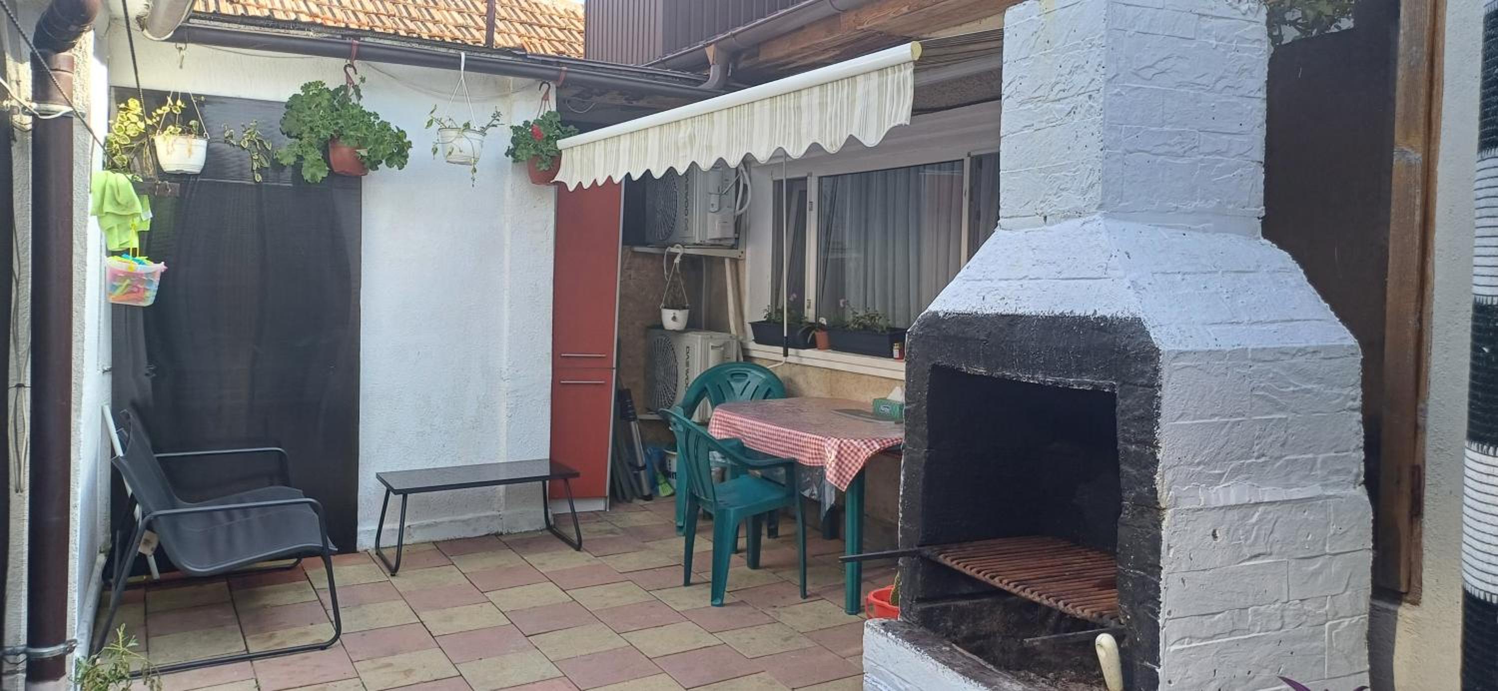 There is a practical outdoor kitchen suitable for preparing small meals.