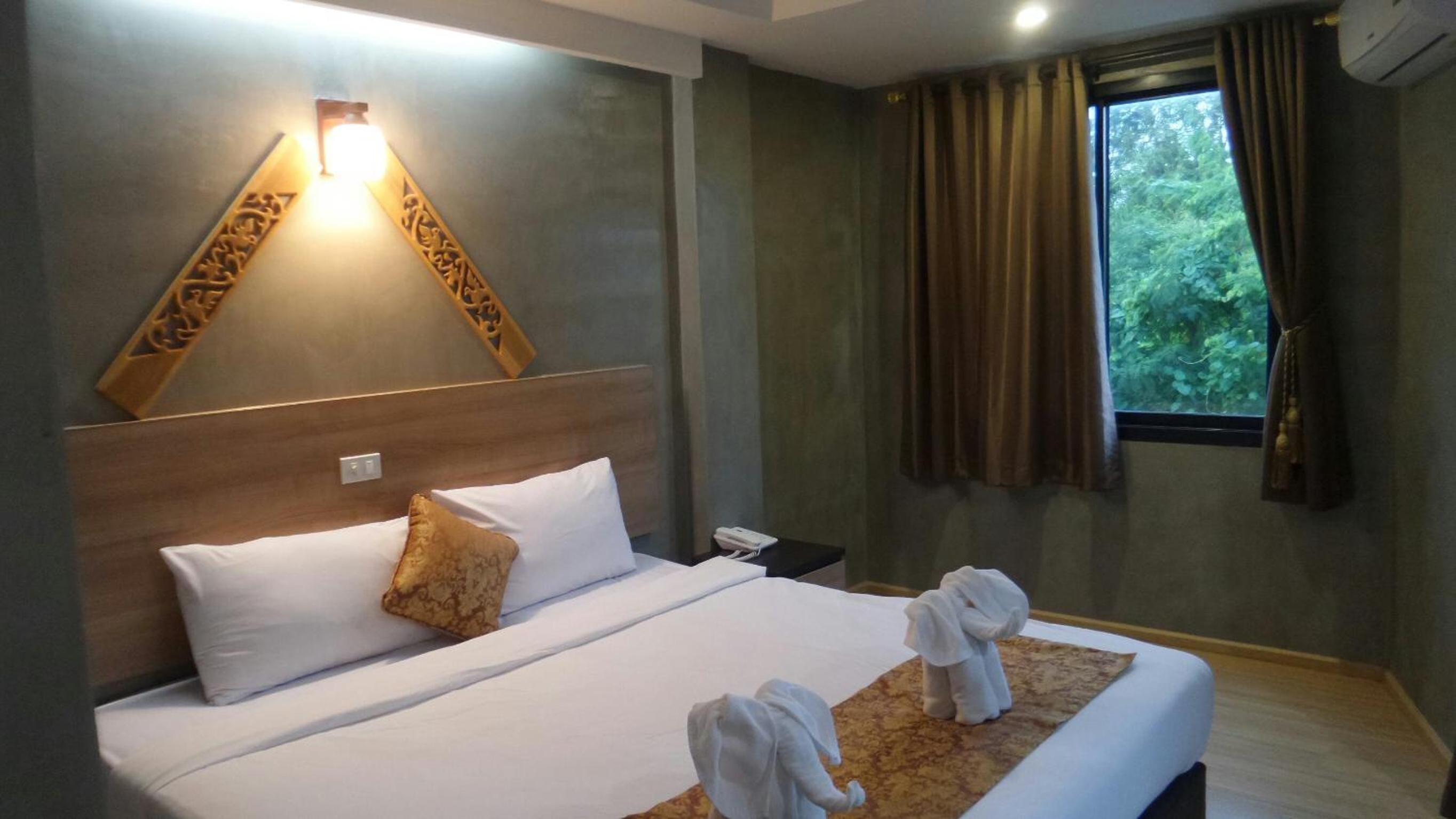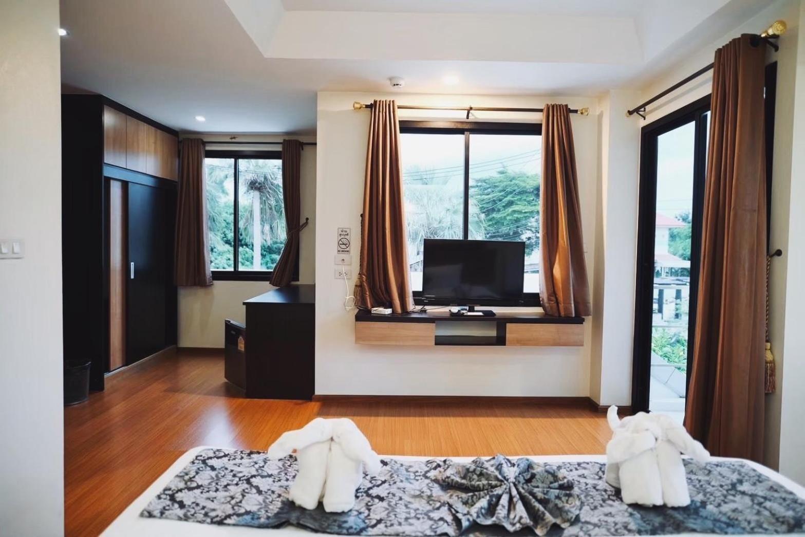 Narai Iyara Palace, located in Ban Sa Maklua, offers elegantly appointed rooms with modern amenities such as air conditioning, flat-screen TVs, and private balconies overlooking the city. Each room is equipped with cozy bed linens, towels, and a convenient fridge for guests' use.