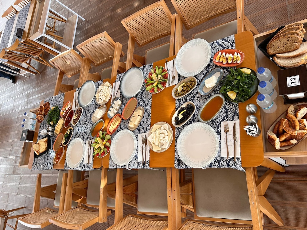 Kahvaltı otel içerisinde değil anlaşmalı bir cafe-restorantta veriliyor. O restorantta normalde kahvaltı satın aldığınızda kızartma vs çok geniş bir serpme kahvaltı verilirken, otel müşterilerine haşlanmış yumurta, domates, peynir, zeytin, reçelden oluşan, büyük şehirlerdeki simit cafe’lerde “hızlı kahvaltı”, “basit kahvaltı” gibi isimlerle satılan kahvaltılardan geliyor. Rezalet bir durum.