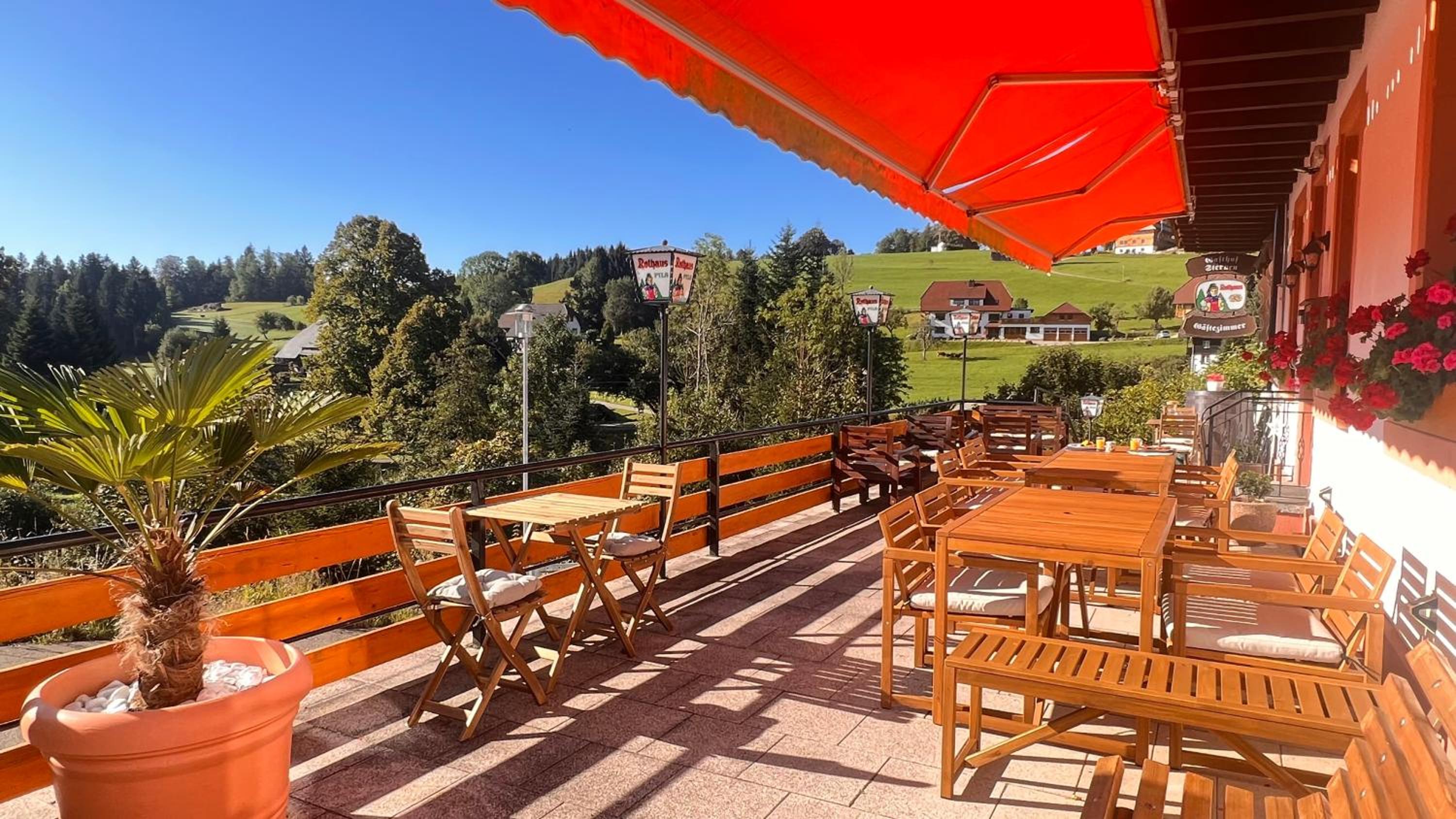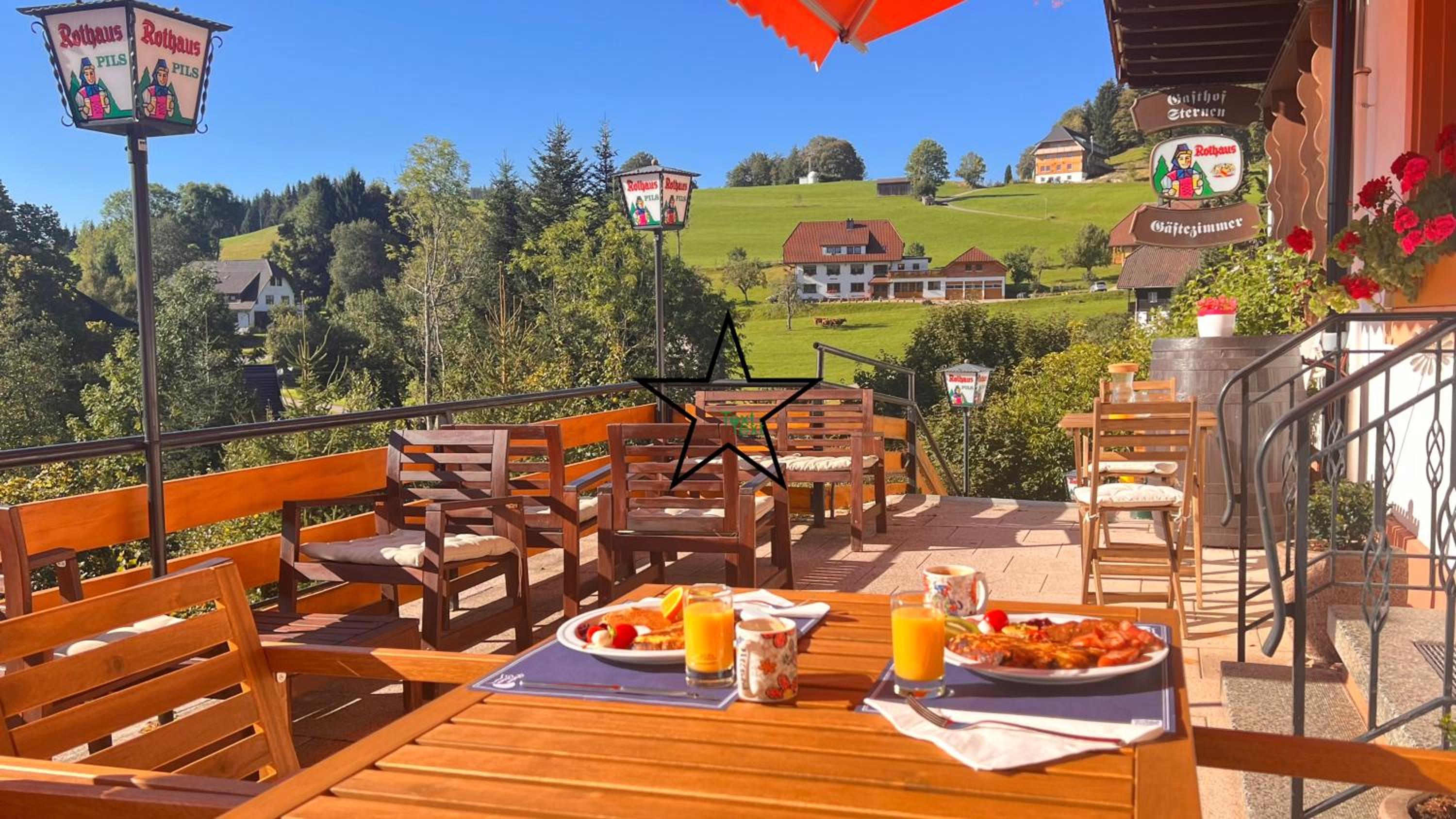 Wir fühlten uns willkommen und unsere Wünsche wurden zu unserer Zufriedenheit erfüllt. Die Aussicht auf den Schwarzwald war außerordentlich.