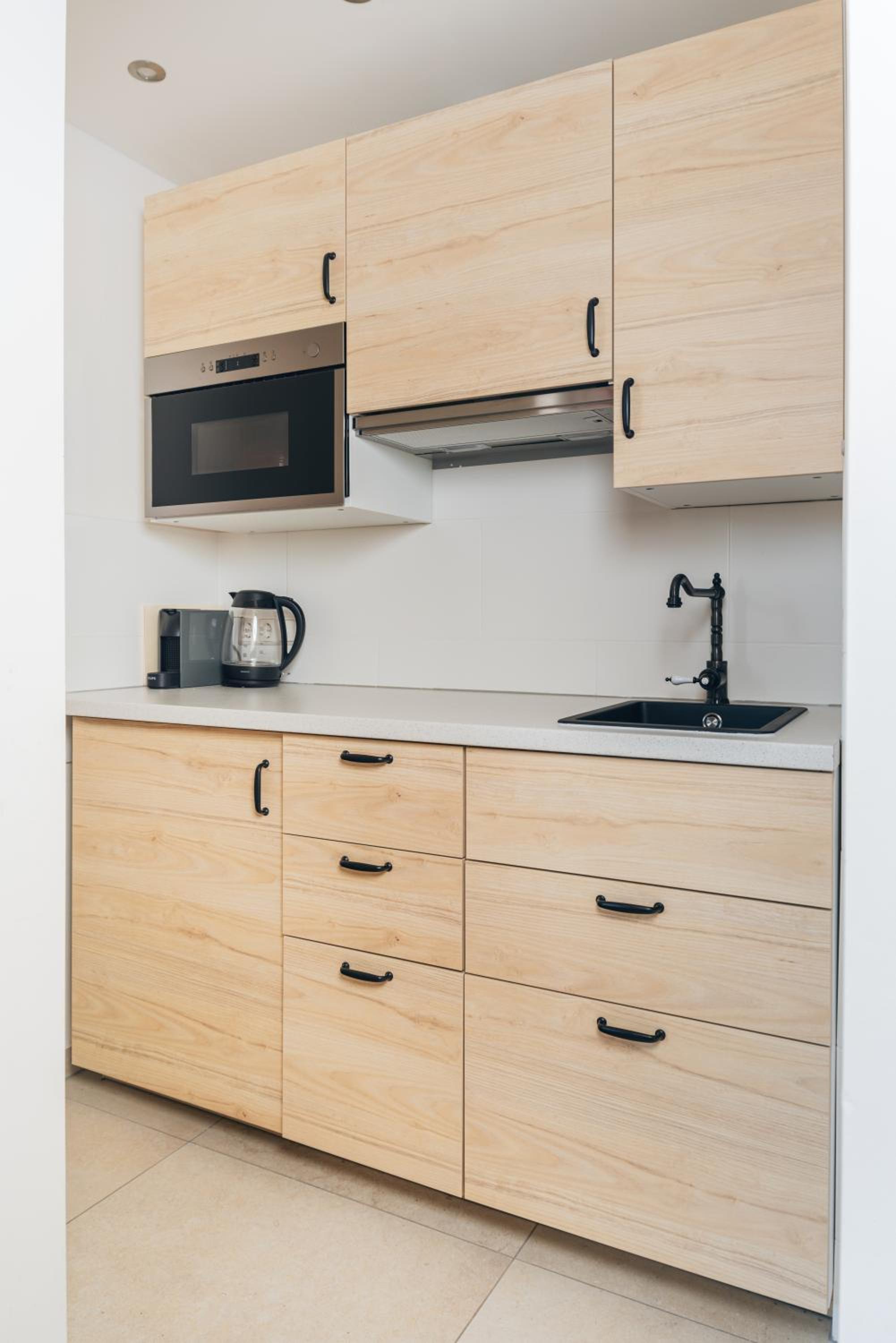 There's a small kitchen in the house for the guests to use. We used it once, was very convenient.