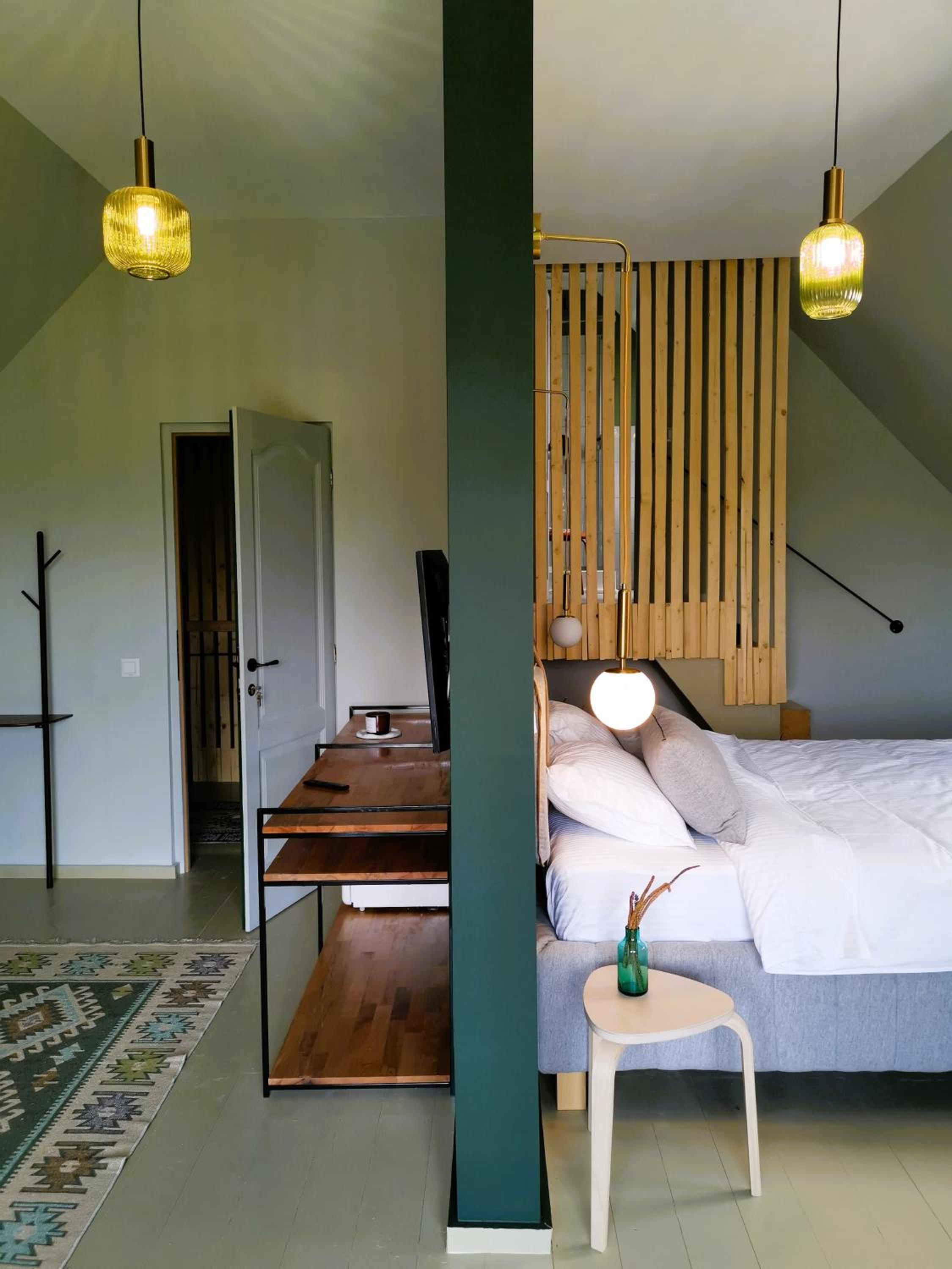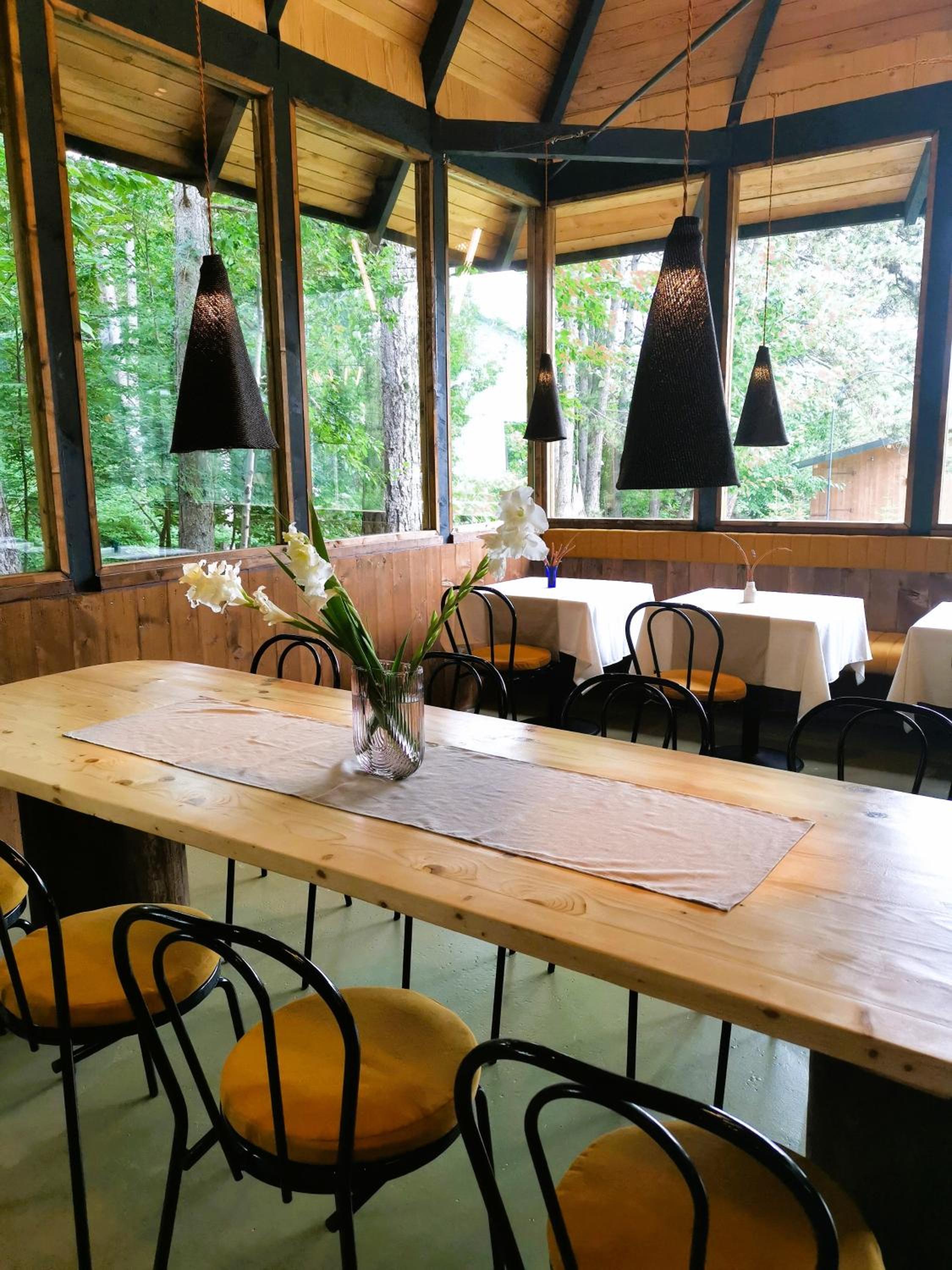 The location was serene, very quiet. The pine tree forest neighbouring the property was amazing in creating a sense of peace. The room was well furnished and very clean. The meals (breakfast and dinner) were super tasty with attention to the ingredients used which were mainly locally sourced and a very nice selection of quality drinks. The dinner bordered a fine dining experience. The hosts were very gracious, generous with attention and cared about making our stay as good as possible eg prepared the sauna, offered great advice about activities in the area, offered bikes for rent, made a bonfire at night. The lady who made breakfast was very kind and friendly. A special mention goes to Kira, the very playful puppy.