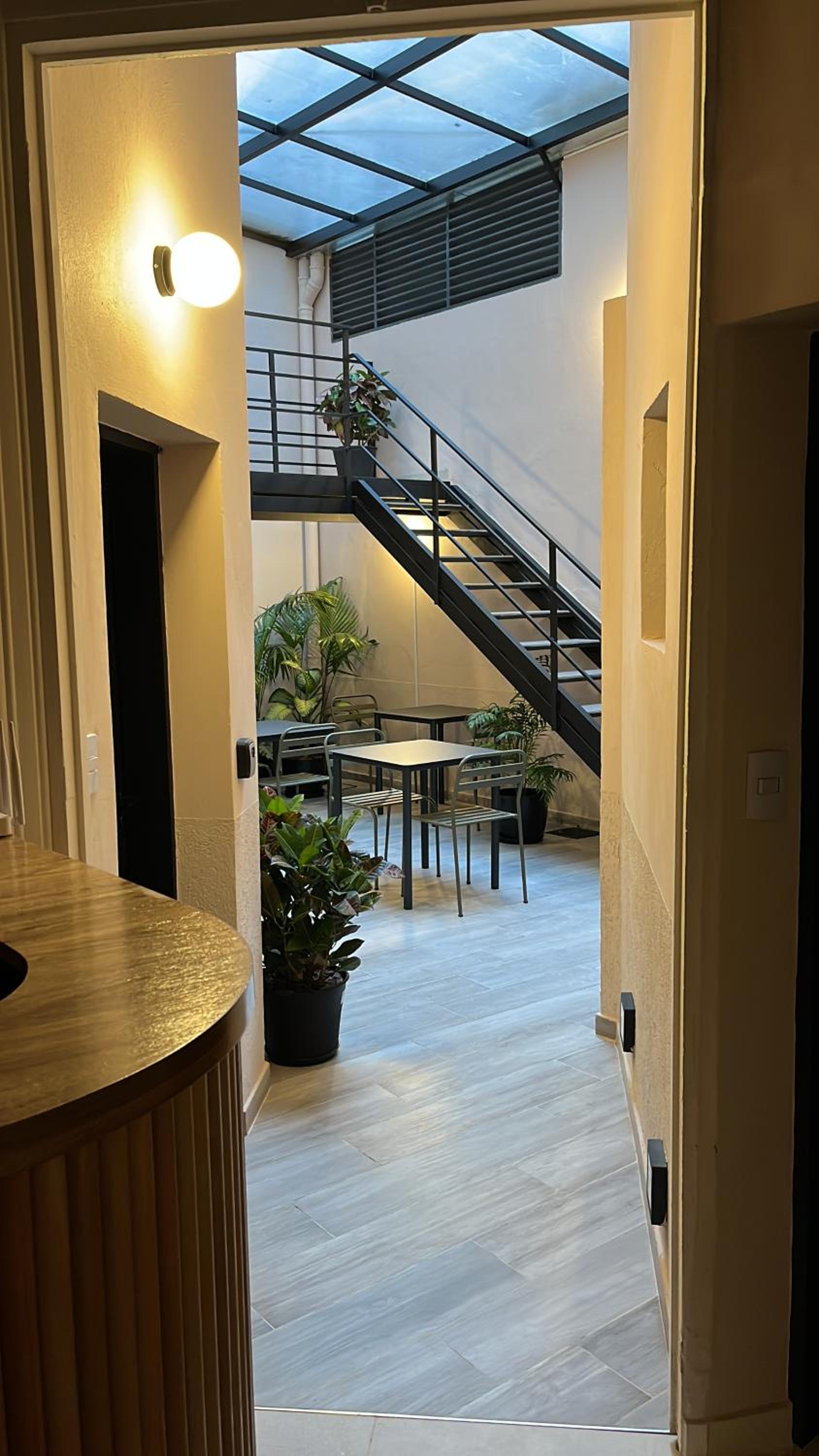 Houve um sério problema: o hotel é uma casa antiga e não há nenhuma indicação na porta. Tocávamos e ninguém atendia. Ficamos muito inseguros, liguei p o proprietário que deu as indicações dos códigos. Não há recepção, mas o prior é não termos nenhuma indicação. Dentro vimos que era uma espécie de Air B&B com quartos bem equipados. Mas foi um susto.