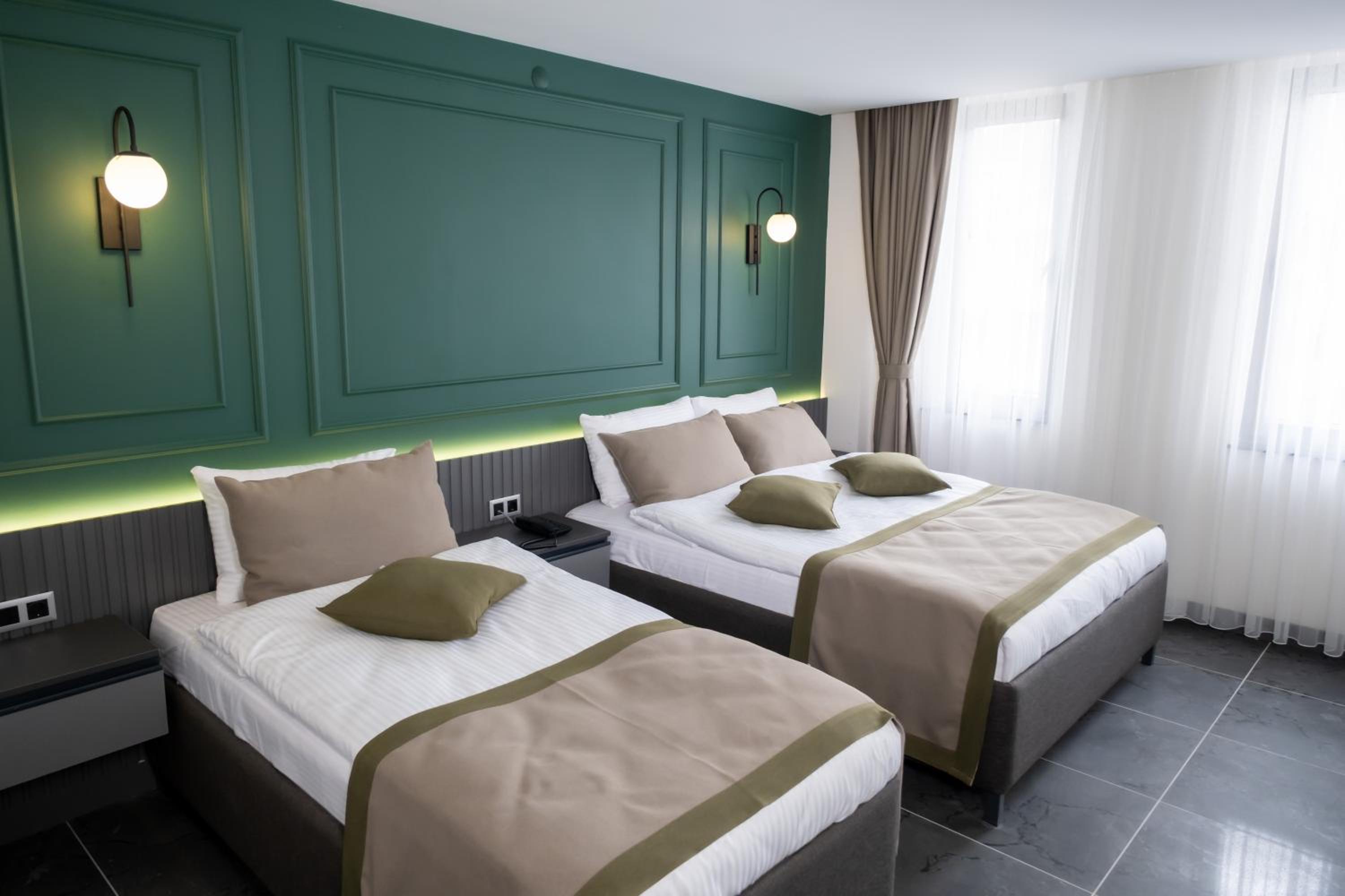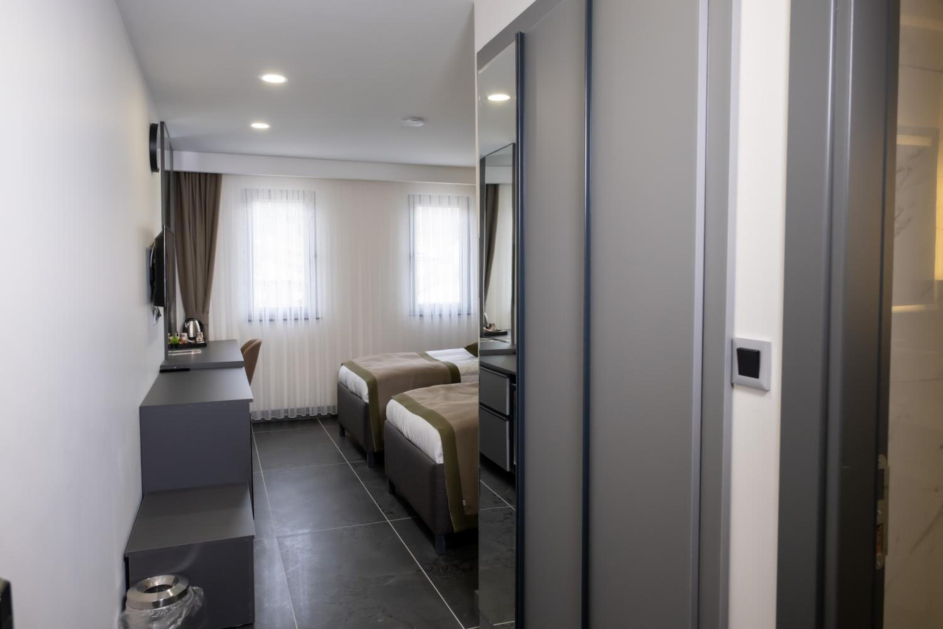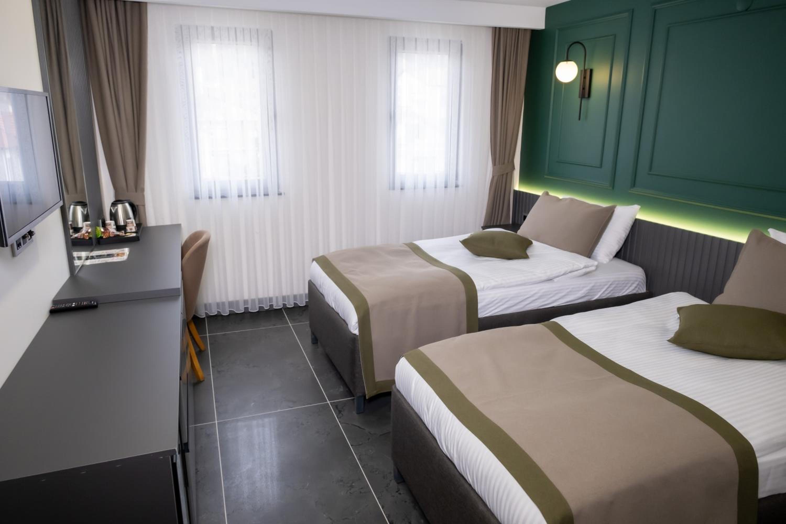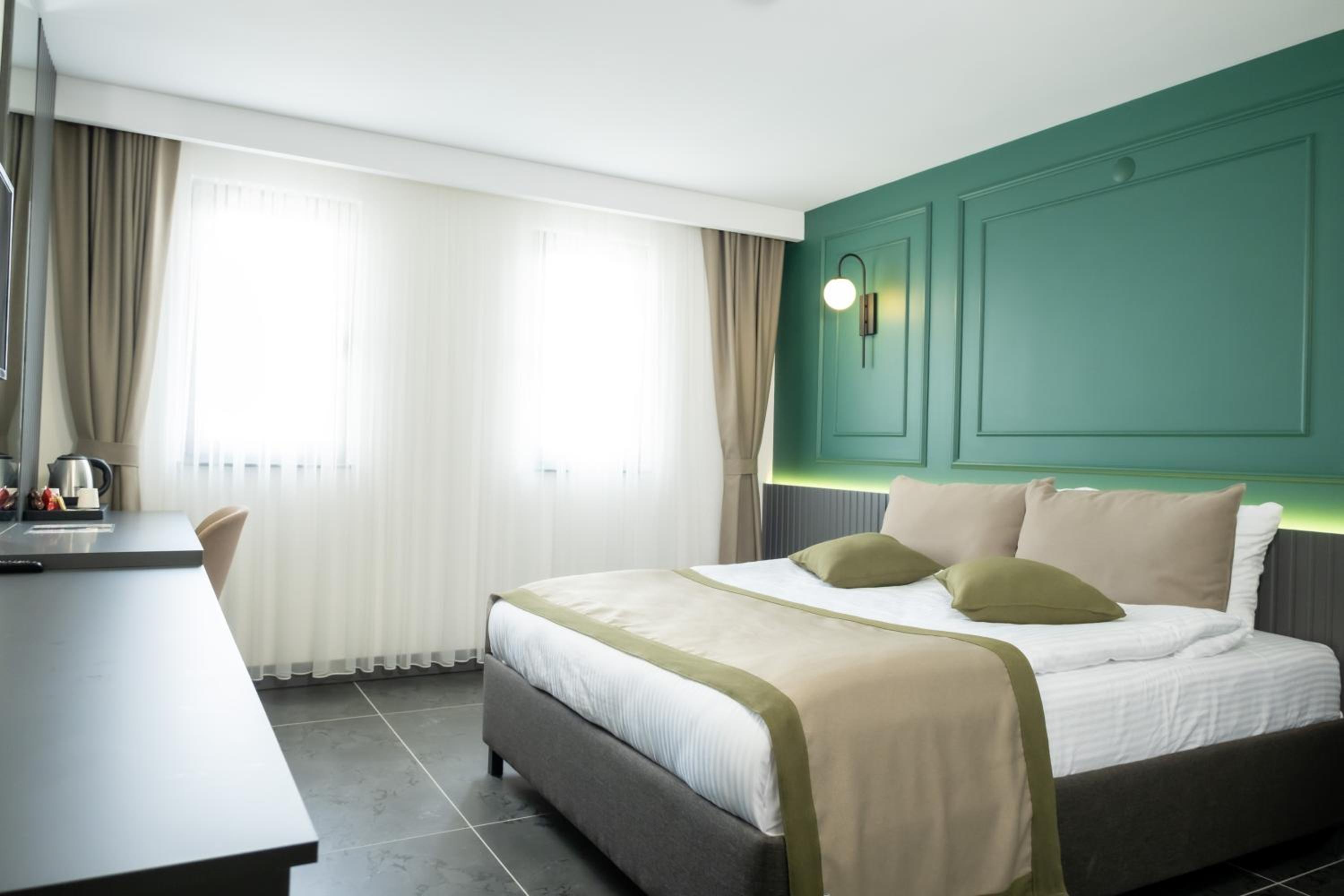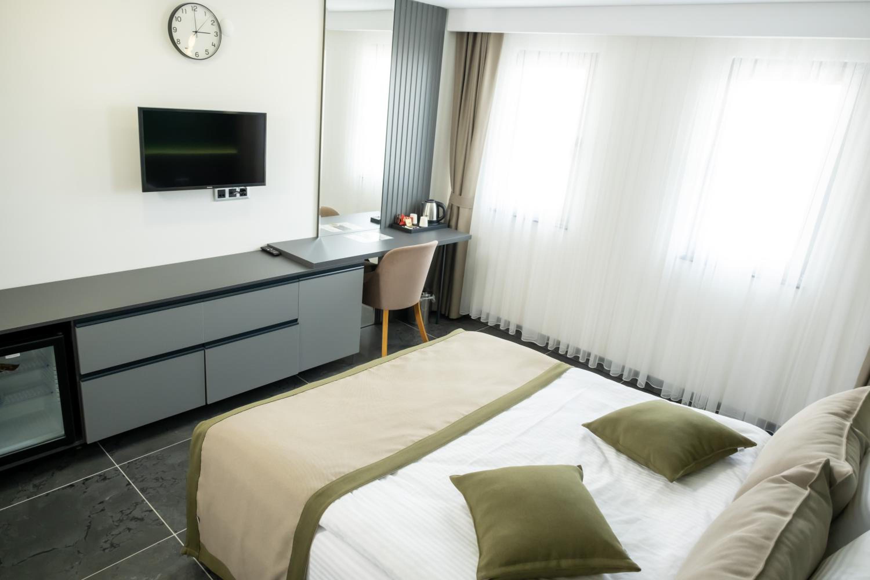 Experience comfort in the spacious rooms equipped with a flat-screen TV, soundproofing, and a walk-in shower. Bed linen, towels, and housekeeping service are provided for a relaxing stay.
