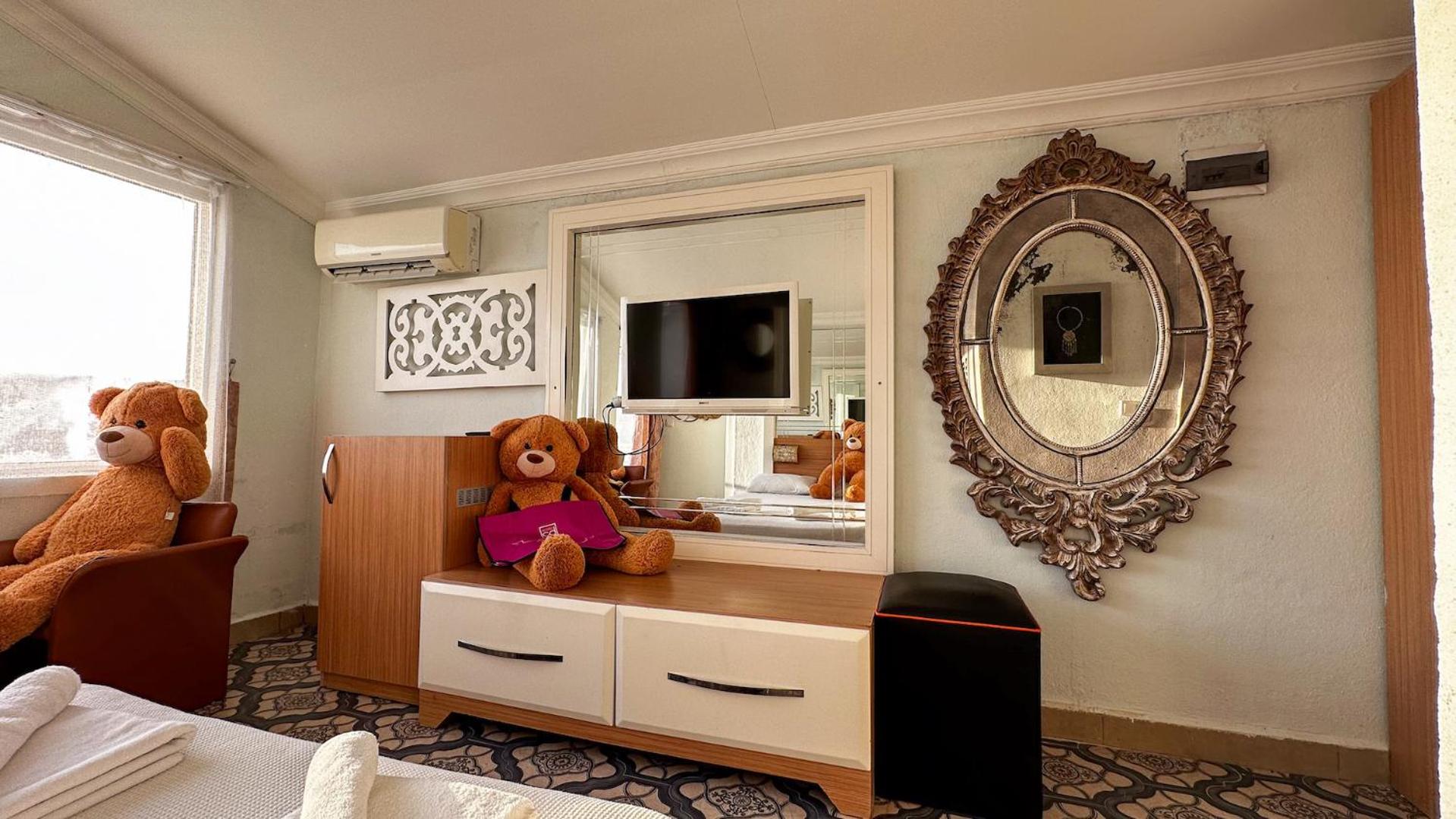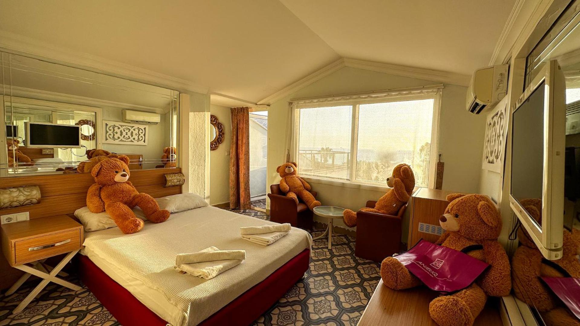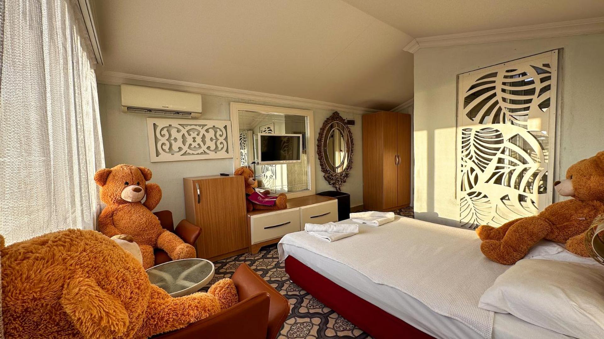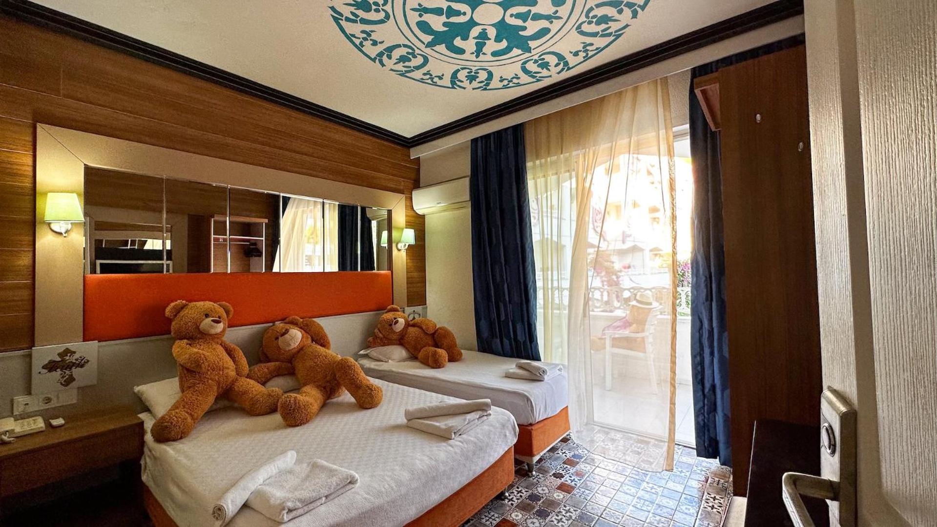 это самый ужасный отель, который я видела в своей жизни. не стоит туда ехать, не портите себе отпуск. отвратительная еда, антисанитария, очень маленький пляж, не рассчитанный на количество людей в отеле, супер-переполненный бассейн, воняющий хлоркой. персонал на ресепшене старается, но ничего не происходит, нам три дня не могли принести полотенца в номер, хотя мы напоминали по два раза в день. периодически нет воды, не работает электричество, что-то капает, номера ужасные, уборки нет как таковой. мы просили подмести песок в номере, оставили чаевые и записку на турецком, в номере подмели, но в ванной и на балконе вообще ничего не сделали. вокруг ничего, только другие отели, ты вынужден проводить время только в отеле, мы все отравились (компания из 6 человек), попробовали переехать в другой отель или Airbnb, но день в день это невозможно. брали такси в Аланию и проводили весь день там на платных пляжах, чтобы хоть немного спасти свой отдых. не совершайте наших ошибок, бронируйте сразу другое место. это не экономия, так как в итоге все равно придется потратить деньги на пляжи, еду, такси.