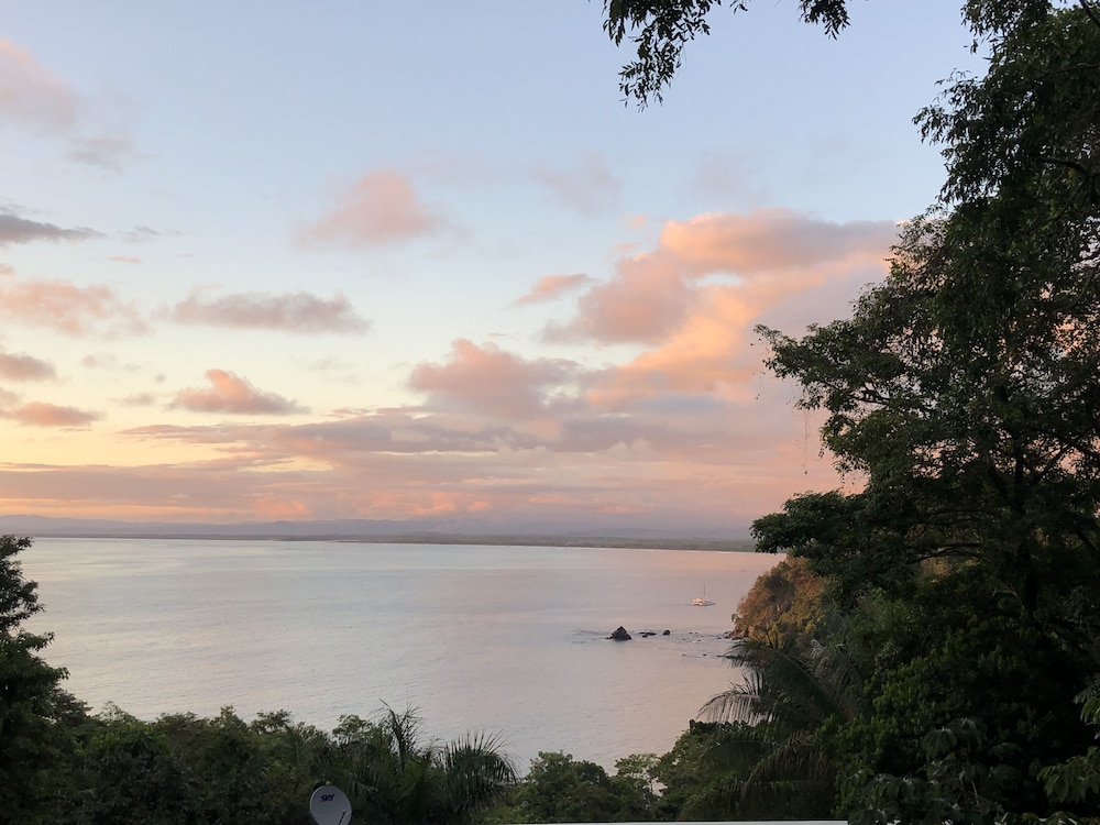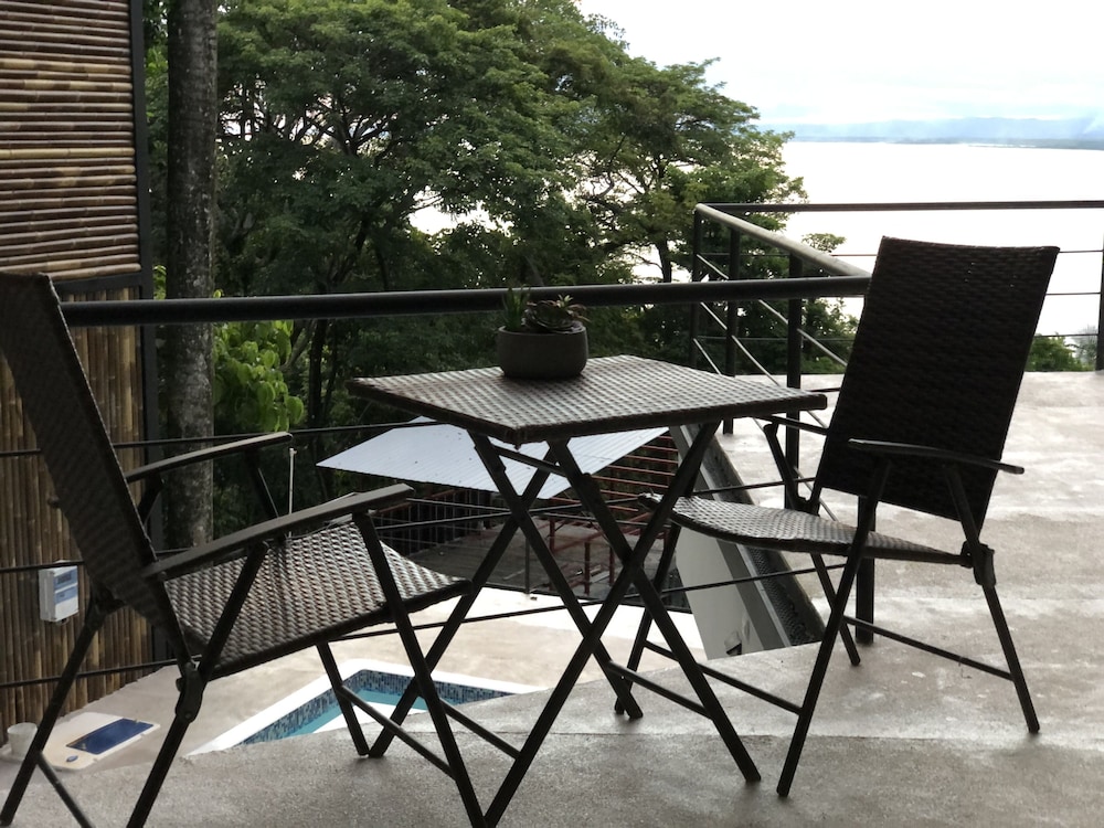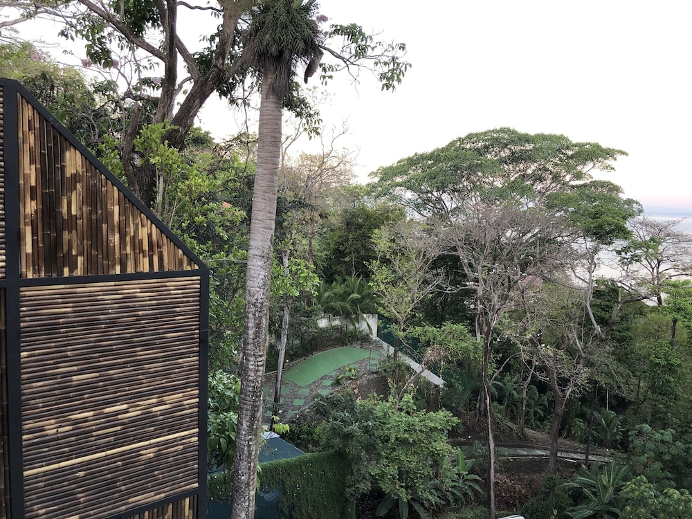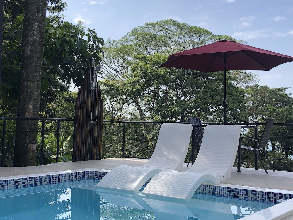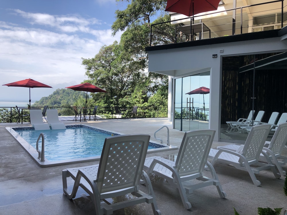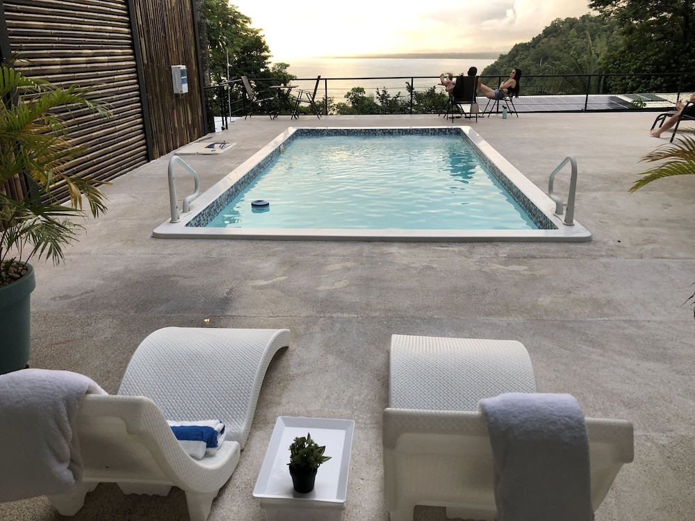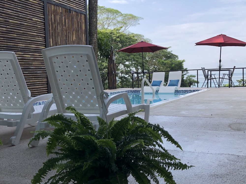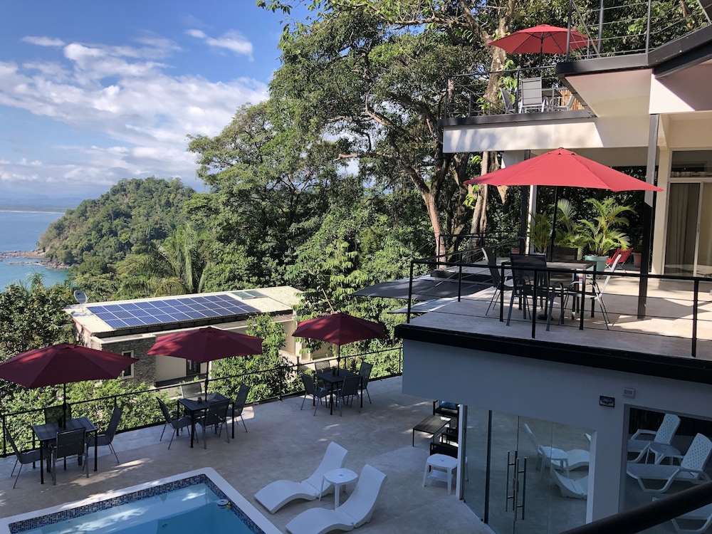Great boutique hotel in Manuel Antonio area, used by our family of 5 with three teenagers (They had one suite, we had another one) Only 9 suites, all with likely great views. The suites open up into the patio where meals are served - quirky but really nice! Just loved the feel of this place as opposed to a large fancier place. Staff always was helpful when needing a cup of coffee, ice, towels or anything else. Would highly recommend for a family with older kids or for couples. Nice smaller pool to use to cool off from the heat, with great view of "jungle" and ocean. And can walk (down/up a relatively steep road) to Las Playitas beach, which had great waves, beautiful beach, options to take surf lesson or just rent chairs. Also, nice having AC in each bedroom - there was not AC in the den where the pullout couch was, so we squeezed it into the bedroom so our teenage son had AC for sleeping. When doing so, we scratched up the wall pretty good - VOS noticed this at checkout but didn't charge us for that incident, which was very nice of them. P.S. Have the owner take you up to the Penthouse to check it out (or better yet book it if on a honeymoon!) - it's amazing! Pura Vida!