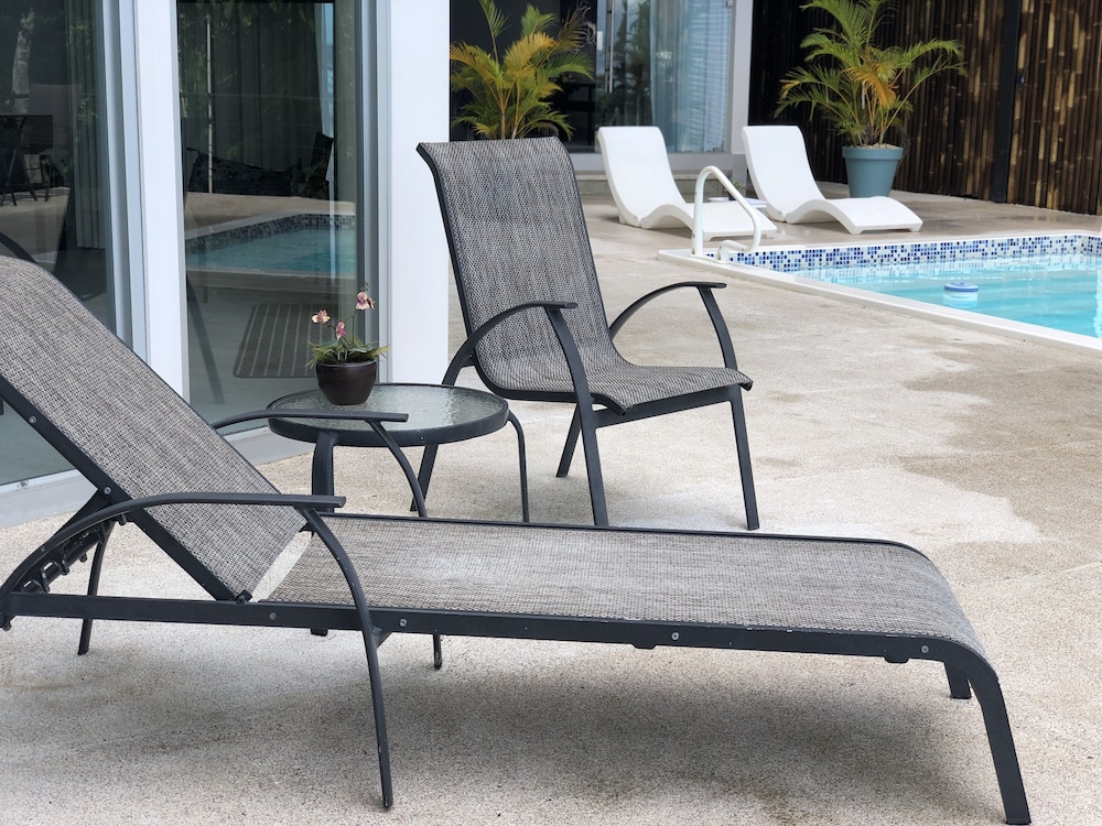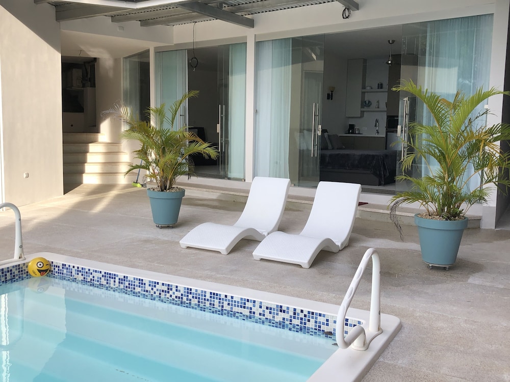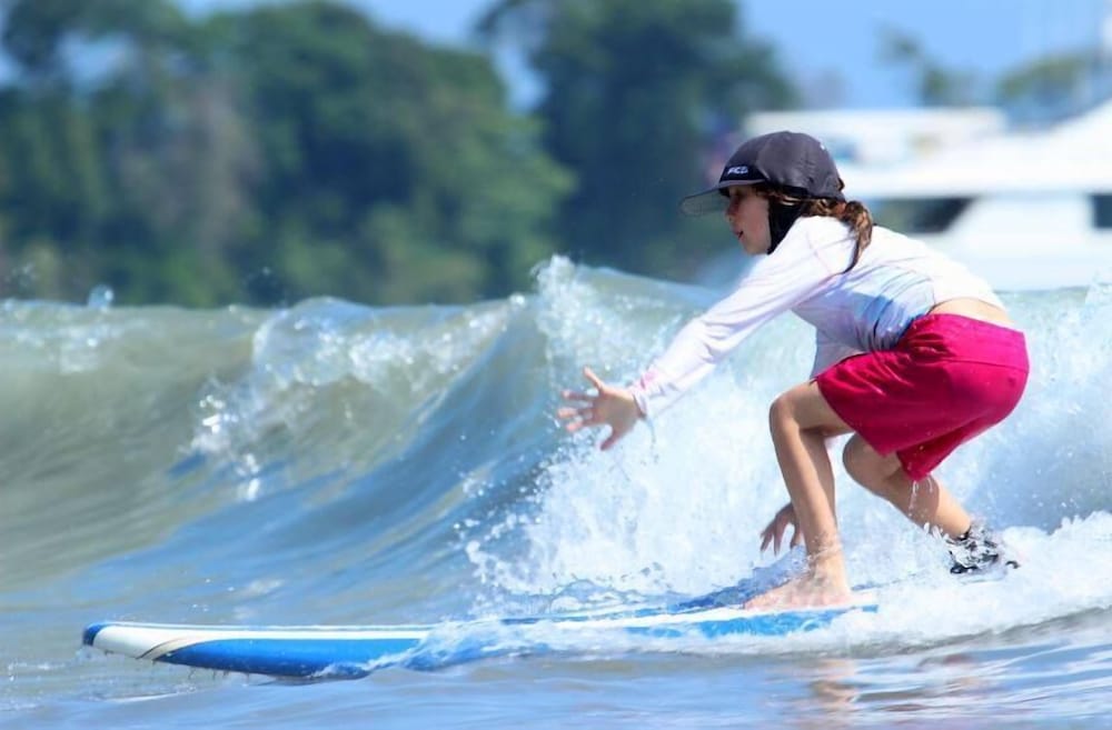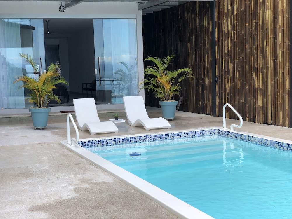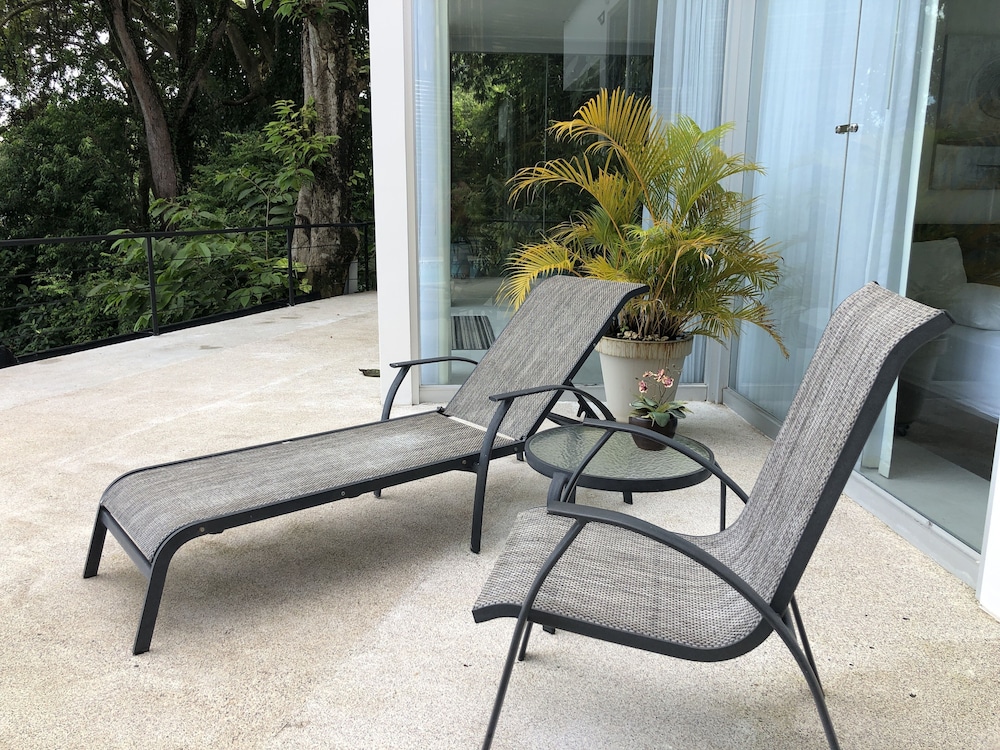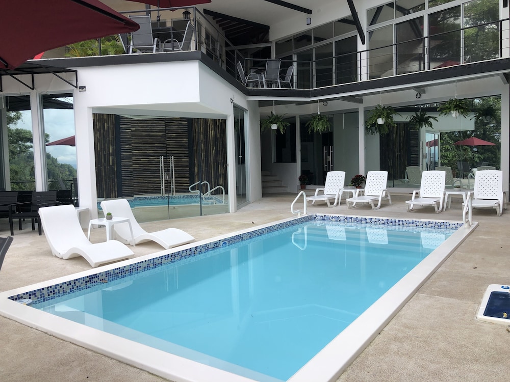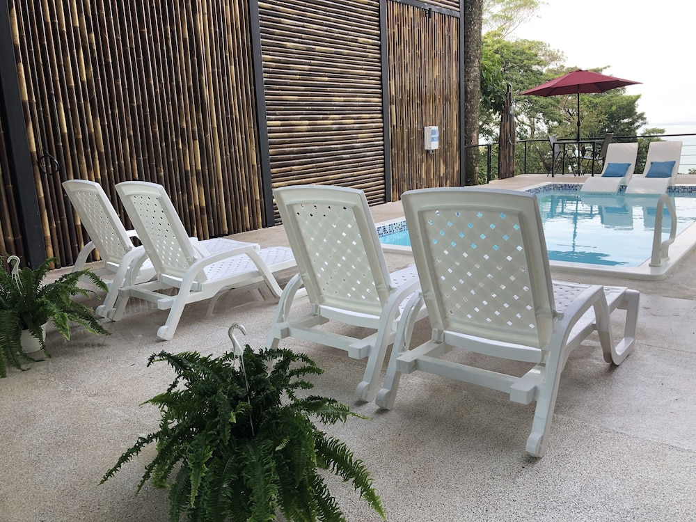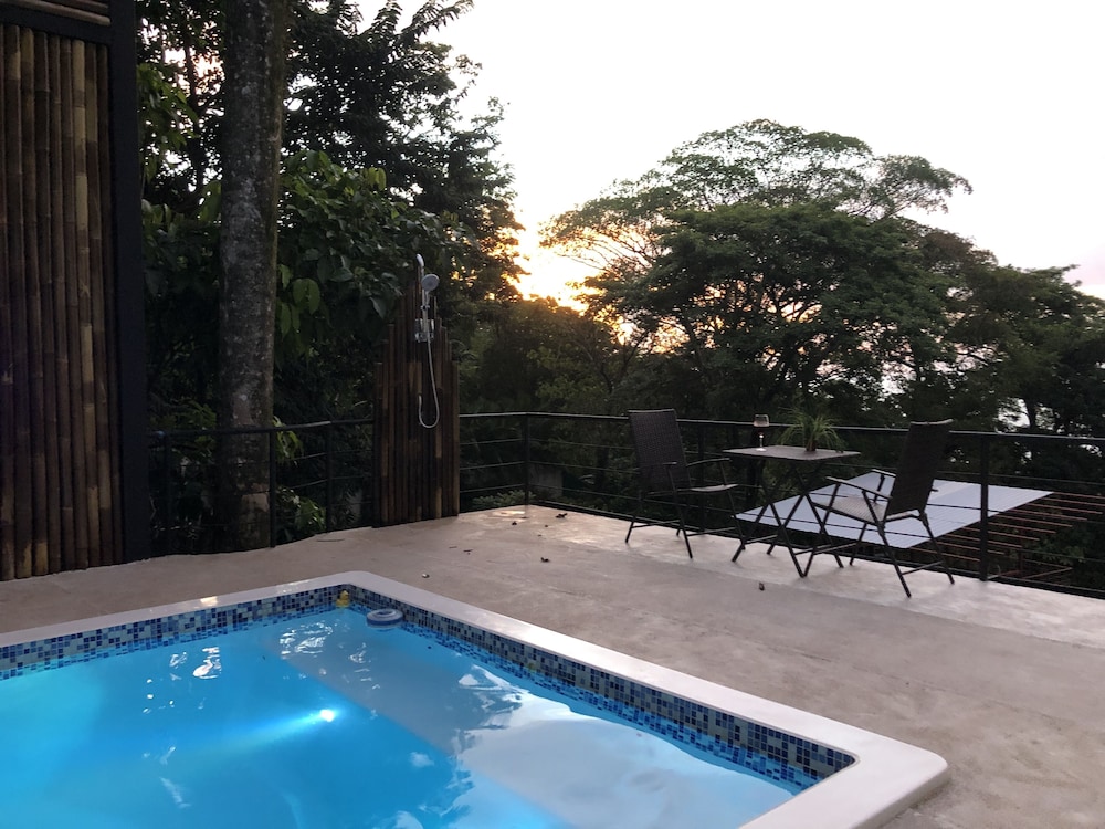 Great boutique hotel in Manuel Antonio area, used by our family of 5 with three teenagers (They had one suite, we had another one) Only 9 suites, all with likely great views. The suites open up into the patio where meals are served - quirky but really nice! Just loved the feel of this place as opposed to a large fancier place. Staff always was helpful when needing a cup of coffee, ice, towels or anything else. Would highly recommend for a family with older kids or for couples. Nice smaller pool to use to cool off from the heat, with great view of "jungle" and ocean. And can walk (down/up a relatively steep road) to Las Playitas beach, which had great waves, beautiful beach, options to take surf lesson or just rent chairs. Also, nice having AC in each bedroom - there was not AC in the den where the pullout couch was, so we squeezed it into the bedroom so our teenage son had AC for sleeping. When doing so, we scratched up the wall pretty good - VOS noticed this at checkout but didn't charge us for that incident, which was very nice of them. P.S. Have the owner take you up to the Penthouse to check it out (or better yet book it if on a honeymoon!) - it's amazing! Pura Vida!