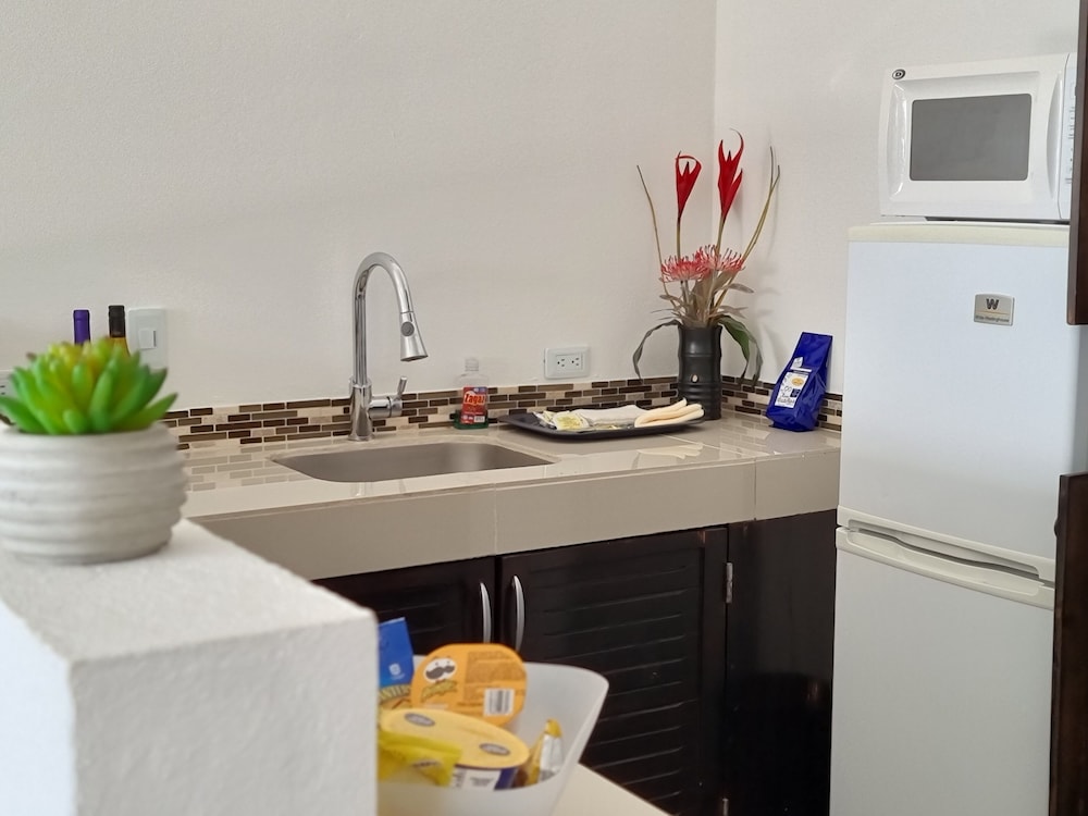 Vista Suites has a great location and the best staff!! The owners are so friendly and live on site. The location is convenient and you can walk down the hill to a beach or up the hill to eat. The room is comfortable and modern. We saw 3 toucans from the patio and 1 monkey but there are so many monkeys in the area! One of the owners suggestions was to do use the facilities at Arenas Del Mar Beach resort and we did. We had a reservation so they were waiting to pick us up at the parking and take us to the beach. The food and drinks were some of the best we had and there was a sloth in the tree above the table!!