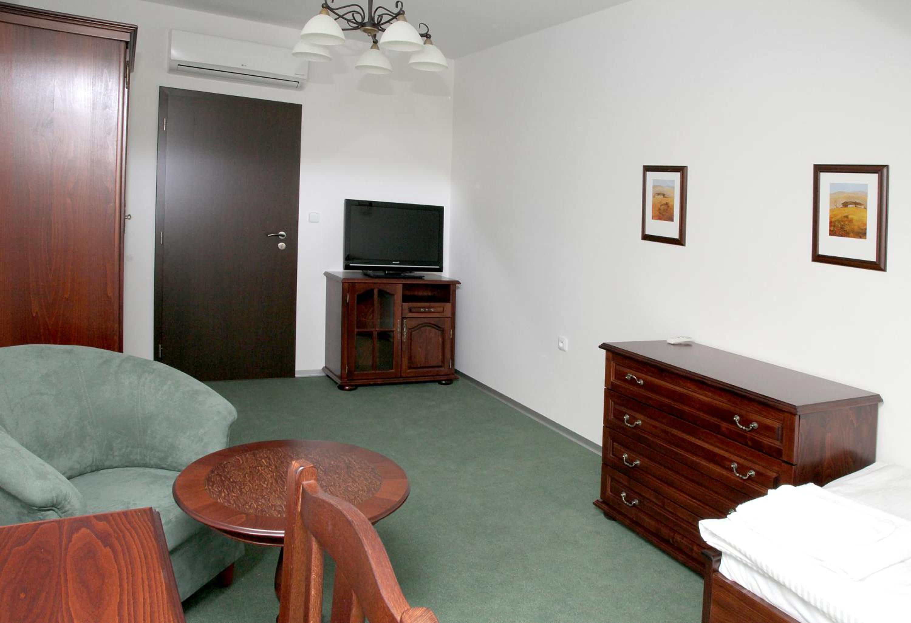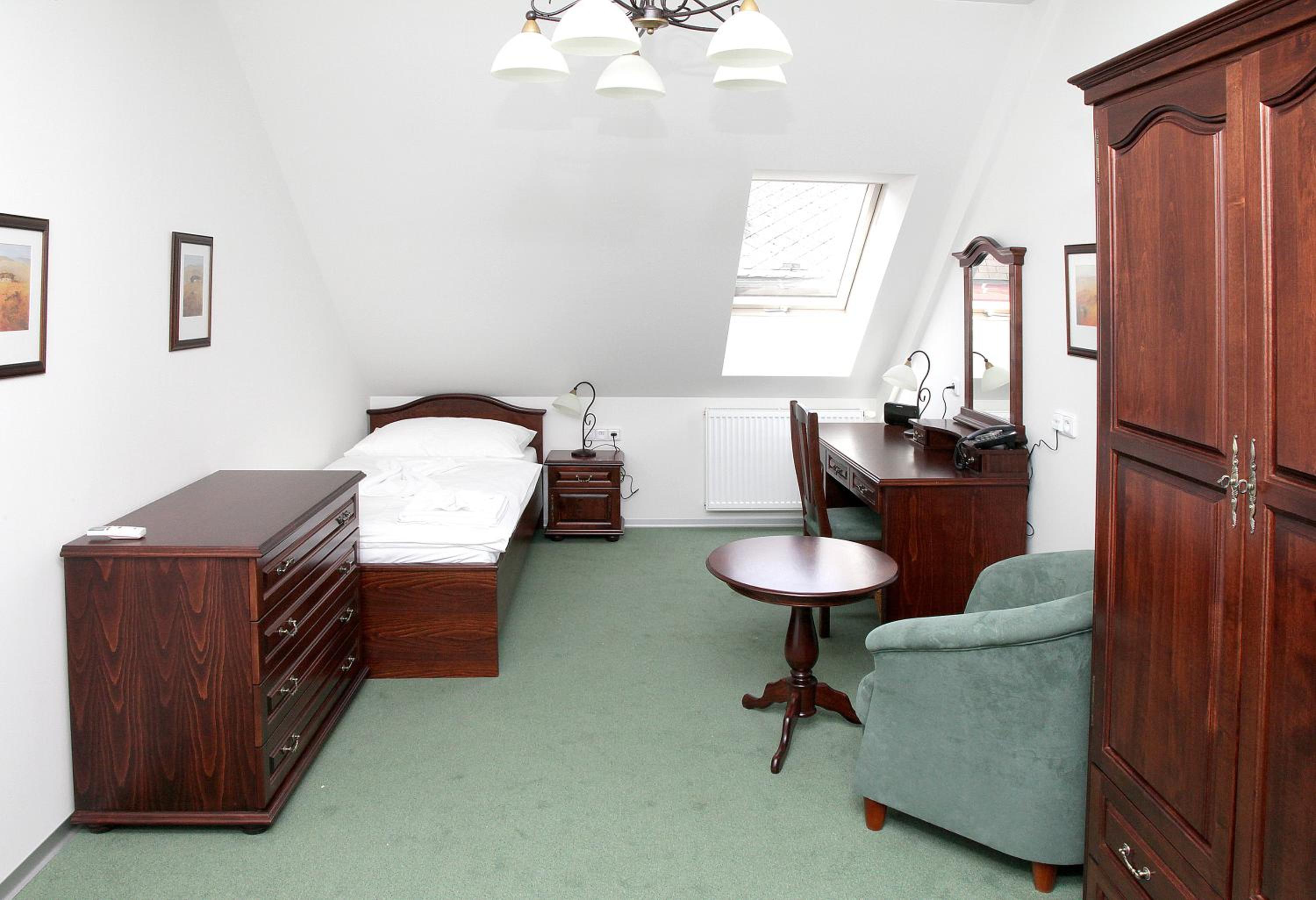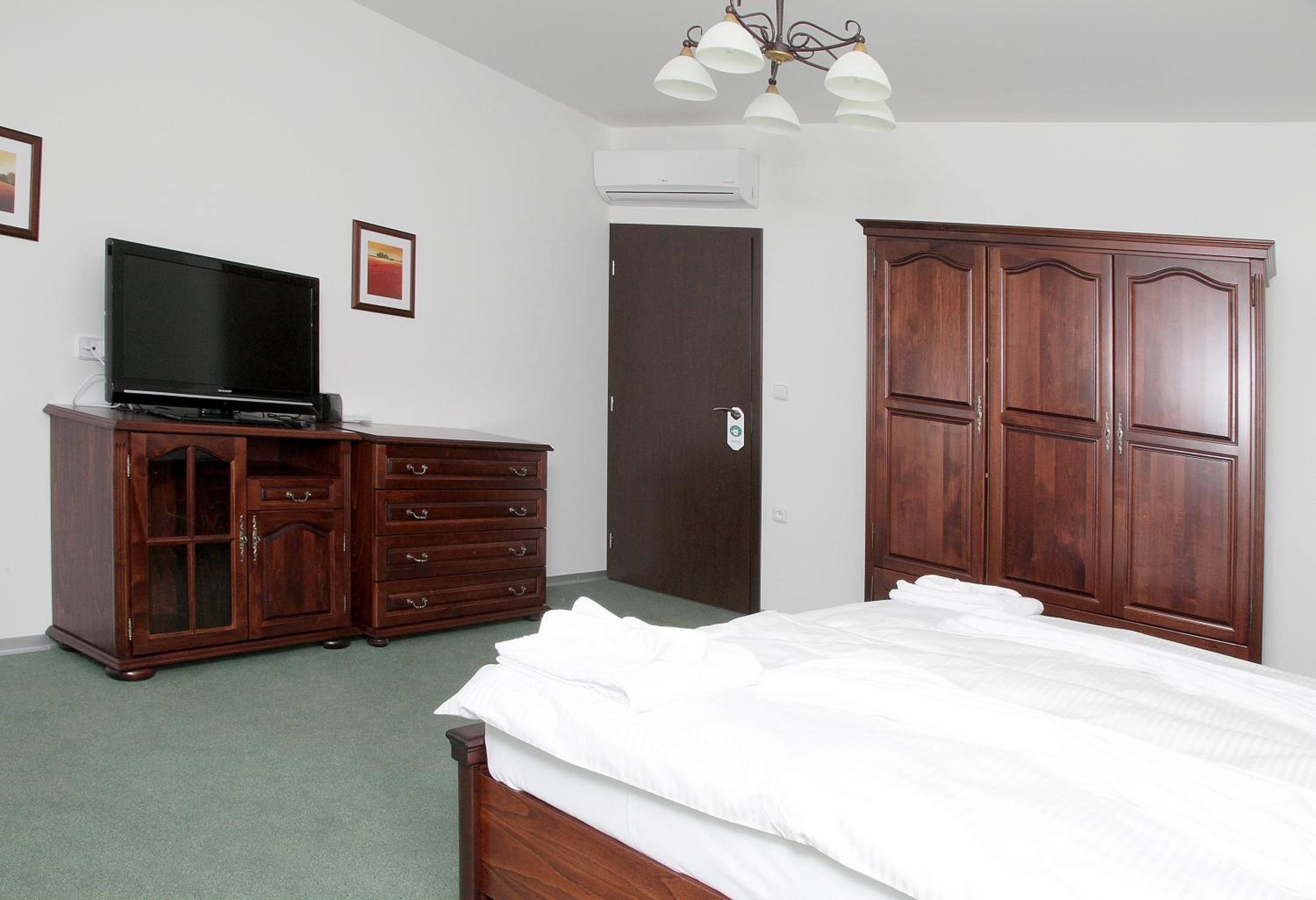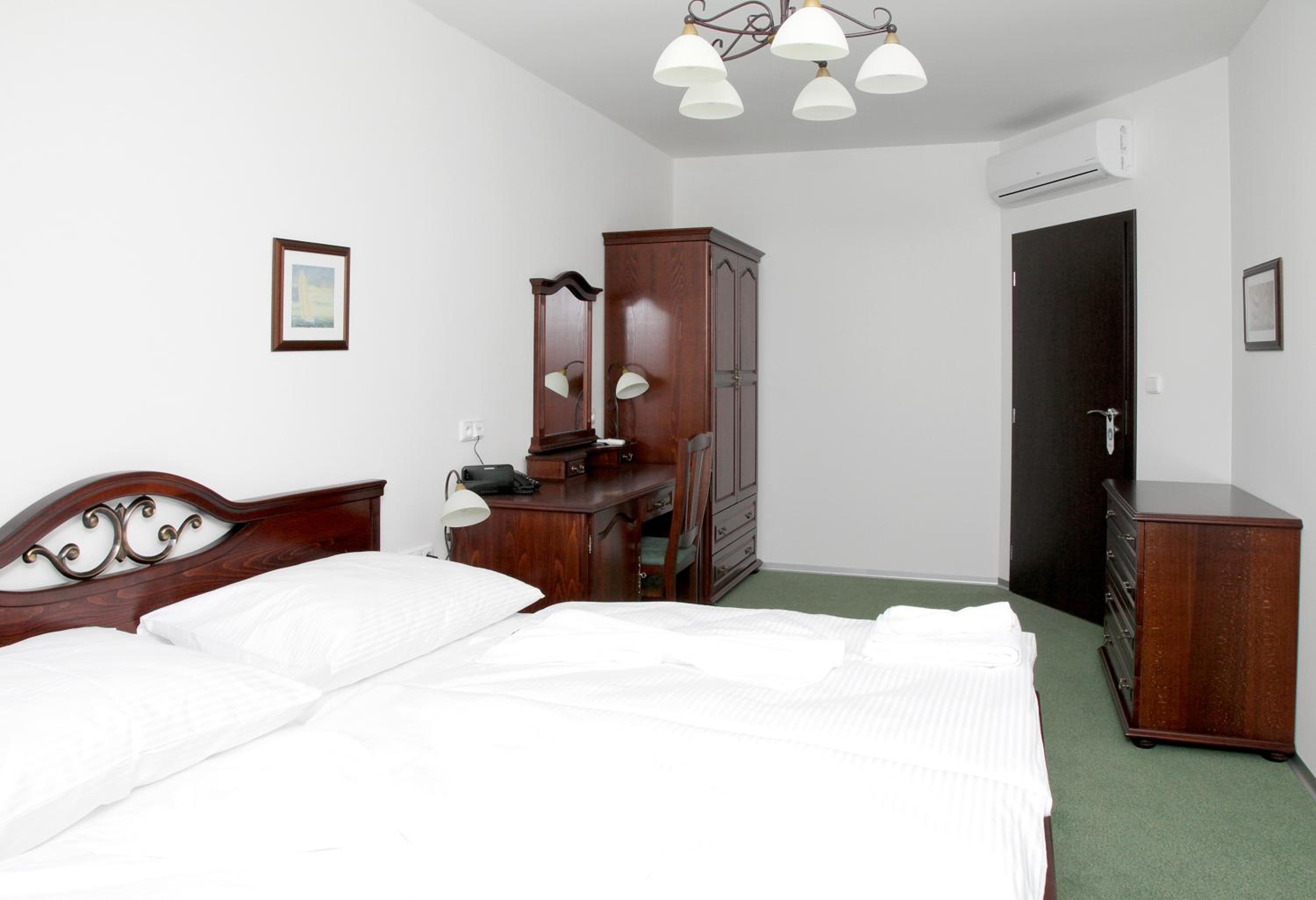 Vybavení pokoje včetně koupelny.